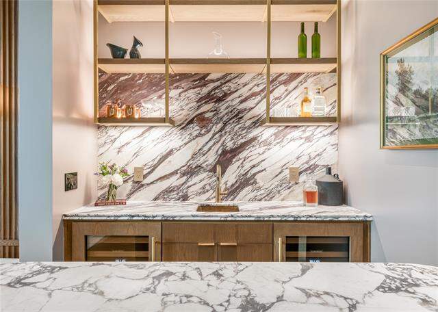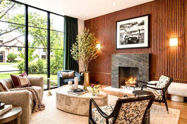 Introducing an exceptional new construction in University Park by Shaw Building Group, with interiors curated by Swoon Interiors. Crisp architectural lines soften into warmth through natural materials, yielding a residence that feels simultaneously elevated and effortlessly livable. A welcoming entry establishes the tone immediately with soft, segmented arched openings framed in white oak millwork flow into a series of beautifully connected living spaces. Chevron wood floors inlaid with brass trim greet you underfoot, while a refined palette of natural marble and oak carries with quiet consistency throughout. At the heart of the home, the kitchen is designed for both daily life and gracious entertaining. White oak custom cabinetry and marble countertops are appointed with a complete suite of Wolf and Sub-Zero appliances. A hidden scullery with a fully equipped and thoughtfully concealed, allows hosting to unfold seamlessly while preserving the home's clean, tailored aesthetic. The space opens effortlessly toward the main living and dining areas, where sliding doors dissolve the boundary between interior and an expansive limestone loggia beyond. The parlor invites a more intimate atmosphere, anchored by a stunning scalloped walnut millwork wall that connects directly to the bar, a striking vignette within the home's open yet intentional layout. Outdoors, the vision continues with a pool, turf yard, outdoor kitchen, and a covered gathering area complete with temperature control and double retractable screens, purpose-built for low-maintenance, year-round enjoyment. 3517 Villanova represents a rare opportunity to own a home where every considered detail integrates without effort, resulting in something that feels both deliberate and timeless. Situated within Highland Park ISD, moments from Hyer Elementary and steps to Coffee Park, this one simply cannot be missed.
