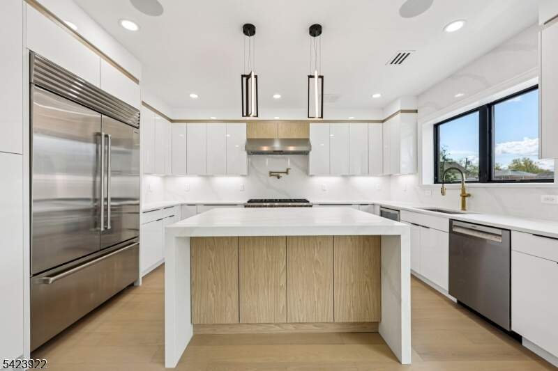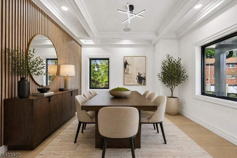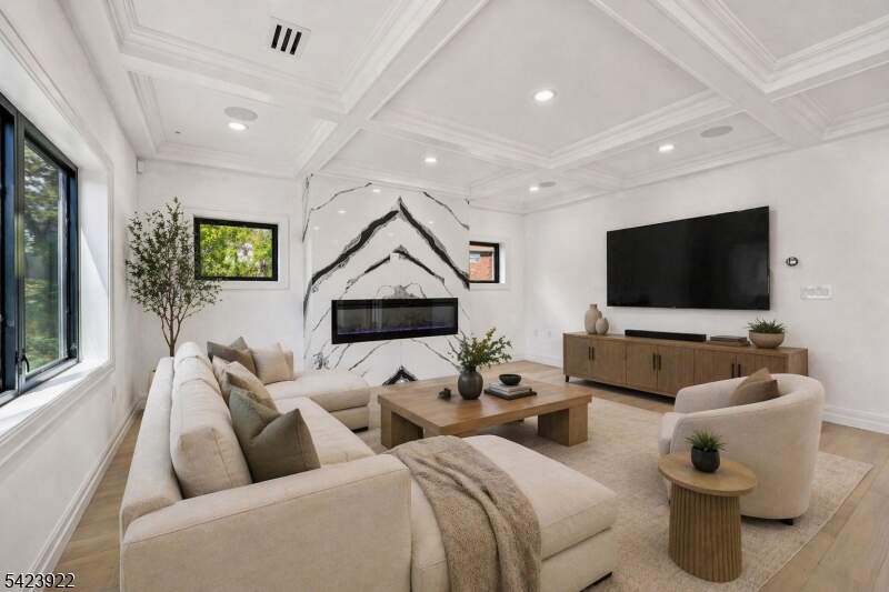 The luxury is in the details at 51 Albany Avenue, Nutley's hidden gem, set on quiet dead-end street. Enter through an impressive 360 statement door that opens to elegant staircase with integrated lighting. Stunning chef's kitchen features premium appliance package- Sub-Zero, Wolf, Bosch, an XO hood, wine cooler, pot filler, Kohler fixtures, under-cabinet lighting, sliding glass doors leading to a spacious deck and professionally manicured backyard, offers lot's of natural light. This rare luxury new construction offers custom living space highlighted by 6-inch hardwood floors, coffered ceilings, designer wood paneling throughout. Each bedroom features custom closets with designer shelf lighting. The spa-like primary suite with steam shower, soaking tub, double vanity, smart toilet, smart mirror, and towel warmer. All three bathrooms feature smart mirrors, double sinks, and Kohler fixtures. Additional amenities include Sonos speaker readiness, Ring security, Google Nest, central vacuum, USB outlets, multi-zone heating and cooling, two-car garage with 17-foot ceilings, EV capability, car-stacker readiness, metal roof with snow guards. This brook side home is FEMA-compliant with poured concrete foundation, flood vents. A rare opportunity offering exceptional design, modern functionality, and luxury living convenient to major highways, shopping, restaurants, and Montclair nightlife.