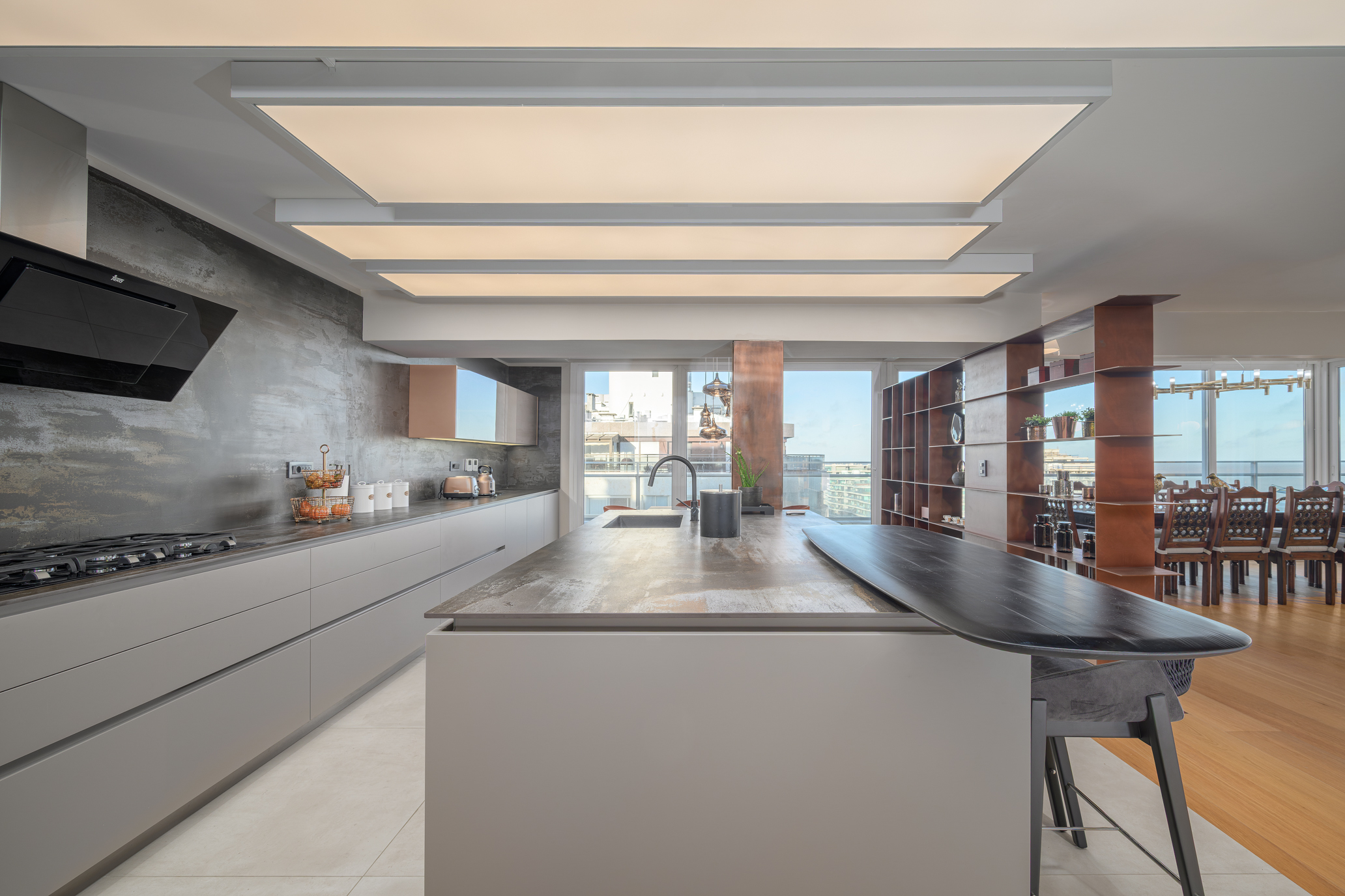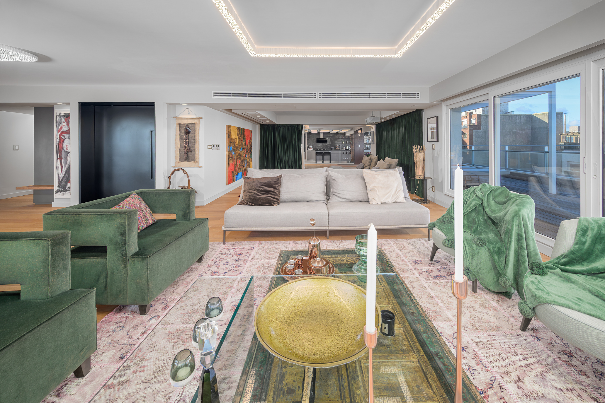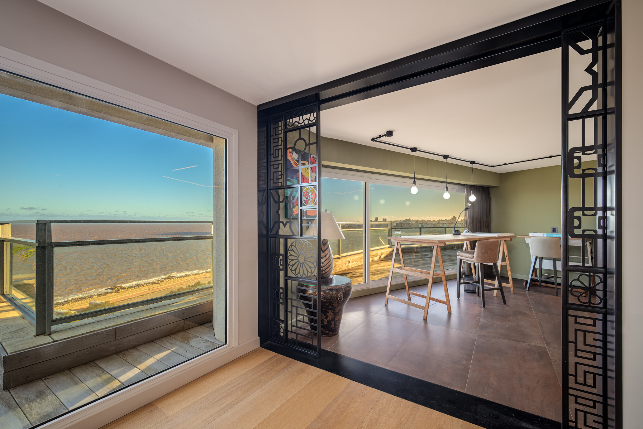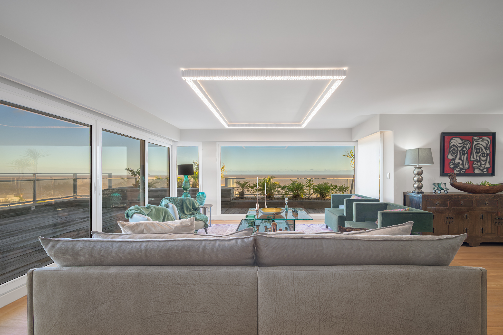 Offering 322 sqm of interior space and 135 sqm of terraces, the property stands out for its generous scale, contemporary design, and uninterrupted views over Pocitos Bay.