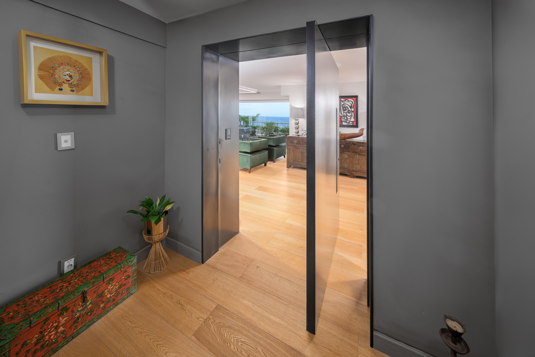 For added functionality and security, the apartment features a separate service entrance, video intercom system, and fire alarm system.