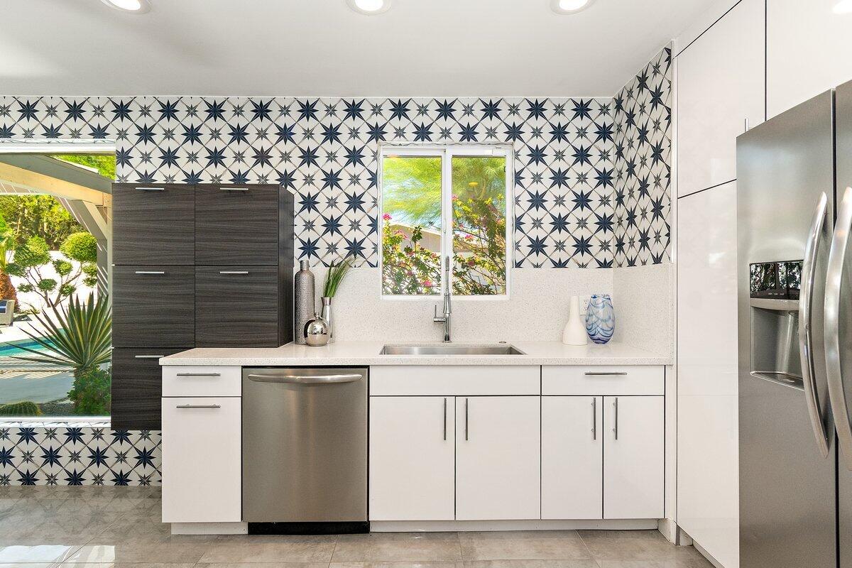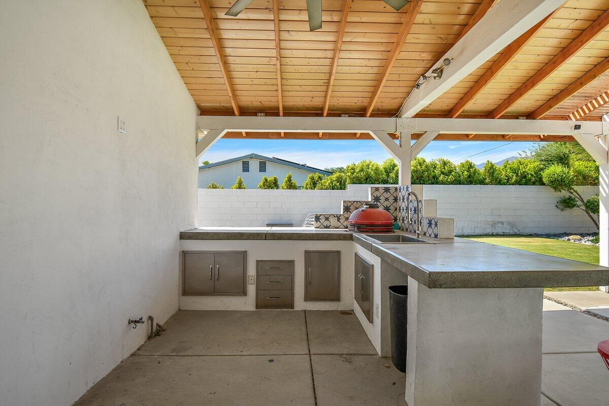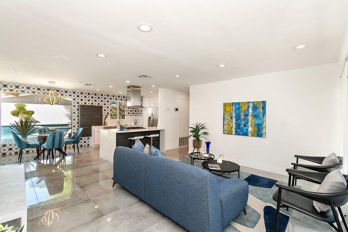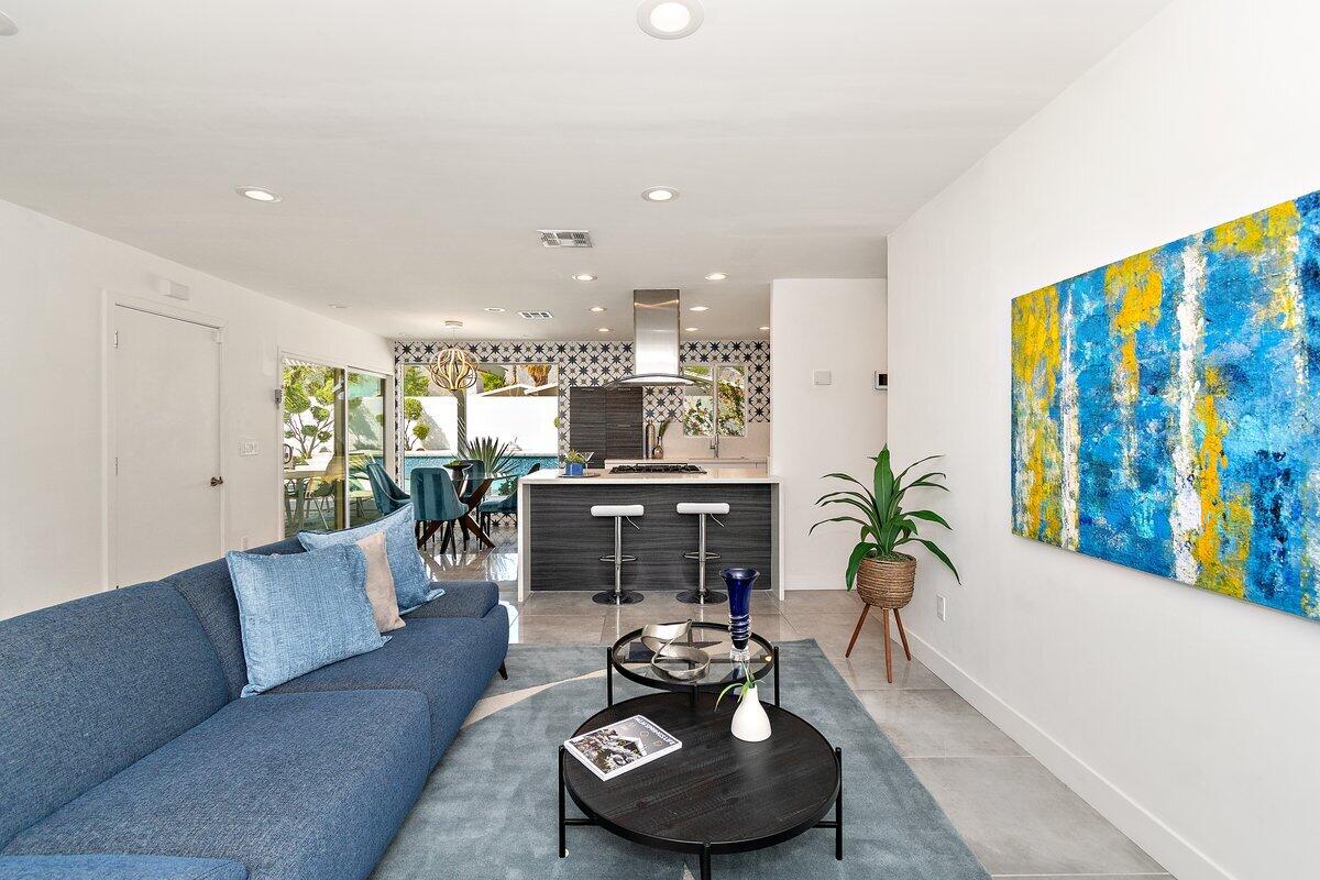 Need a soft landing before you buy or the perfect work-from-home space? This beautifully remodeled 3-bedroom, 2-bath home in Palm Springs is available for a 12-month lease and offers comfort, privacy, and incredible mountain views. Enjoy a spacious, private backyard with a covered patio, built-in BBQ, and a Pebble Tec saltwater pool and spa perfect for relaxing or entertaining. Inside, the home features a bright, open feel with large windows, a modern kitchen with stainless steel appliances and quartz countertops, and clean, updated finishes throughout. Additional perks include a finished 2-car garage, RV parking, solar for energy efficiency, and included refrigerator, washer, and dryer. Pet-friendly with approval. Move-in ready come experience the Palm Springs lifestyle! Home has solar. Great utility savings. Bathroom in garage to service pool.
