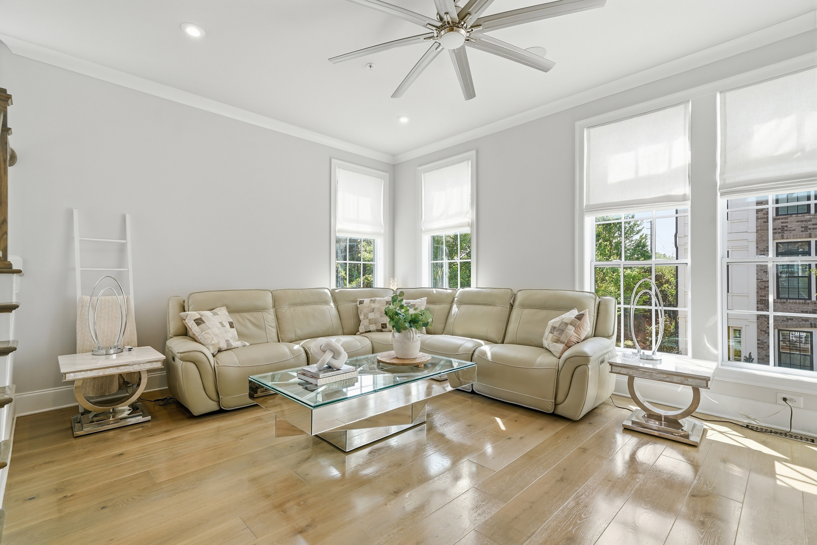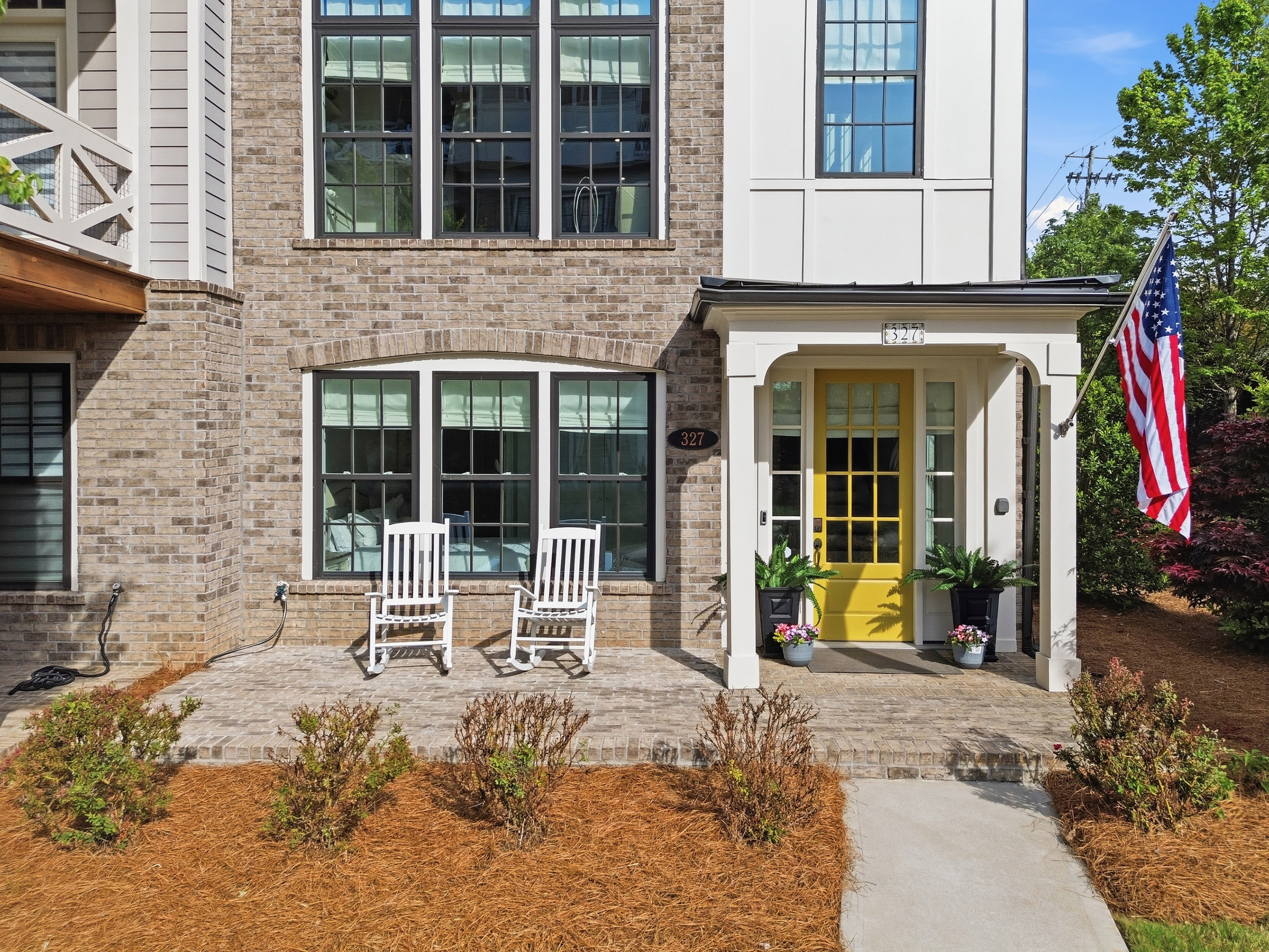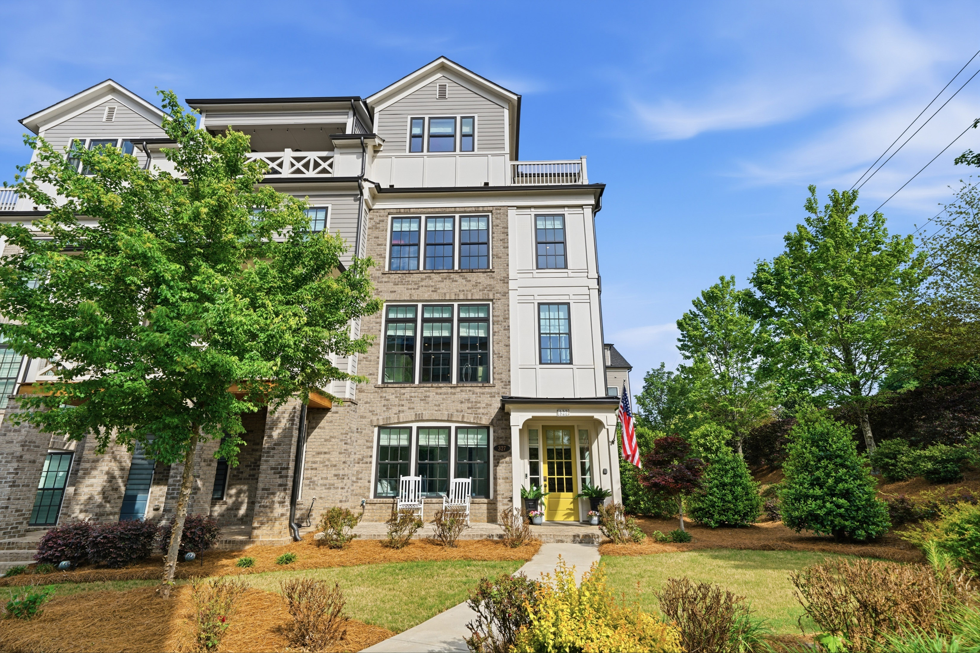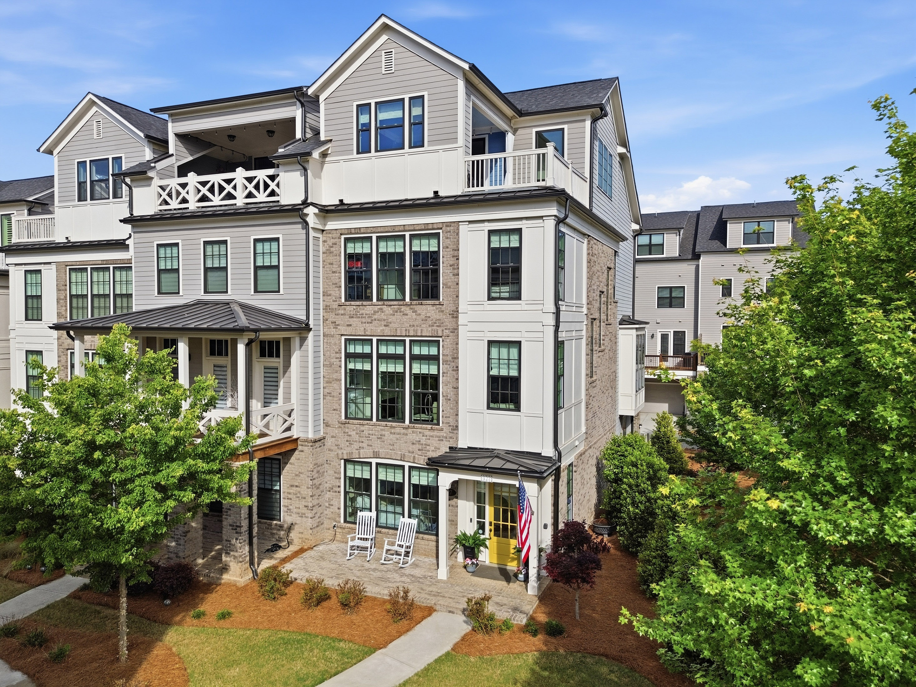 This beautifully maintained four-bedroom end-unit with an elevator and hardwoods throughout the townhome offers light-filled living and an exceptional walkable lifestyle in the heart of Alpharetta. Just steps from Avalon, right on the Alpha Loop, and convenient to GA-400, this home combines low-maintenance luxury with easy access to shopping, dining, and entertainment. *The home also offers a low-rate assumable VA loan for another veteran, adding a meaningful financing opportunity. A new custom front porch addition creates a warm and inviting first impression, while thoughtful custom touches throughout add style and function. The private elevator with custom tile detail adds everyday convenience and makes each level of the home easily accessible. The entry level features a guest bedroom with custom closet and en-suite bath, ideal for visitors. The main living level offers an open flow between the kitchen, coffee area, and living room, creating an easy space for everyday living and entertaining. Highlights include a spacious island, custom cabinet additions for extra storage, KitchenAid appliances, and a reinforced deck designed to accommodate the hot tub. Upstairs, the primary suite offers expanded bedroom space and a well-appointed bath with quartz countertops, a soaking tub, and custom details. A secondary bedroom with en-suite bath and an enlarged laundry room with sink add comfort and convenience. The fourth level includes a gym space, an additional guest bedroom and full bath, plus a rooftop terrace that extends the living experience outdoors with space to relax or entertain above it all. With a community pool and one of Alpharetta’s most connected locations, this home offers a rare opportunity to enjoy stylish, lock-and-leave living just moments from all that Avalon and downtown Alpharetta have to offer.