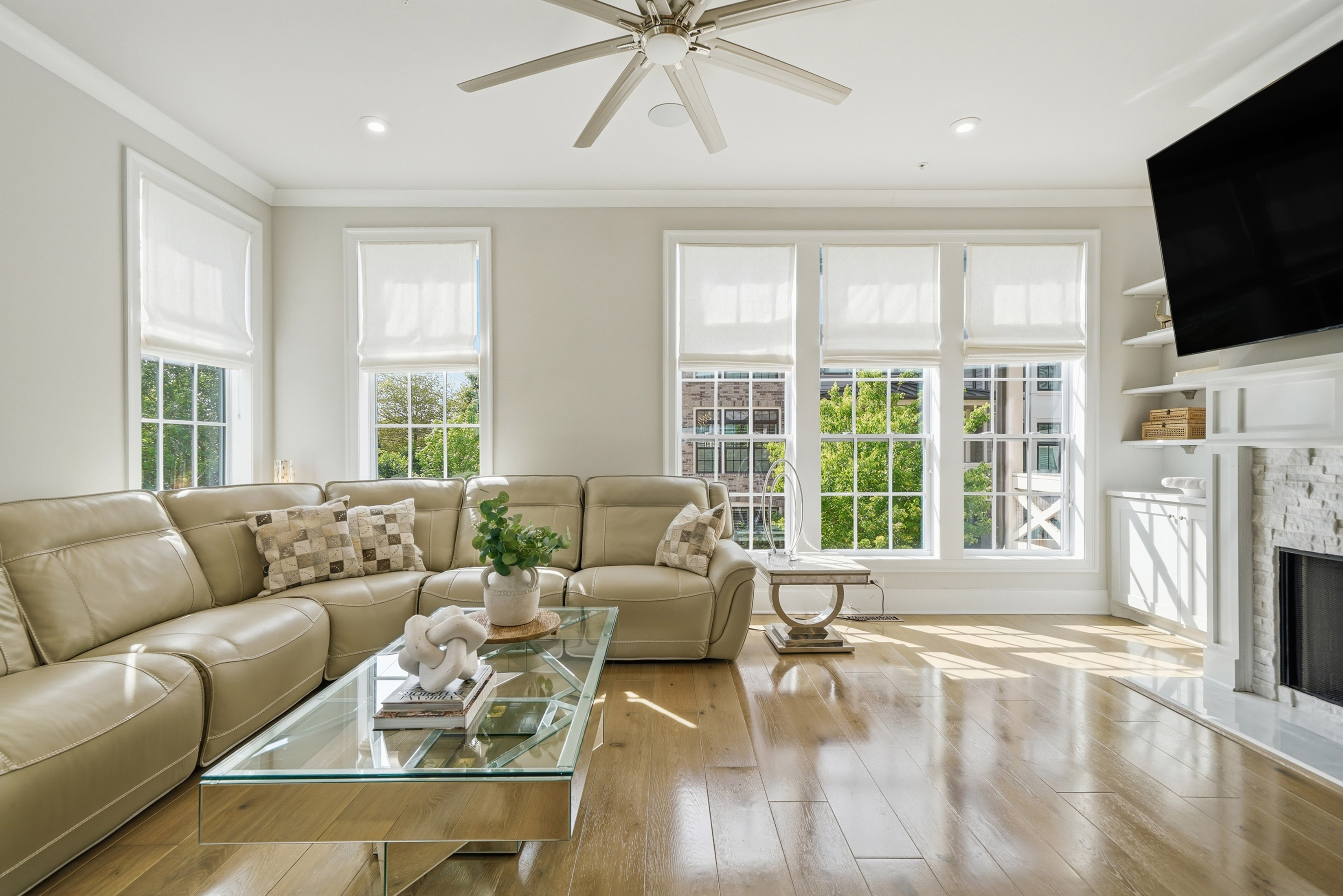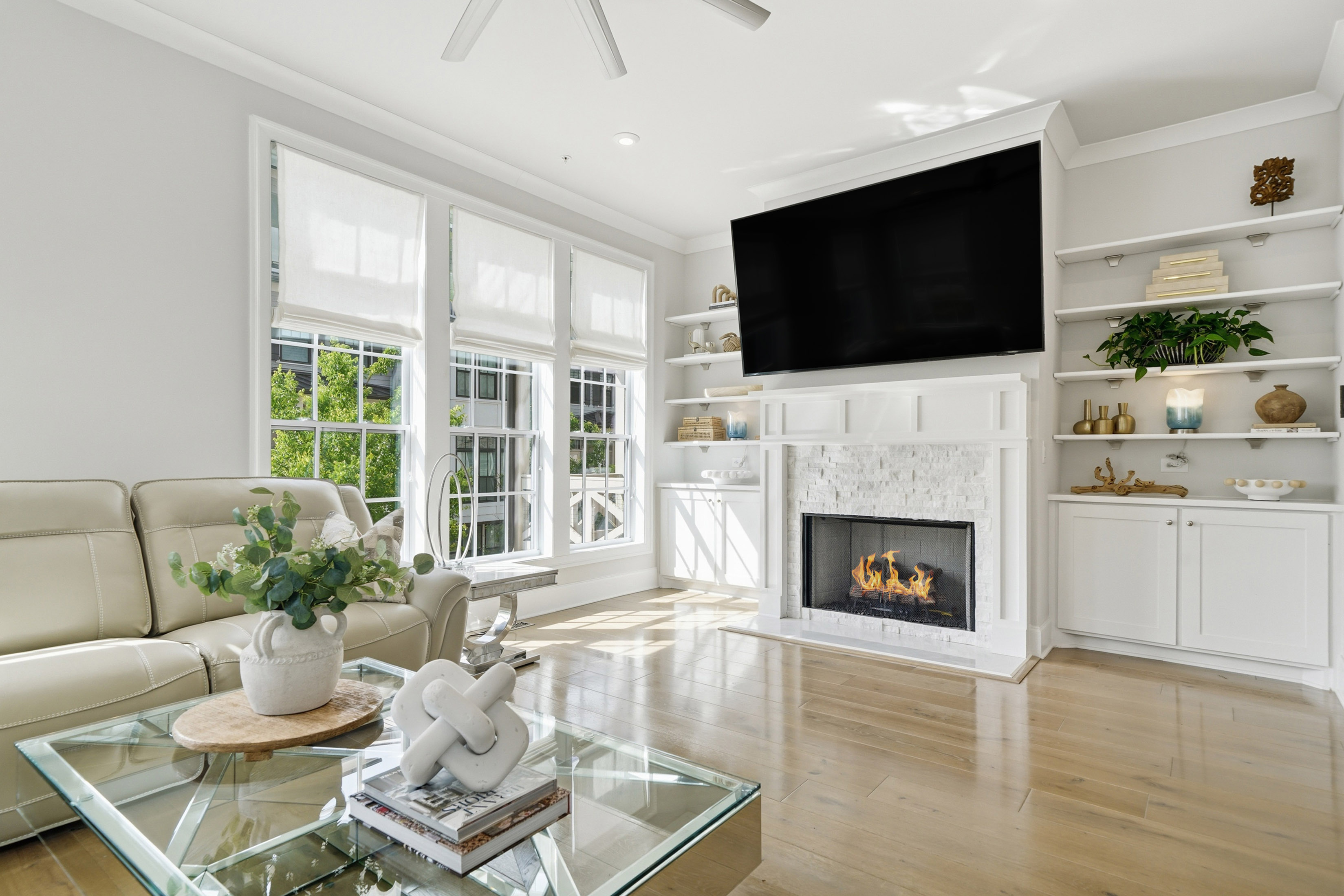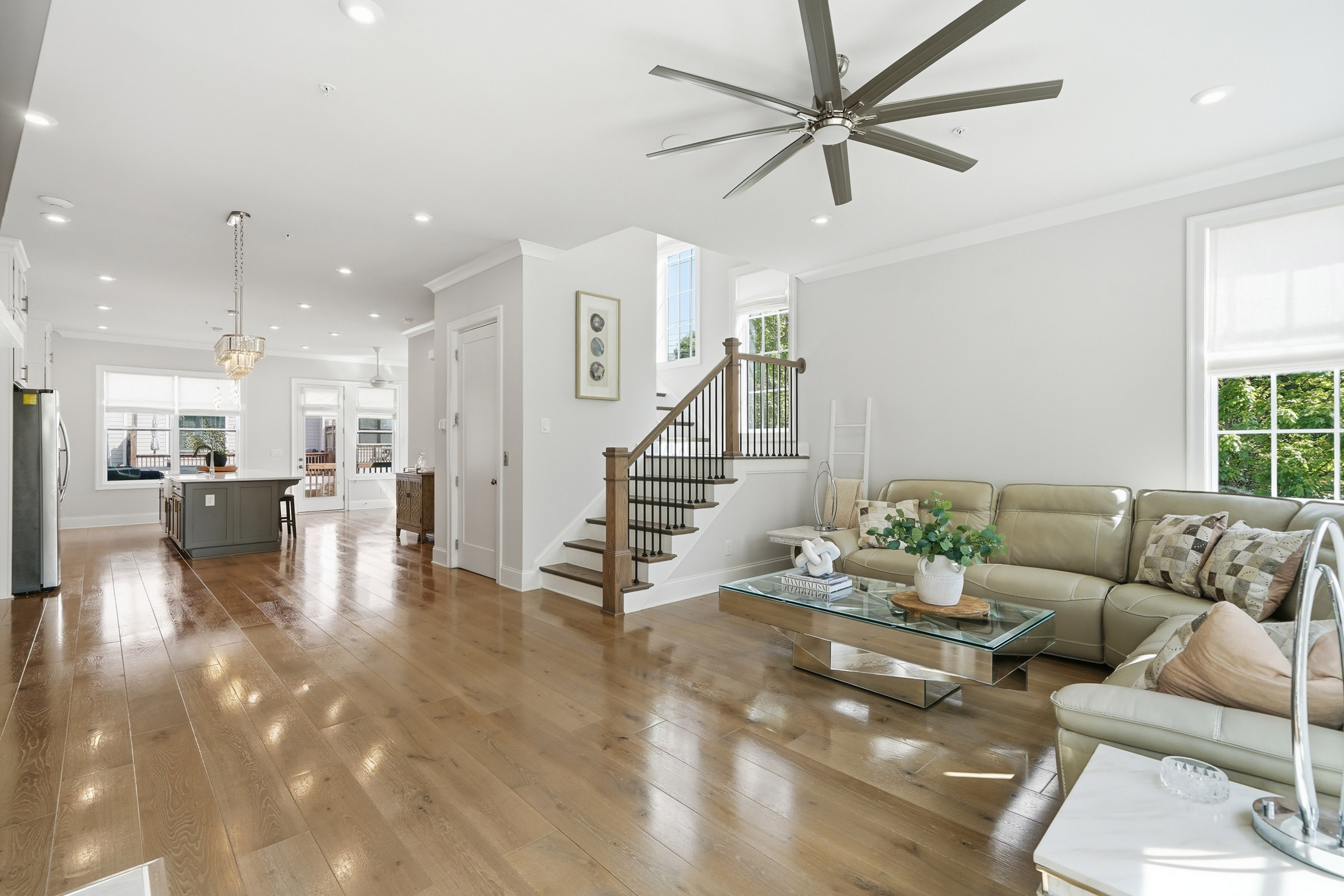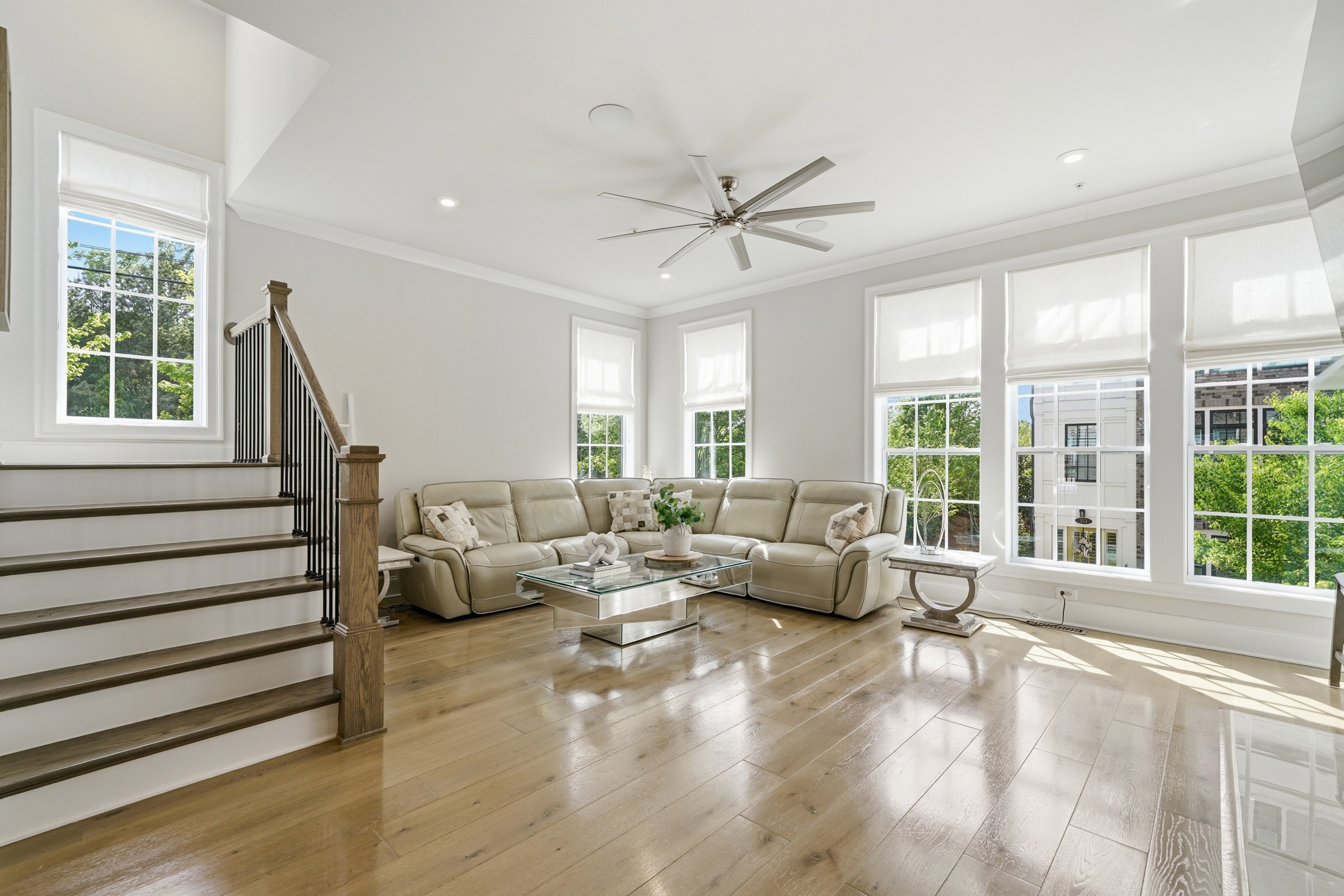 This beautifully maintained four-bedroom end-unit with an elevator and hardwoods throughout the townhome offers light-filled living and an exceptional walkable lifestyle in the heart of Alpharetta. Just steps from Avalon, right on the Alpha Loop, and convenient to GA-400, this home combines low-maintenance luxury with easy access to shopping, dining, and entertainment. *The home also offers a low-rate assumable VA loan for another veteran, adding a meaningful financing opportunity. A new custom front porch addition creates a warm and inviting first impression, while thoughtful custom touches throughout add style and function. The private elevator with custom tile detail adds everyday convenience and makes each level of the home easily accessible. The entry level features a guest bedroom with custom closet and en-suite bath, ideal for visitors. The main living level offers an open flow between the kitchen, coffee area, and living room, creating an easy space for everyday living and entertaining. Highlights include a spacious island, custom cabinet additions for extra storage, KitchenAid appliances, and a reinforced deck designed to accommodate the hot tub. Upstairs, the primary suite offers expanded bedroom space and a well-appointed bath with quartz countertops, a soaking tub, and custom details. A secondary bedroom with en-suite bath and an enlarged laundry room with sink add comfort and convenience. The fourth level includes a gym space, an additional guest bedroom and full bath, plus a rooftop terrace that extends the living experience outdoors with space to relax or entertain above it all. With a community pool and one of Alpharetta’s most connected locations, this home offers a rare opportunity to enjoy stylish, lock-and-leave living just moments from all that Avalon and downtown Alpharetta have to offer.