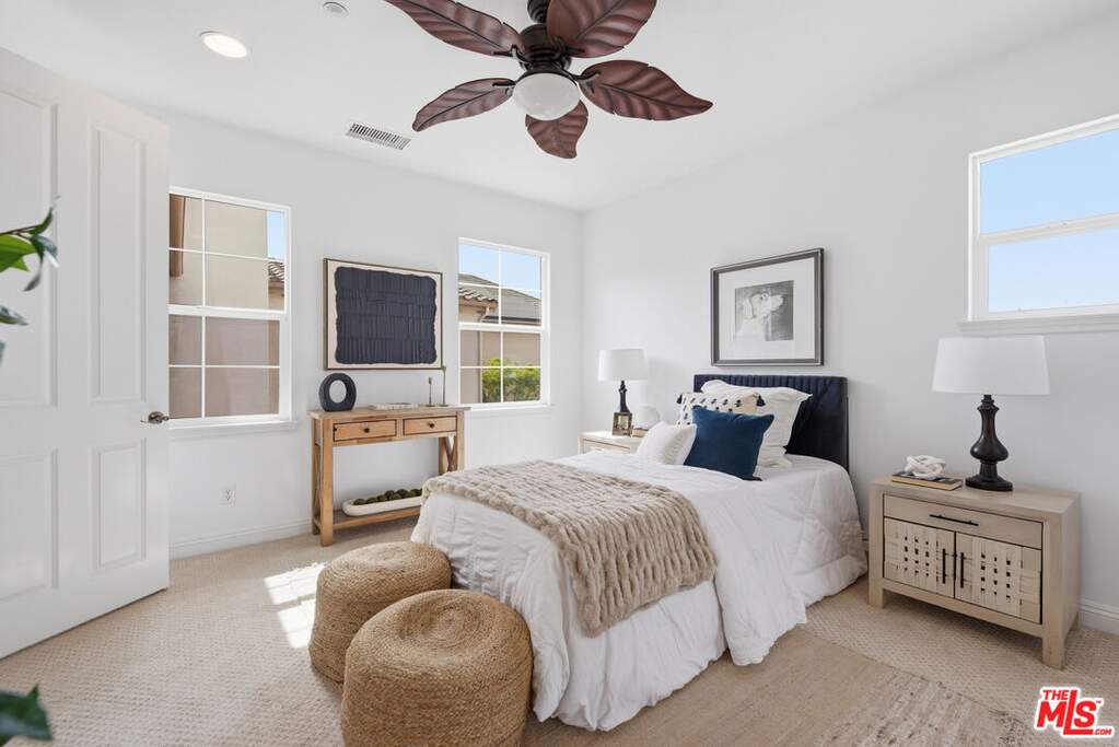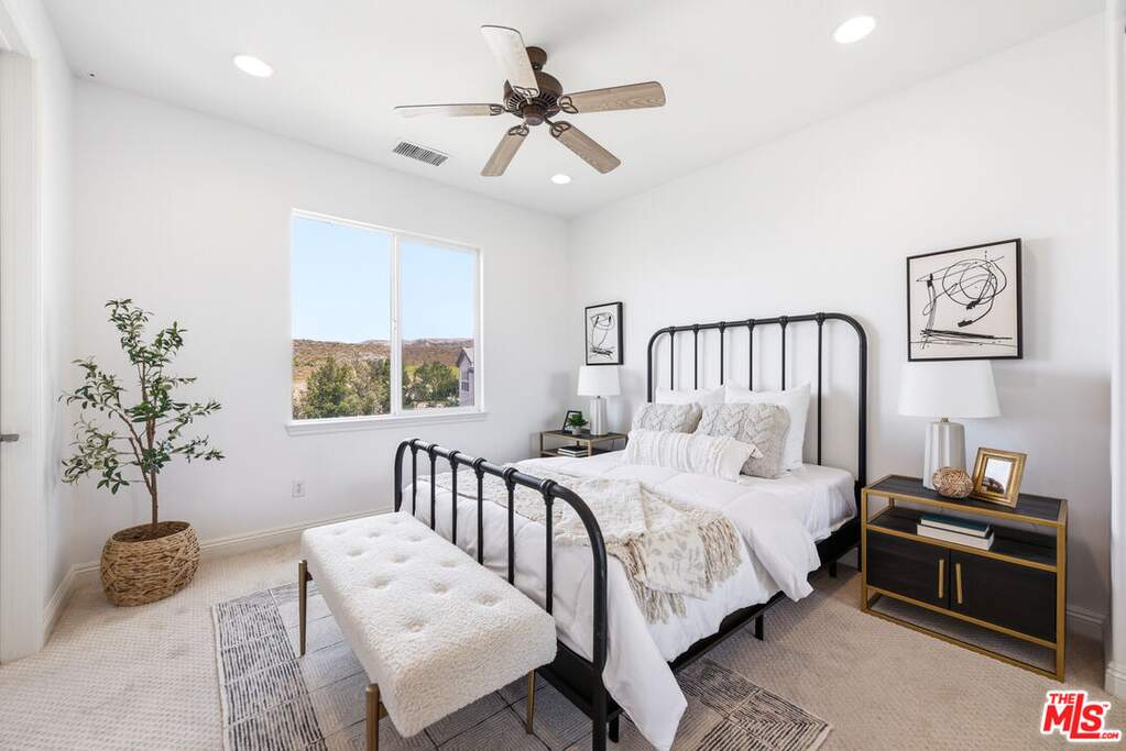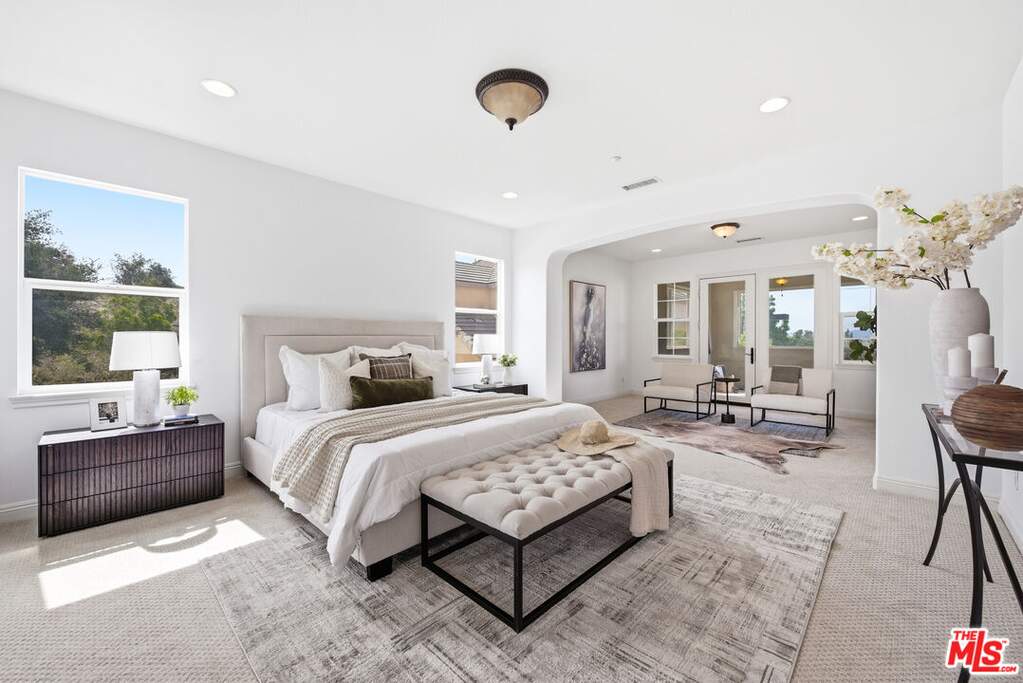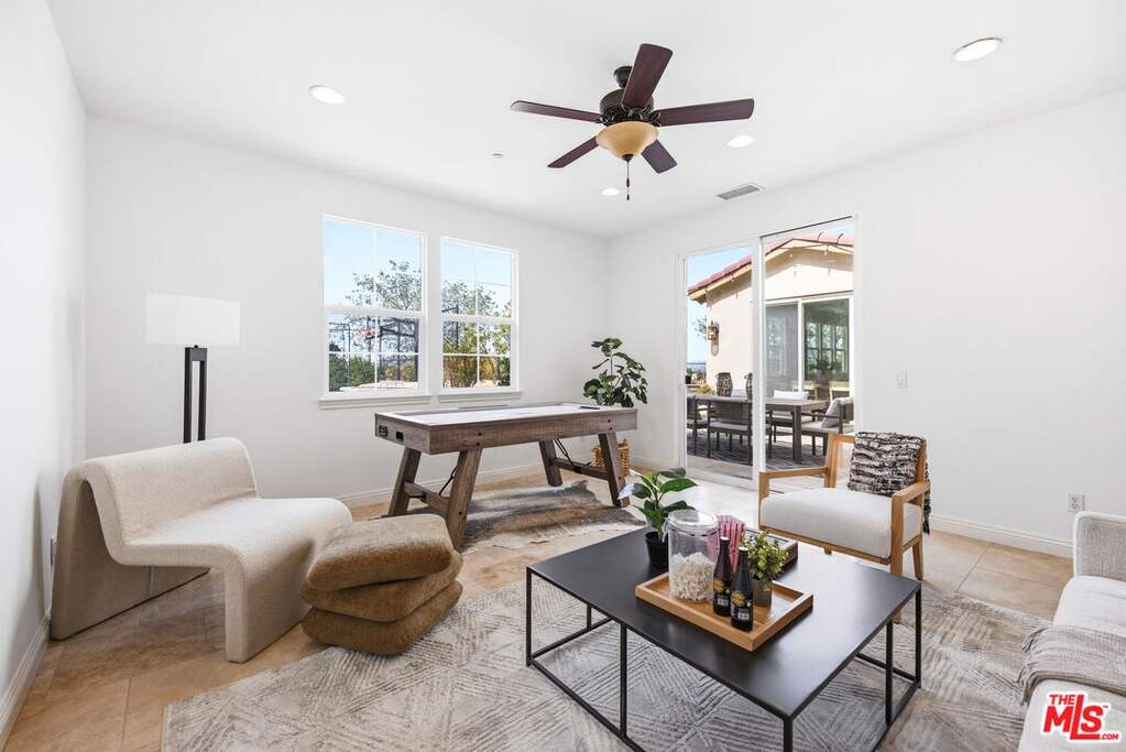 Situated at the end of a quiet cul-de-sac in one of Simi Valley's most desirable neighborhoods, this private estate offers stunning sunset and mountain views on an oversized lot. Designed for both comfort and elevated living, the home is filled with natural light and features freshly painted interiors, creating a bright and refined atmosphere throughout. A grand formal living room with soaring 20-foot ceilings sets the tone, while the thoughtfully designed layout flows seamlessly into the dining area and a sunlit breakfast nook just off the kitchen. The kitchen is equipped with high-end appliances, a generous island and opens to the main living spaces, ideal for both everyday living and entertaining. Offering five bedrooms and a spacious bonus room, the home is designed with an ideal layout, including a main-level bedroom for guests or multigenerational living. Upstairs, the expansive primary suite serves as a private retreat, complete with a separate sitting area, private enclosed balcony with panoramic views and an oversized walk-in closet. The home's layout creates a natural connection to the outdoors with living spaces oriented around the backyard for effortless indoor-outdoor living. Designed for both relaxation and recreation, the grounds feature a pool and spa heated by a fully paid-for solar system, a sports court and multiple areas to enjoy the surrounding landscape and stunning sunset views. Complete with a three-car garage, this is a rare offering that combines privacy, functionality and a layout perfectly suited for modern family living.
