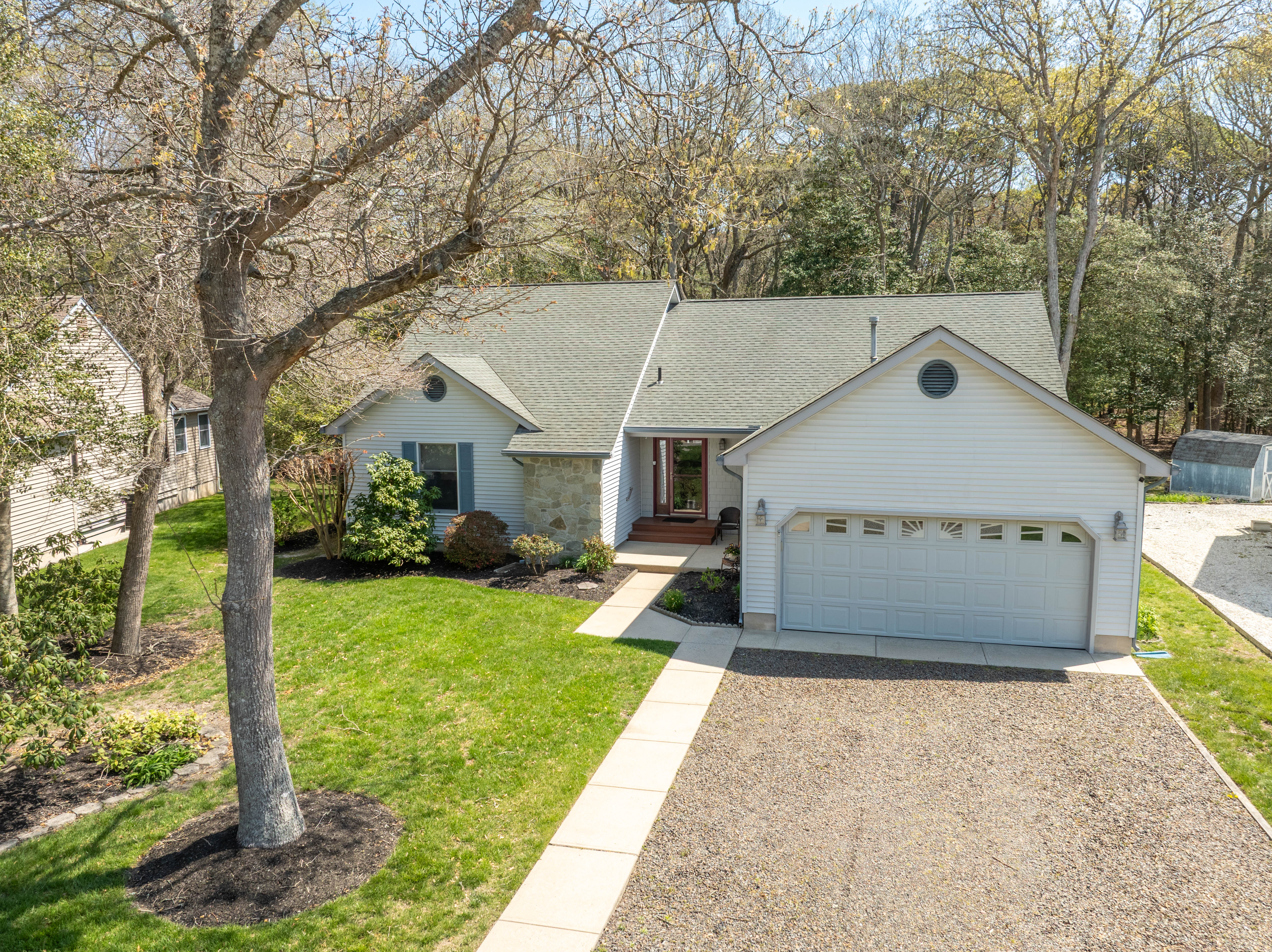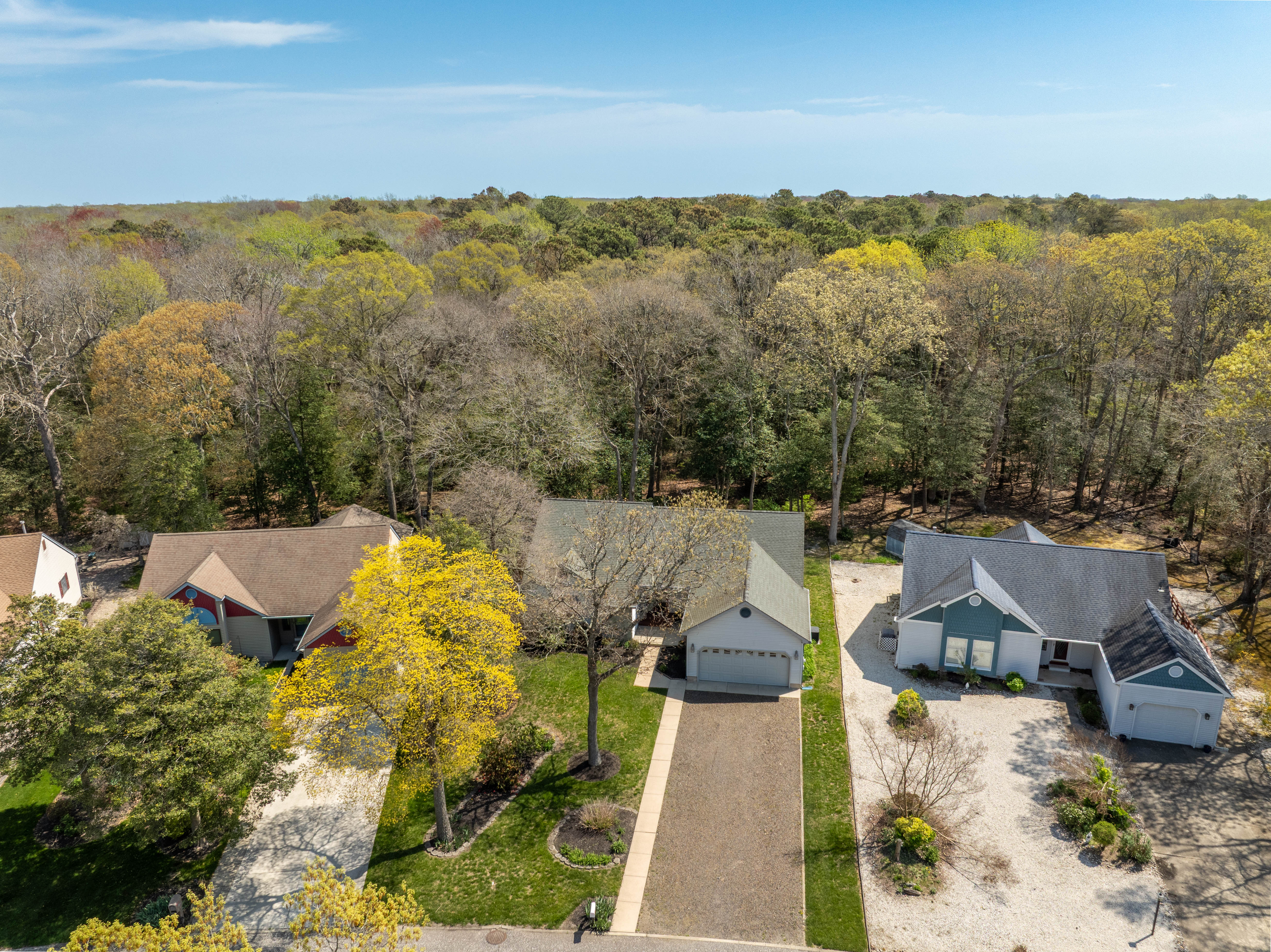 This inviting ranch home is perfectly situated on a quiet, wooded cul-de-sac in the highly sought-after Cape Woods community. Just minutes from Cape May, the Delaware Bay, and the beautiful Wildwood beaches, and conveniently close to shopping and dining, this property offers the ideal setting for both a vacation retreat and year-round living.Inside, the bright, open-concept layout is designed for effortless modern living and entertaining. The foyer opens into a spacious great room with dramatic cathedral ceilings that flows seamlessly into the kitchen with a center island and a generous dining area. Sliding glass doors lead to a delightful three-season Florida room and adjoining deck, both overlooking a peaceful, tree-lined backyard.The private master suite features an en-suite bathroom and a large walk-in closet. On the opposite side of the home, two guest bedrooms share a full bathroom. Additional highlights include ample closet space throughout, a large laundry/mudroom with direct access from the attached two-car garage, gas heat, central air conditioning, and beautifully maintained landscaping.This well-cared-for home blends tranquility and functionality in one of the area’s most desirable neighborhoods. A must-see!