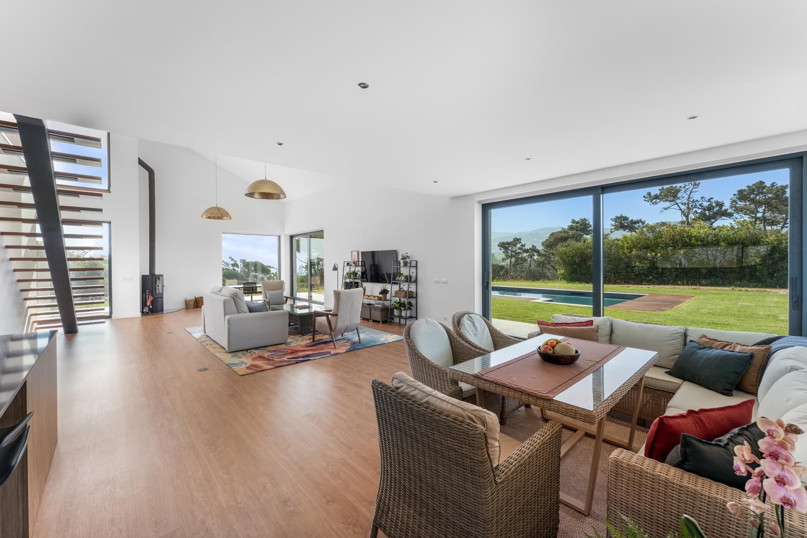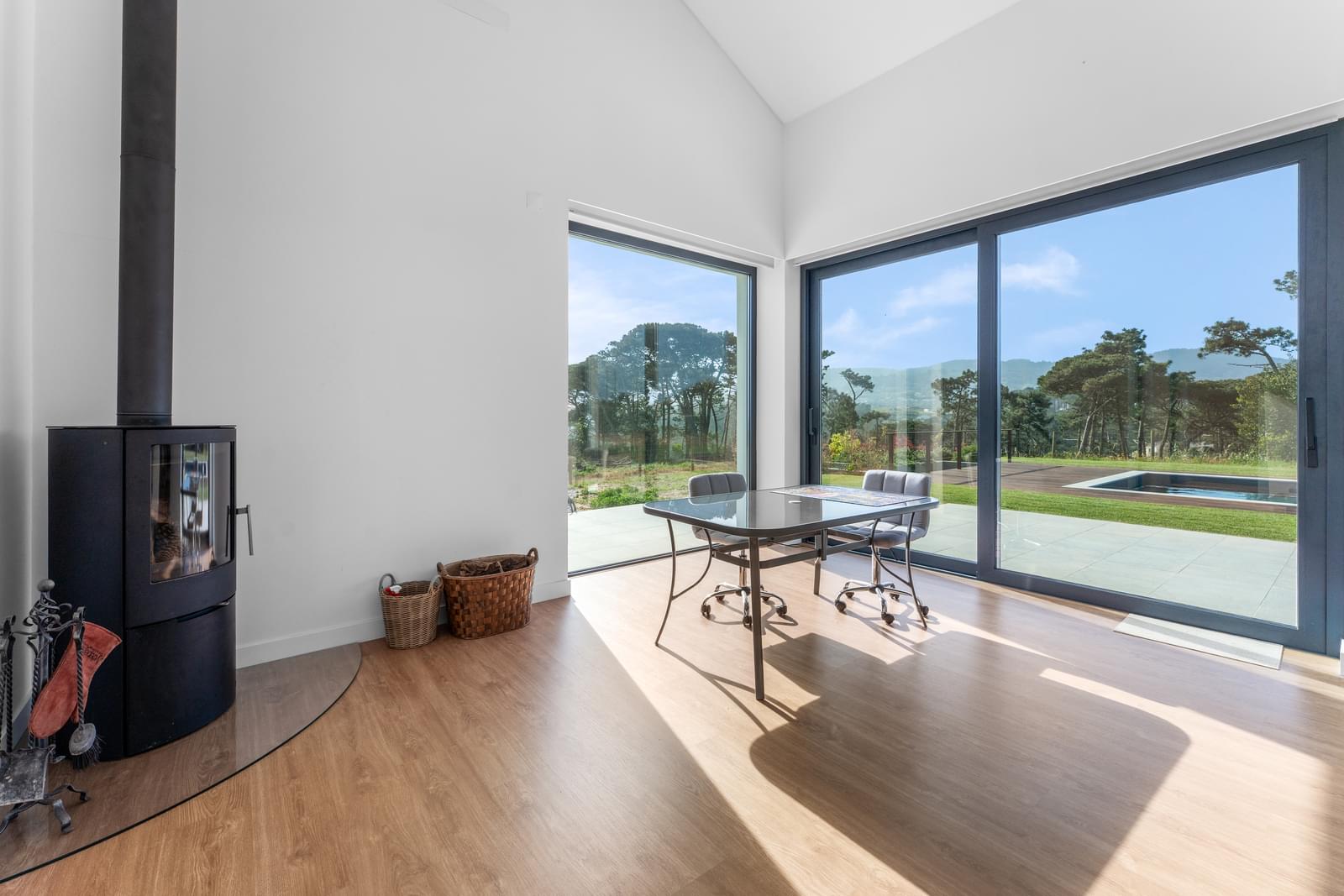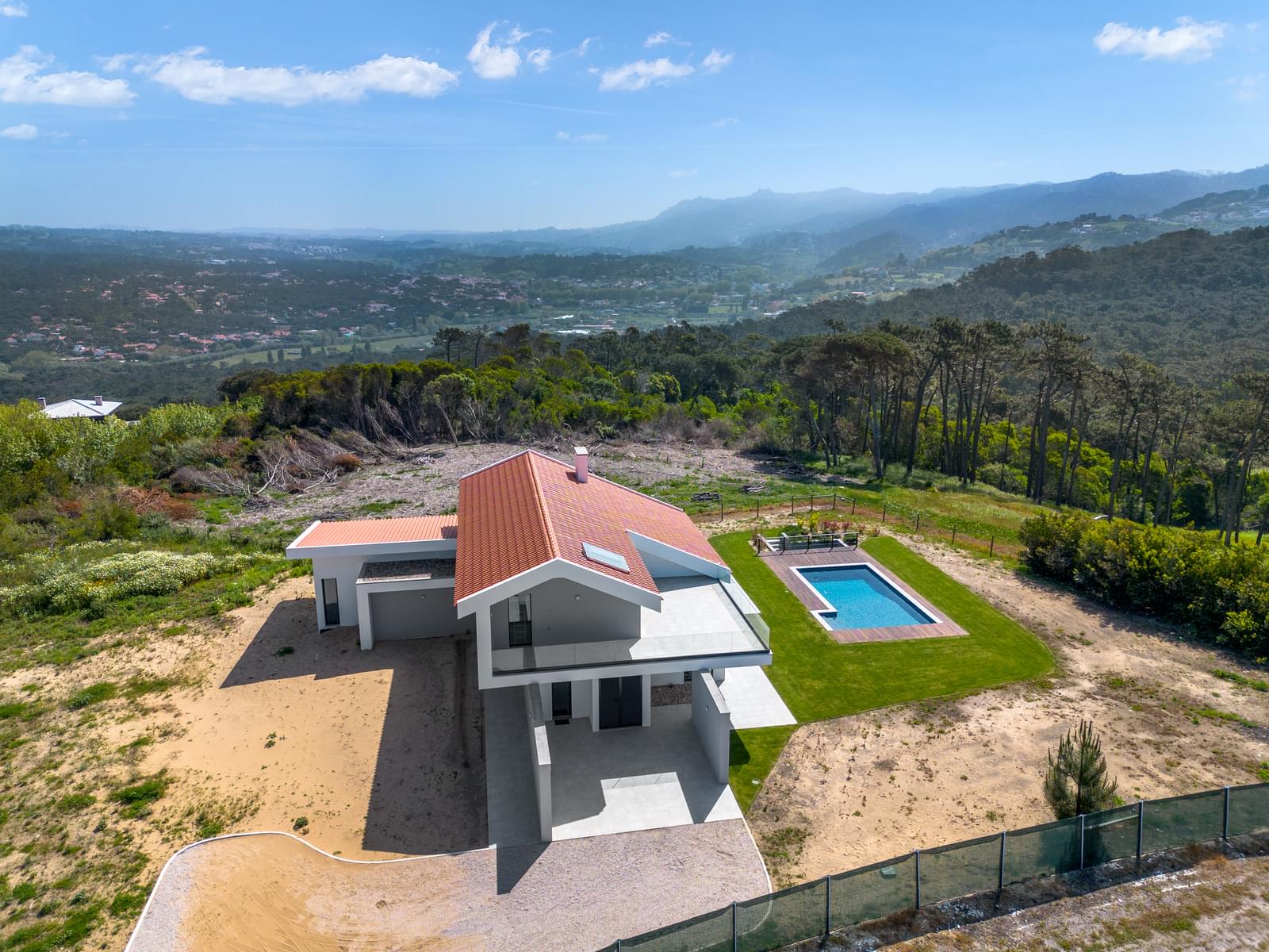 Discover this exclusive detached 4-bedroom villa, completed in 2025, set within the stunning landscape of the Sintra-Cascais Natural Park, where the mountains and the ocean meet in perfect harmony. Located in Colares, just a short walk from the center of Almoçageme, it offers easy access to local shops, restaurants, and essential services.Set on a generous 5,043 sqm plot, this property ensures complete privacy and a unique natural setting. The villa offers approximately 266 sqm of gross private area, spread over two floors, and has been designed to maximize natural light and seamless indoor-outdoor living.On the ground floor, the social area stands out with a spacious open-plan layout, featuring a living and dining area with a 4-meter ceiling height, directly connected to a modern kitchen with a central island and open sea views. This space flows effortlessly into the south-facing garden and swimming pool. This level also includes two comfortable en-suite bedrooms with mountain views, a guest bathroom, and a laundry room with independent access.Upstairs, the master suite provides a true private retreat, with a panoramic terrace overlooking the mountains, a walk-in closet, with tho bathrooms - one with a bathtub and another one with a shower. A mezzanine space, currently used as an office, can easily be converted into a fourth suite, adapting to future needs.The generous terraces offer breathtaking views over the surrounding landscape, including landmarks such as the Pena Palace, the Sintra National Palace, and the Castle of the Moors. In the distance, the ocean stretches along the coastline, from Praia Grande to Ericeira.Outdoor living is further enhanced by the new pedestrian walkways in Colares, improving access to the beaches and strengthening the connection with nature. Just a short distance away, Praia Grande becomes easily accessible, reinforcing the coastal lifestyle.The area is also benefiting from the redevelopment of the former holiday colony of the CUF, which will be transformed into a future luxury resort, further elevating the prestige and attractiveness of the region.The location is ideal for those seeking tranquility without compromising accessibility: just minutes from iconic beaches such as Praia Grande, Praia da Adraga and Praia das Maçãs, around 15 minutes from the historic center of Sintra, and with quick connections to Cascais and Lisbon. The airport is approximately a 40-minute drive away.A unique property where comfort, nature, and sophistication come together—perfect for those who value quality of life in one of Portugal's most exclusive settings.
