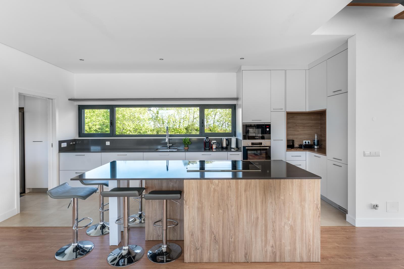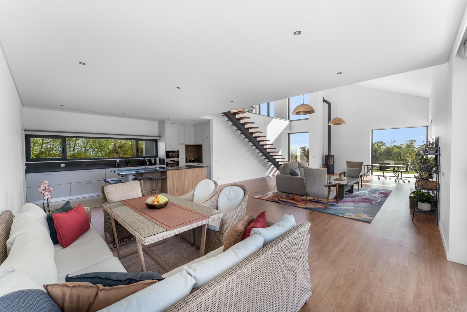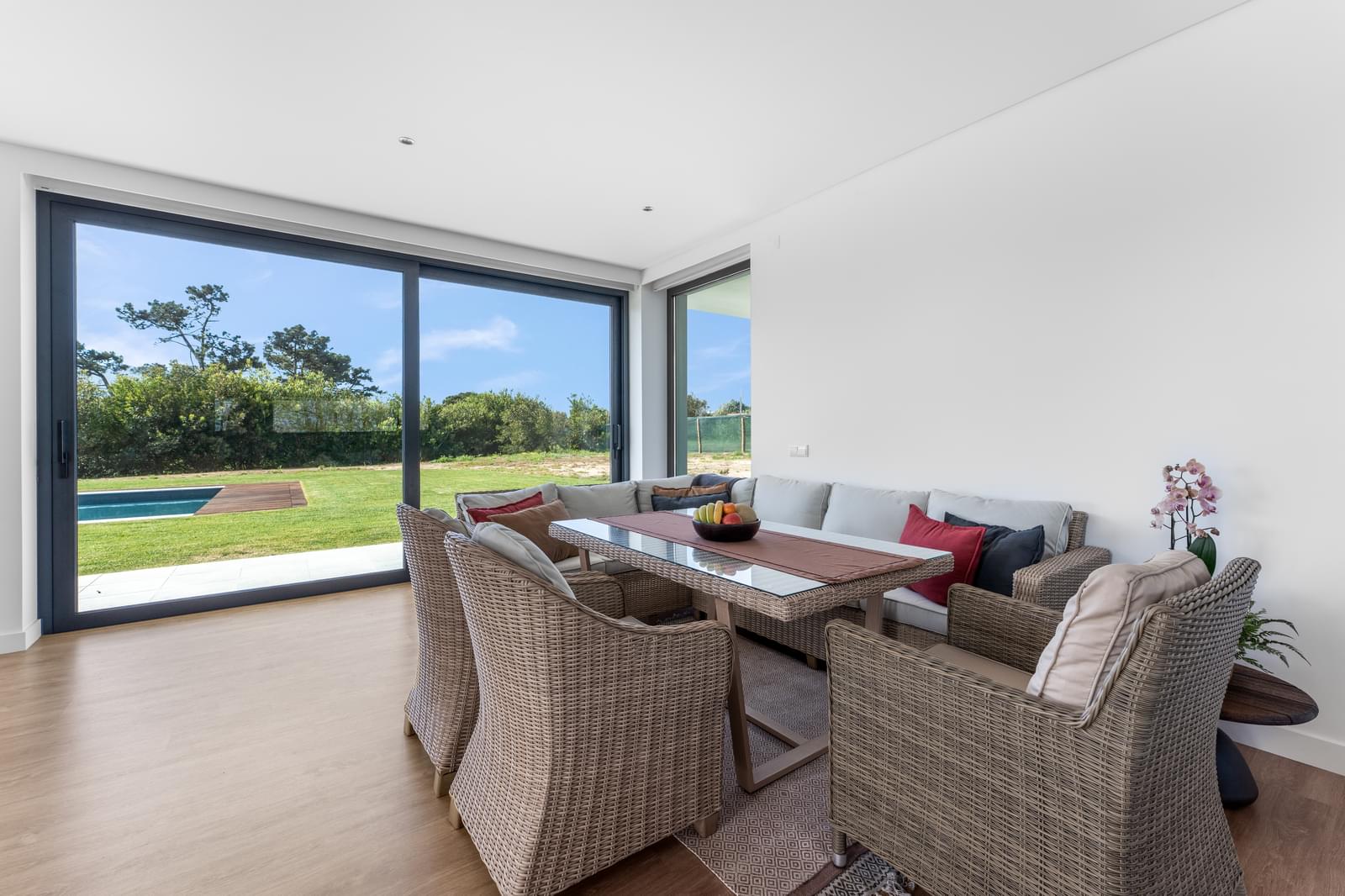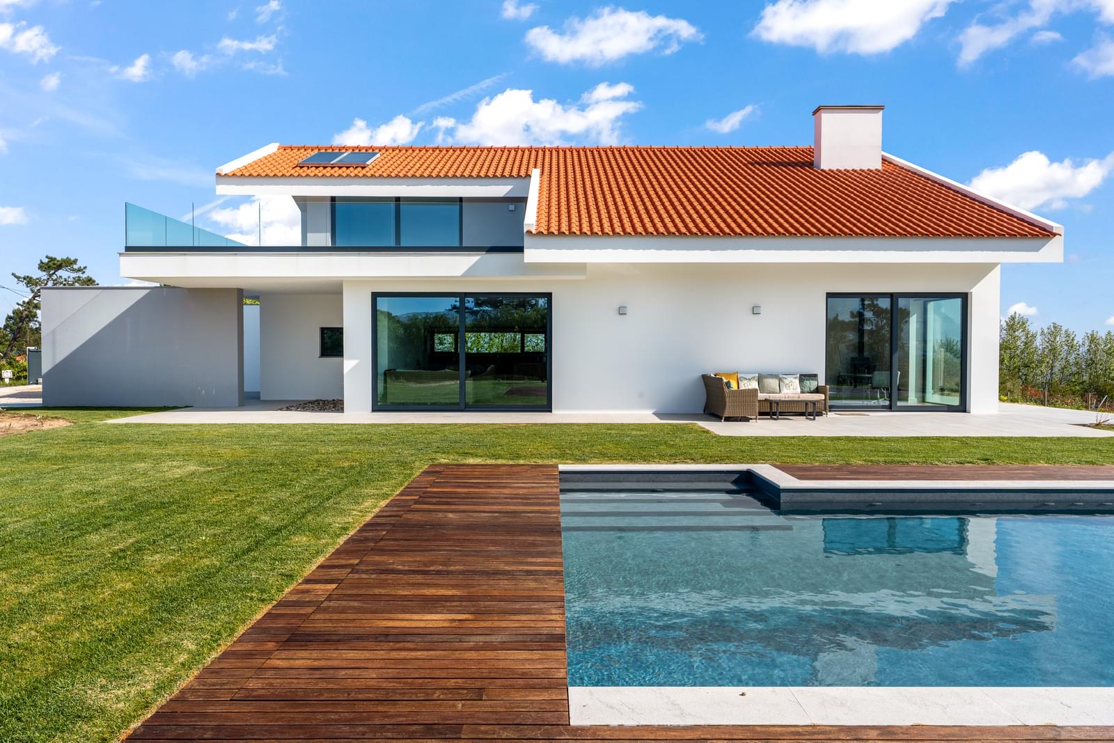 Discover this exclusive detached 4-bedroom villa, completed in 2025, set within the stunning landscape of the Sintra-Cascais Natural Park, where the mountains and the ocean meet in perfect harmony. Located in Colares, just a short walk from the center of Almoçageme, it offers easy access to local shops, restaurants, and essential services.Set on a generous 5,043 sqm plot, this property ensures complete privacy and a unique natural setting. The villa offers approximately 266 sqm of gross private area, spread over two floors, and has been designed to maximize natural light and seamless indoor-outdoor living.On the ground floor, the social area stands out with a spacious open-plan layout, featuring a living and dining area with a 4-meter ceiling height, directly connected to a modern kitchen with a central island and open sea views. This space flows effortlessly into the south-facing garden and swimming pool. This level also includes two comfortable en-suite bedrooms with mountain views, a guest bathroom, and a laundry room with independent access.Upstairs, the master suite provides a true private retreat, with a panoramic terrace overlooking the mountains, a walk-in closet, with tho bathrooms - one with a bathtub and another one with a shower. A mezzanine space, currently used as an office, can easily be converted into a fourth suite, adapting to future needs.The generous terraces offer breathtaking views over the surrounding landscape, including landmarks such as the Pena Palace, the Sintra National Palace, and the Castle of the Moors. In the distance, the ocean stretches along the coastline, from Praia Grande to Ericeira.Outdoor living is further enhanced by the new pedestrian walkways in Colares, improving access to the beaches and strengthening the connection with nature. Just a short distance away, Praia Grande becomes easily accessible, reinforcing the coastal lifestyle.The area is also benefiting from the redevelopment of the former holiday colony of the CUF, which will be transformed into a future luxury resort, further elevating the prestige and attractiveness of the region.The location is ideal for those seeking tranquility without compromising accessibility: just minutes from iconic beaches such as Praia Grande, Praia da Adraga and Praia das Maçãs, around 15 minutes from the historic center of Sintra, and with quick connections to Cascais and Lisbon. The airport is approximately a 40-minute drive away.A unique property where comfort, nature, and sophistication come together—perfect for those who value quality of life in one of Portugal's most exclusive settings.