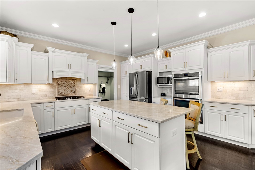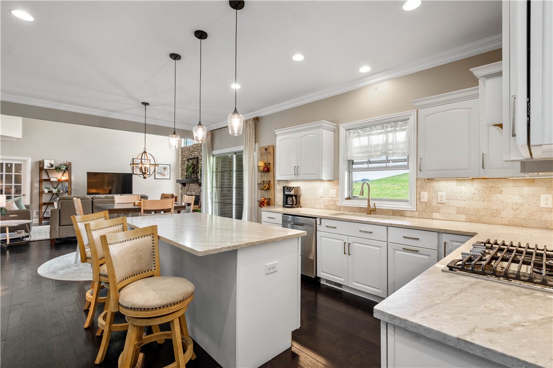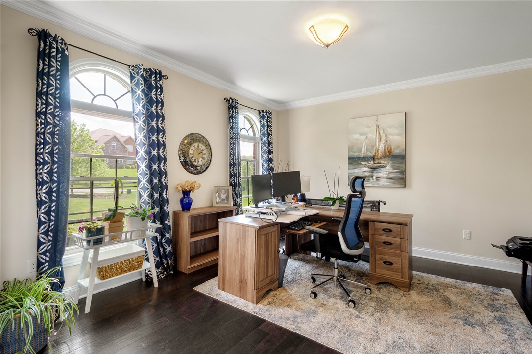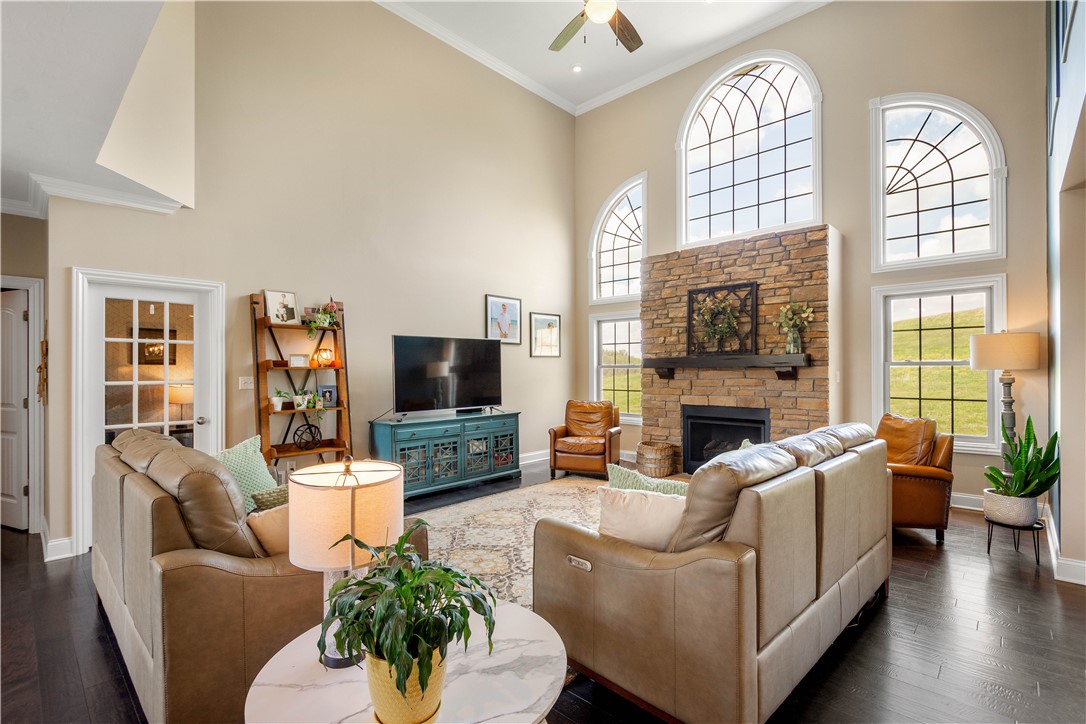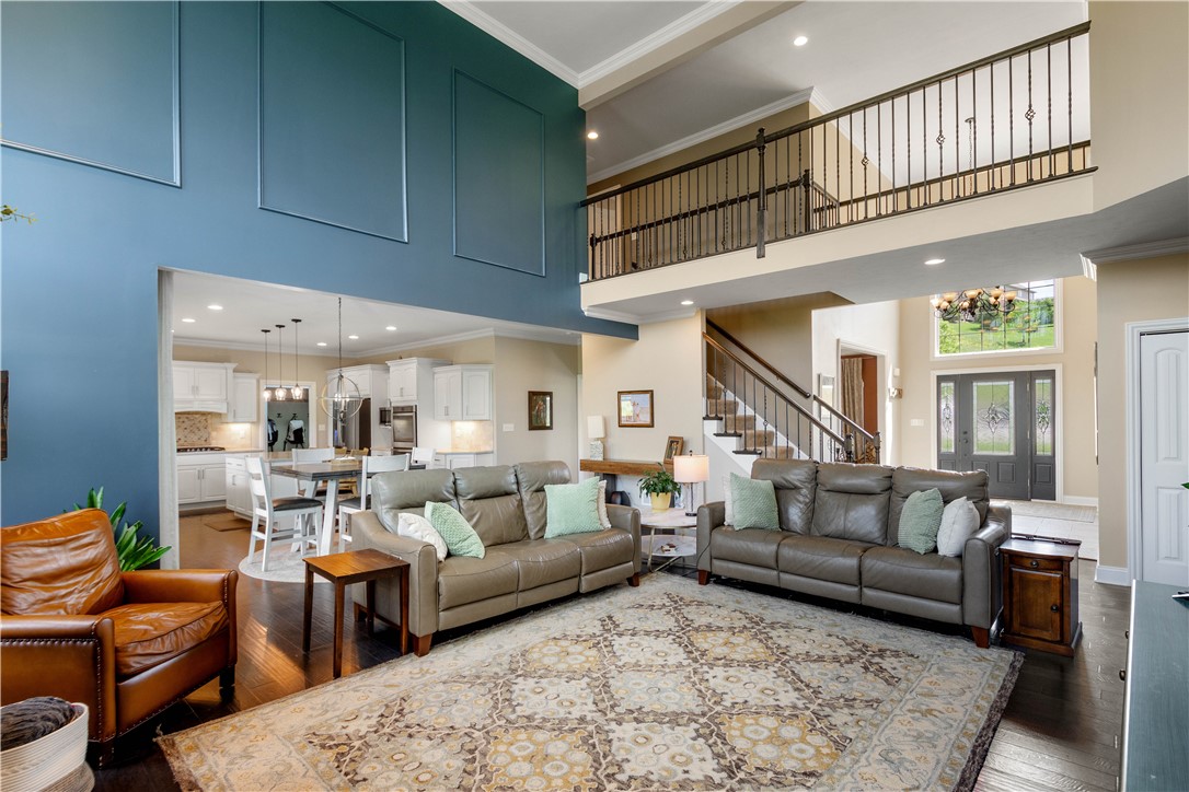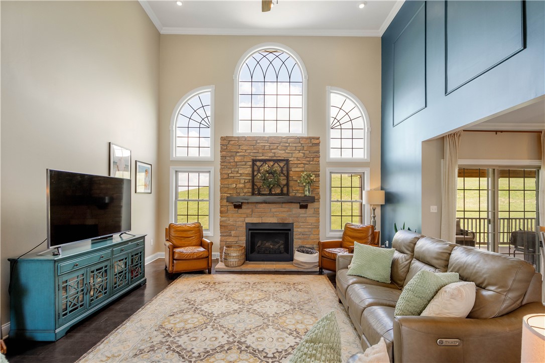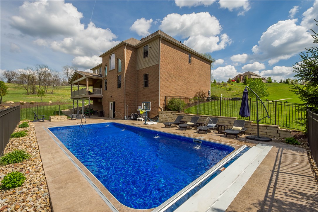 Discover the perfect blend of comfort and convenience in this stunning 4-bedroom home, perfectly situated on a quiet cul-de-sac lot that offers peaceful, expansive views of the surrounding farmland. The exterior is a true entertainer's oasis, featuring a maintenance-free covered deck that overlooks a heated salt-water pool, complete with a cozy gas fireplace for those memorable evenings outdoors. Inside, the home greets you with a magnificent 2-story family room that serves as a dramatic centerpiece. The flexible main level floor plan adapts effortlessly to your lifestyle, offering the versatile potential for two dedicated home offices, or a formal living room, or perhaps a spacious playroom - the choice is yours. The heart of the home is a sprawling kitchen anchored by a large center island, complemented by a large mudroom that keeps the household organized. Upstairs, the primary suite offers a peaceful retreat with two generous walk-in closets and a spa-like bathroom, while three additional bedrooms - including one with a private ensuite - ensure plenty of space for everyone. The lower level is equally impressive, featuring an expansive game room with a full wet bar and ample space for a pool table, along with a private gym and a versatile bonus room that functions perfectly as a teen hangout or a 5th bedroom thanks to an attached full bathroom. With an easy walk-out to the pool area, a level driveway, and an attached 3-car garage, this home offers unparalleled convenience! Near Peters Rec Center and Trax Farms this property is an exceptional find, offering an unbeatable combination of location, space, and lifestyle.