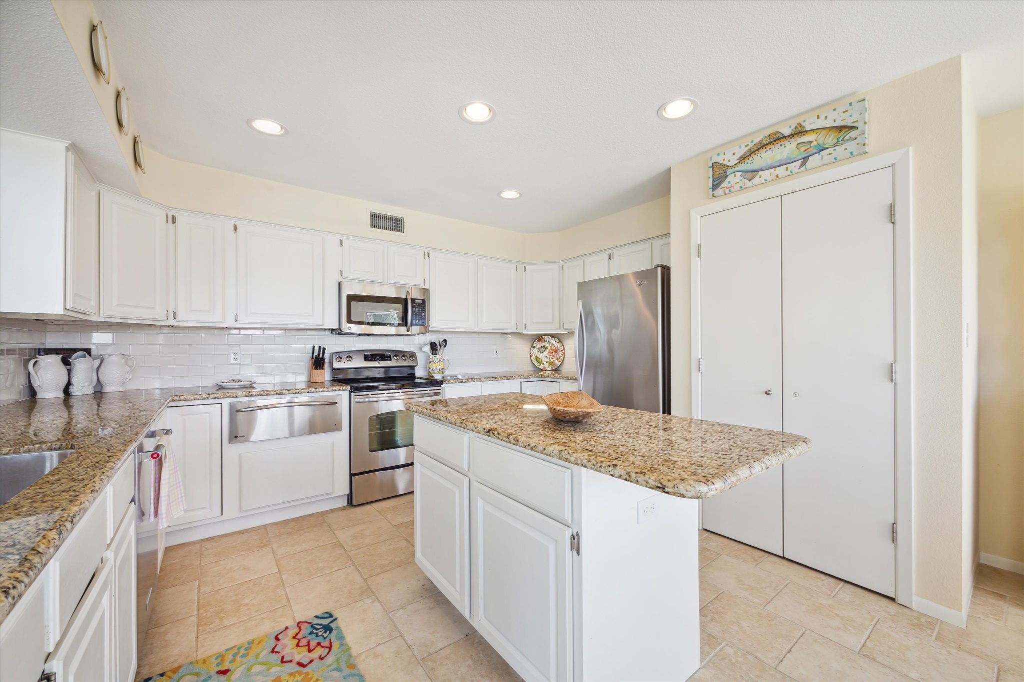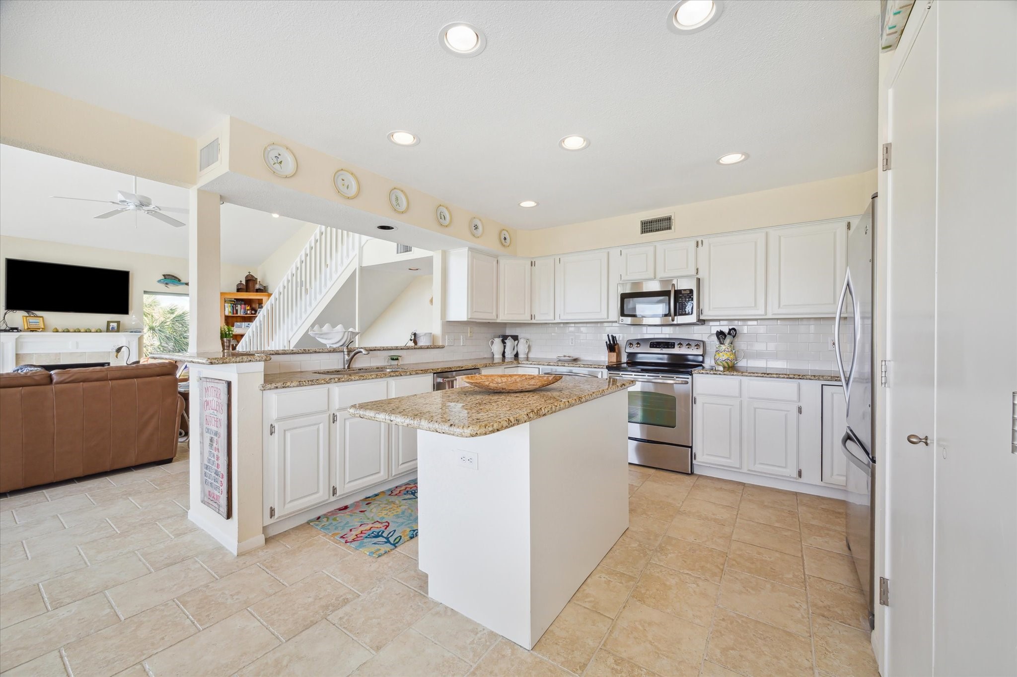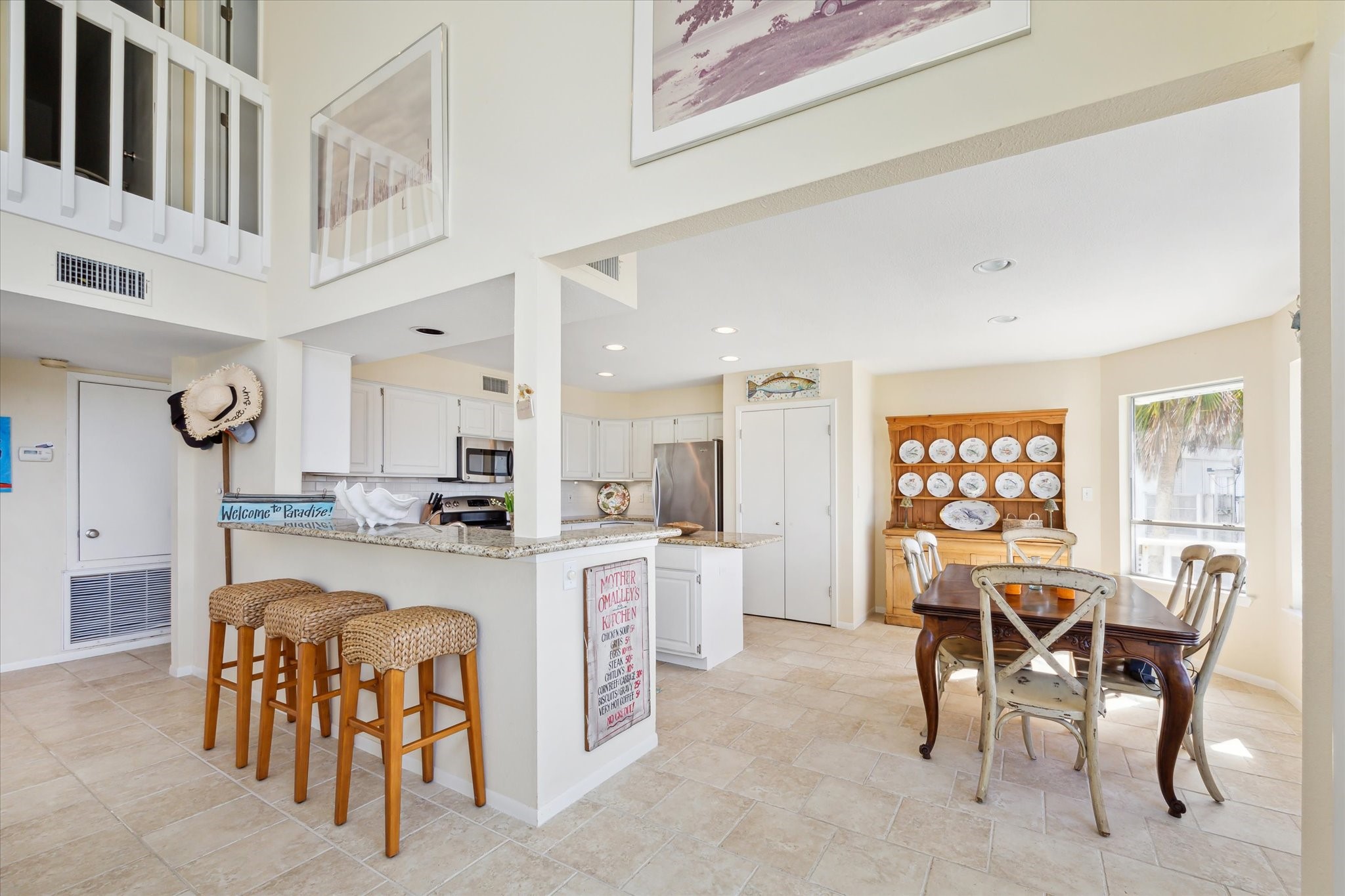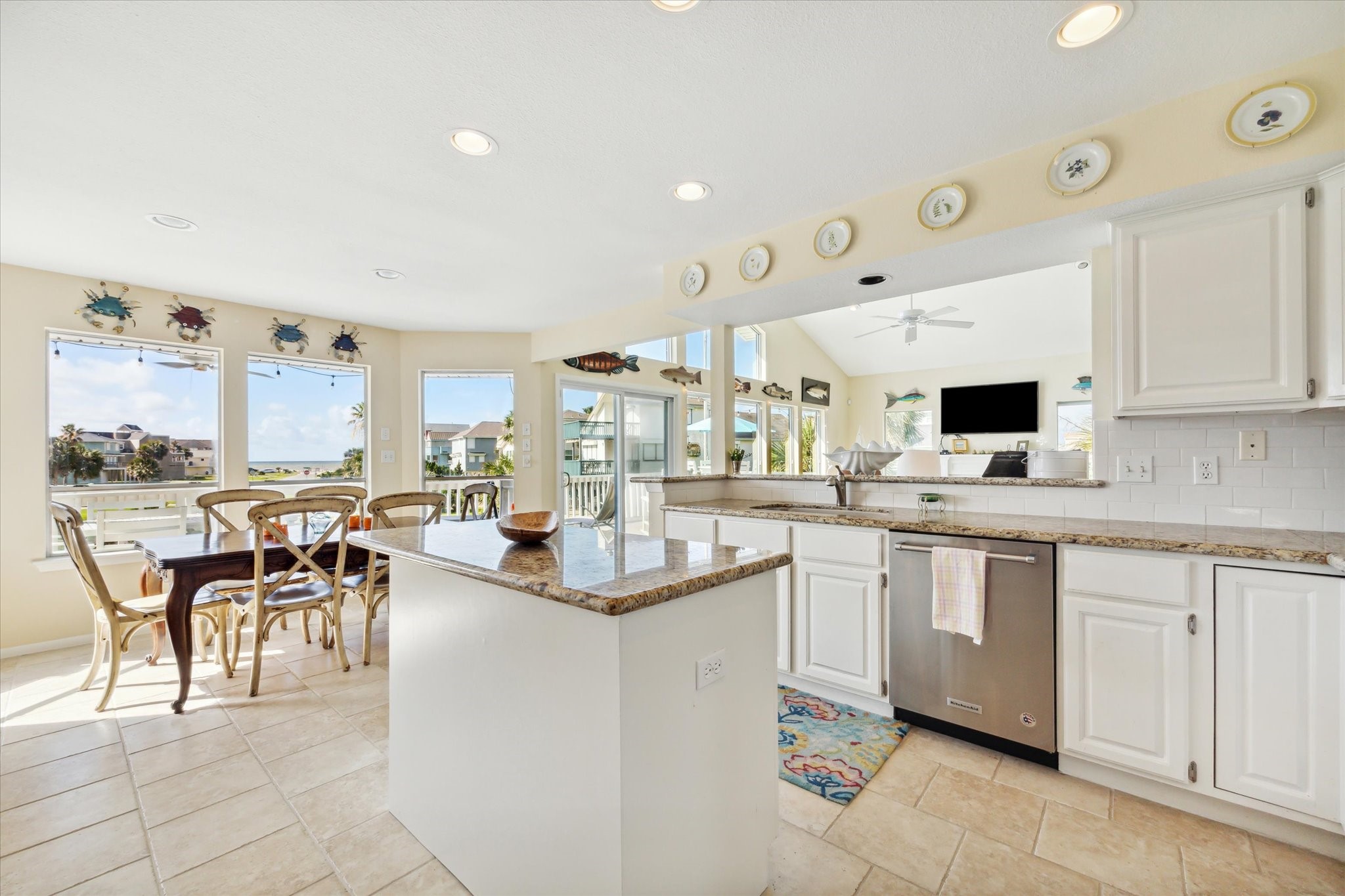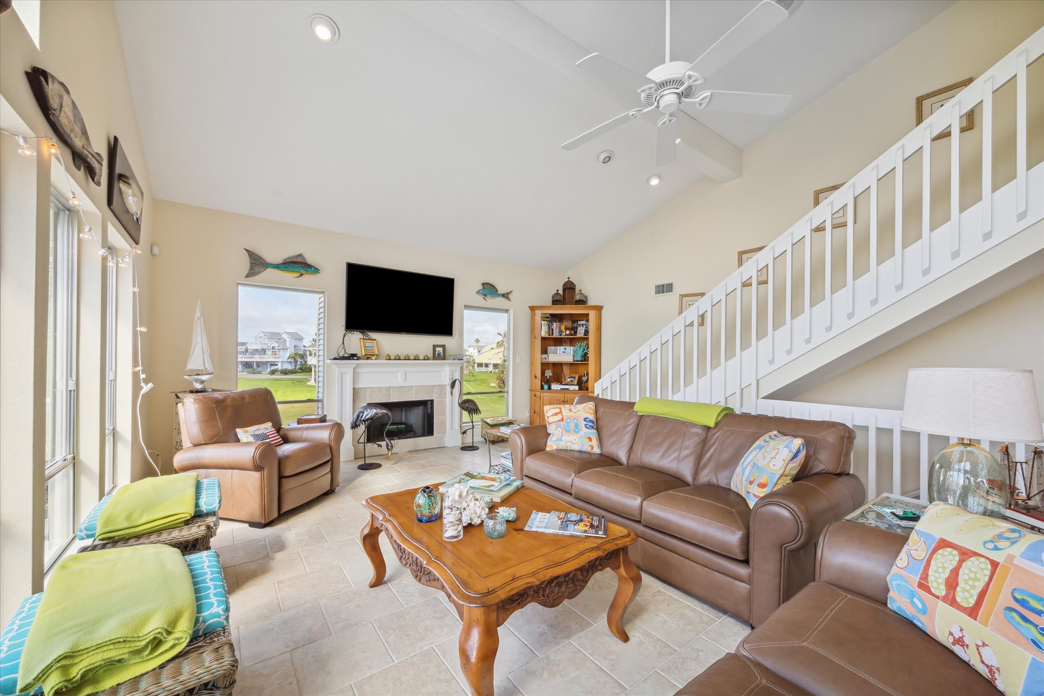Welcome to Paradise! Spectacular beach views from inside the house and from the decks at this updated two-story located on an oversized cul-de-sac lot in Pirates Beach! High ceilings and an open floor plan contribute to the coastal feel, while walls of windows showcase the views of the Gulf. Loaded with natural light, the main level features the living room with a woodburning fireplace, dining, and a truly updated kitchen, plus two guest bedrooms and an updated full bath. Upstairs is the primary bedroom with a large, updated bath plus an additional guest bedroom / second primary bedroom with an updated full bath. The lot next door is also for sale, to be sold separately, and the mandatory Galveston Country Club social membership conveys. There are electric storm shutters plus an electric exterior lift. NEW roof and 2 HVAC 2026! A very special place to call home.