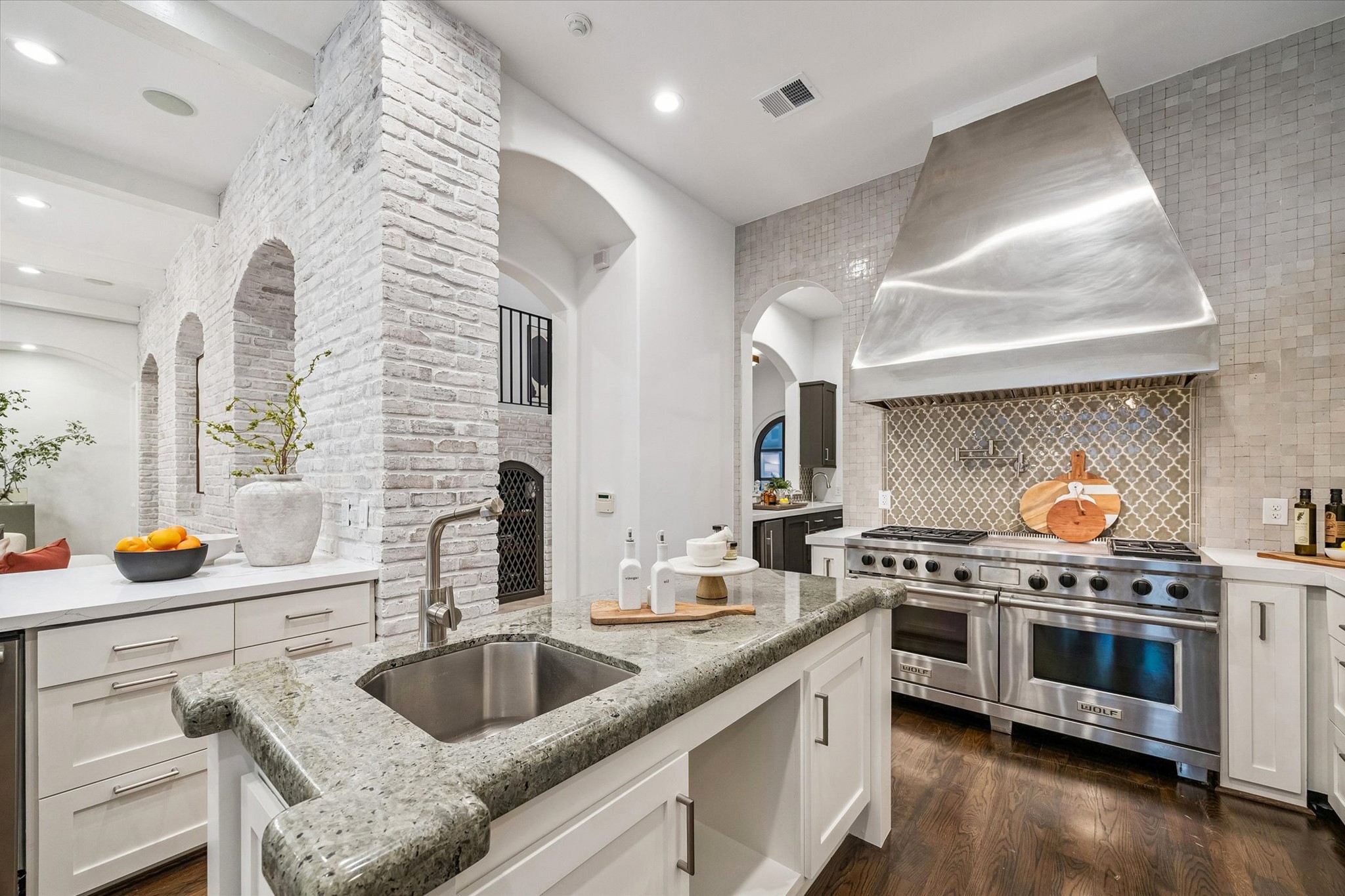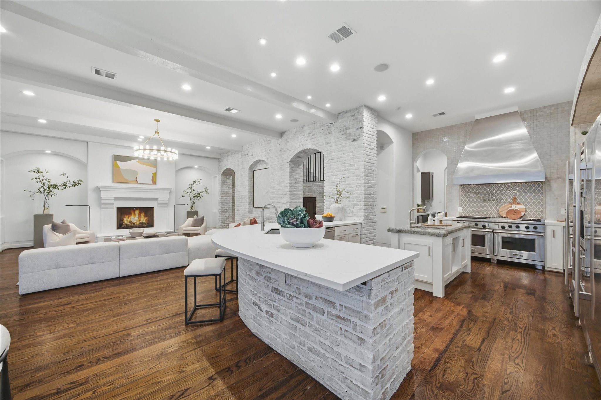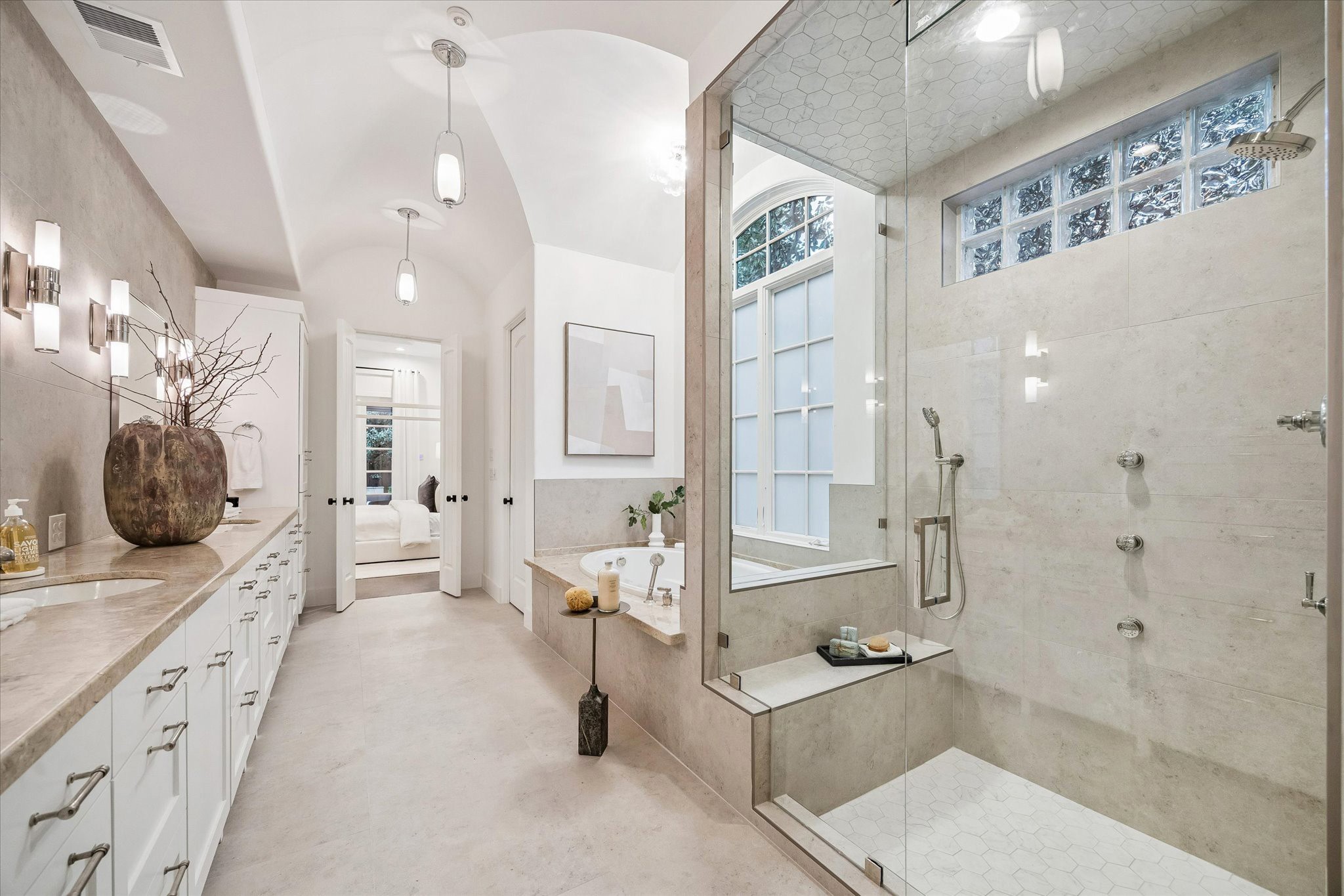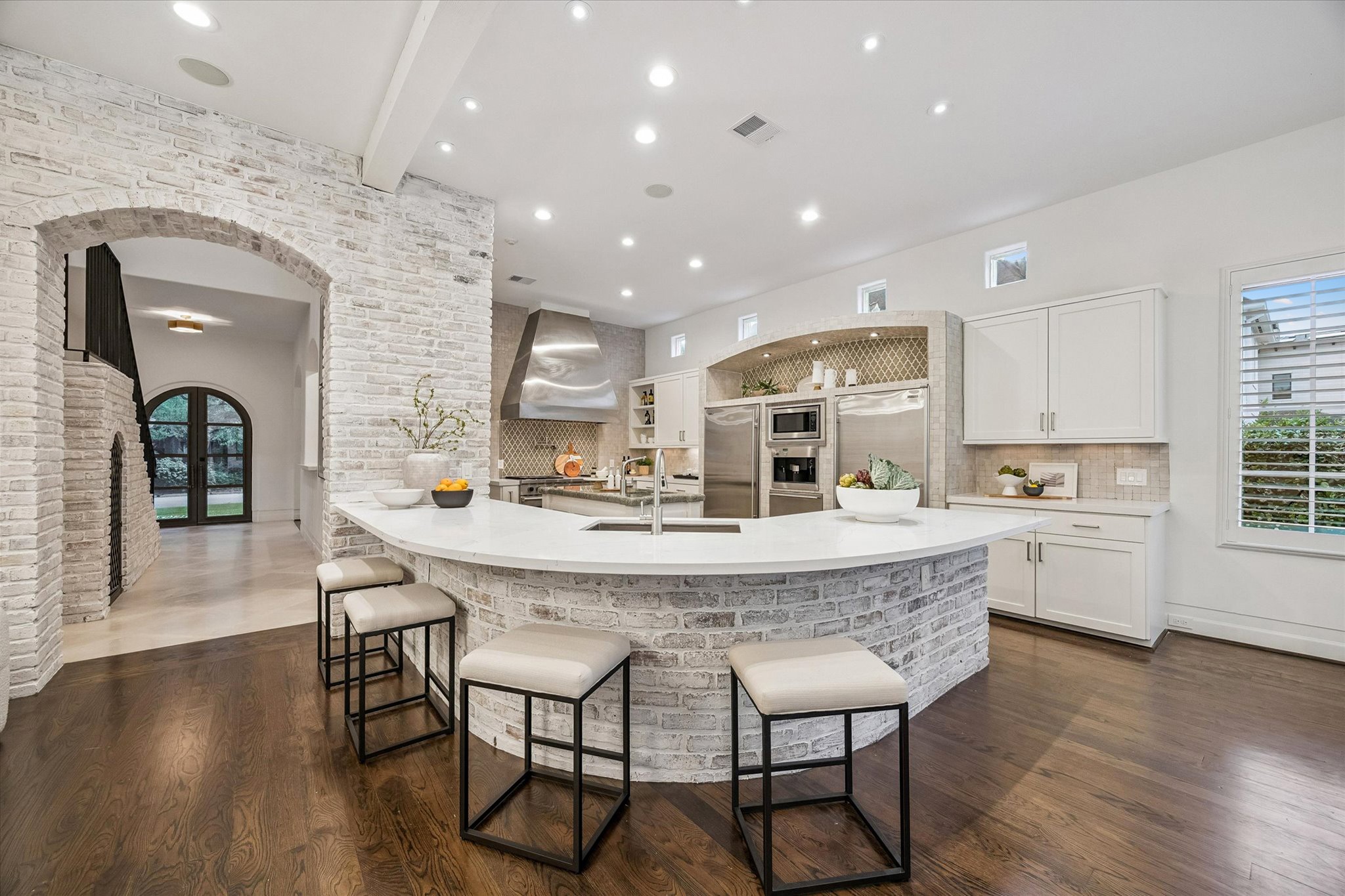 Built by Covington Builders as his personal residence for his family, this renovated Old Braeswood area home showcases exceptional craftsmanship and thoughtful design throughout. Chef’s kitchen with Sub-Zero refrigerator/freezer, Miele coffee system, two dishwashers, dual sinks, and a Wolf range pot filler. Wet bar with entertaining/serving area. FIRST-FLOOR PRIMARY SUITE opens to a covered veranda with summer kitchen and fireplace, and features two closets, steam shower, and second washer/dryer connections. Upstairs offers an expansive game room and three additional bedrooms. Detached GUEST HOUSE with living area, bedroom, and kitchen. Outdoors, enjoy a tranquil setting with lush landscaping, heated POOL/SPA, fireplace, multiple seating areas, and summer kitchen, all with ultimate privacy. Additional highlights include a wine cellar and smart home system with built-in speakers. Prime location near Rice Village, Rice University, the Medical Center, and museums. Gorgeous!