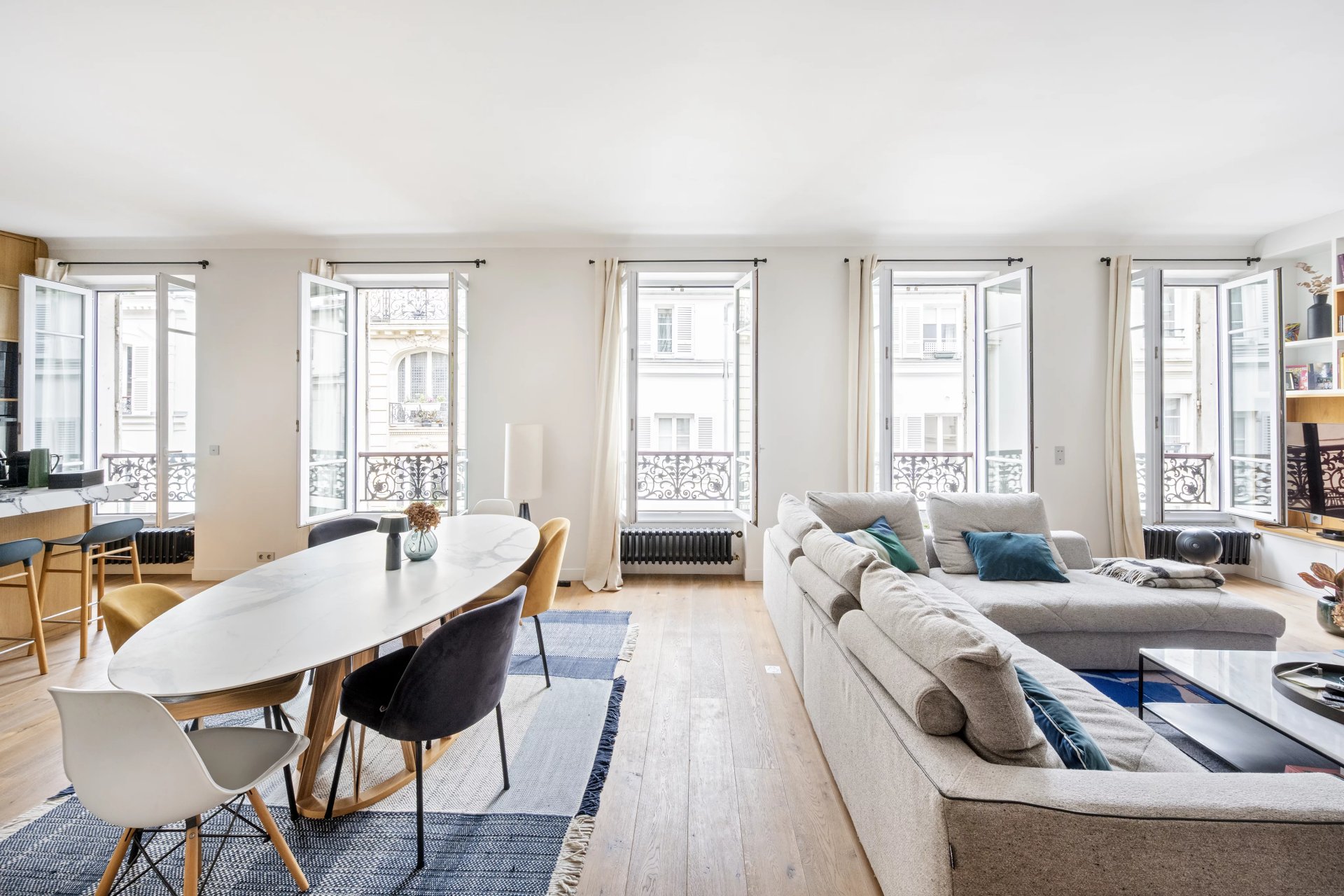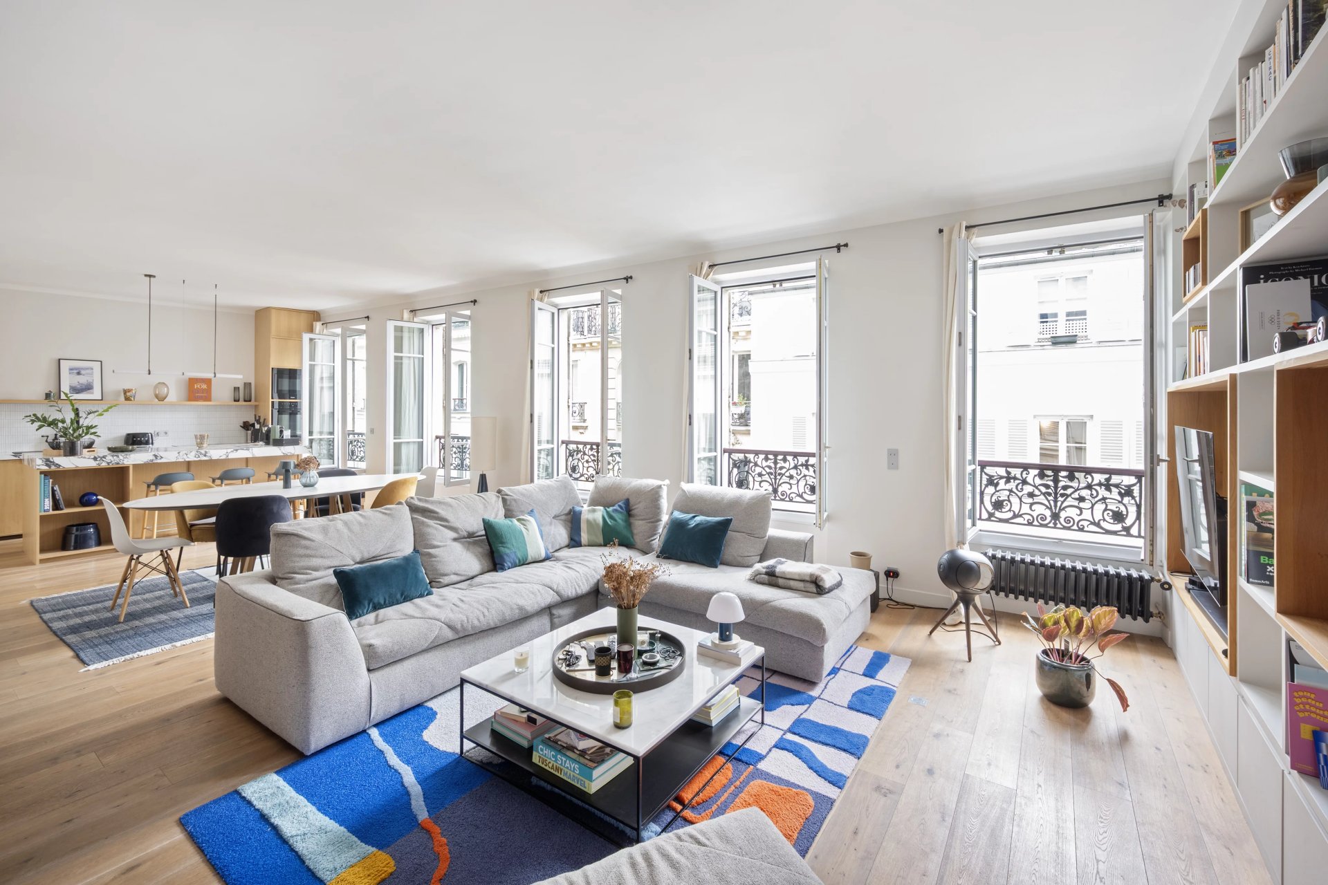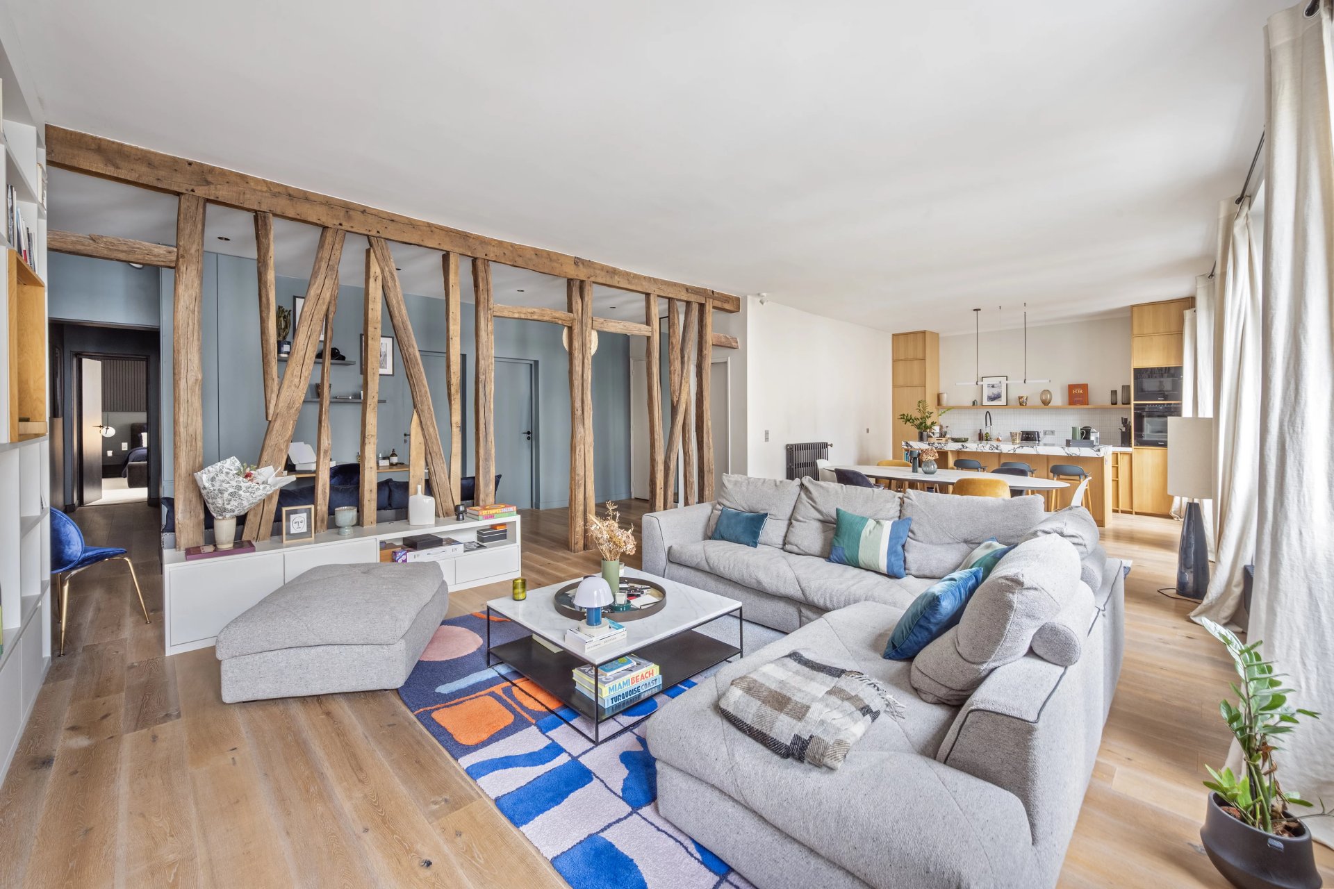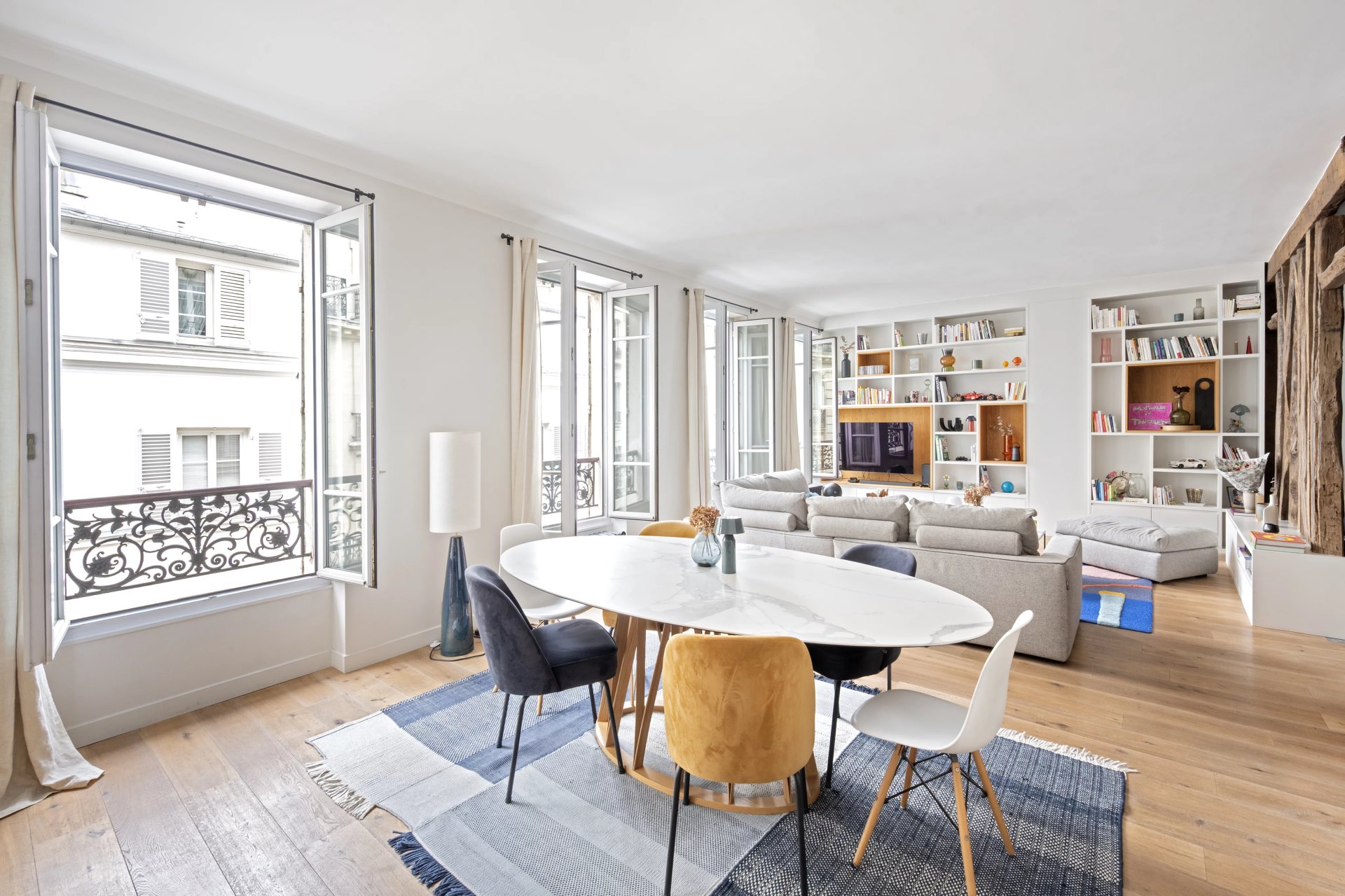 This 127.80 sqm apartment in perfect condition is on the 3rd floor of a fine mid 19th century freestone building located near the shops and the transport networks in the heart of the capital's Batignolles neighbourhood. Featuring high ceilings and bathed in sunshine, it includes a 57 sqm double living/reception room featuring half-timbering, an open-plan kitchen, a master suite with a shower room and dressing room, a second bedroom with a bathroom and wc, a utility room and a separate wc.