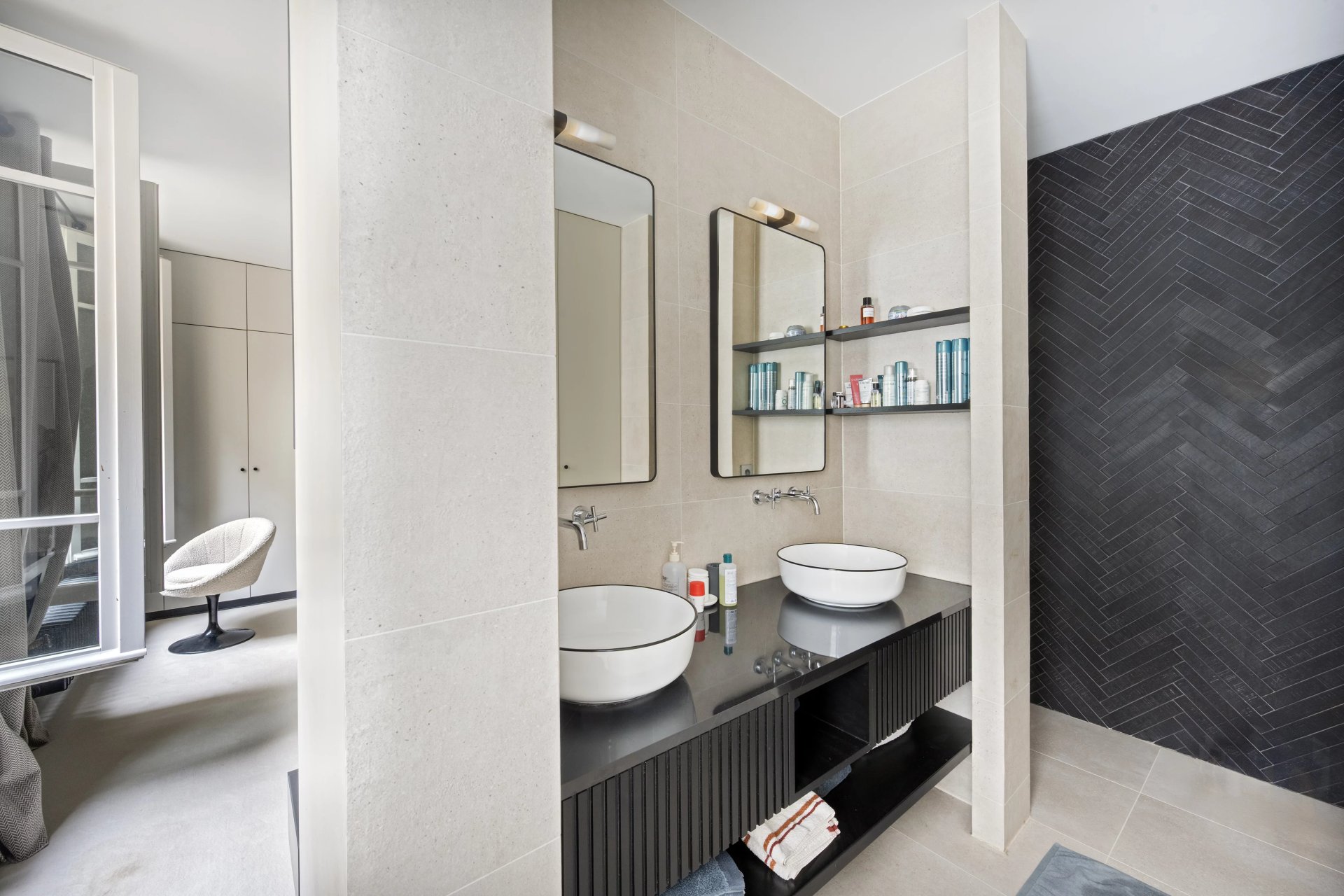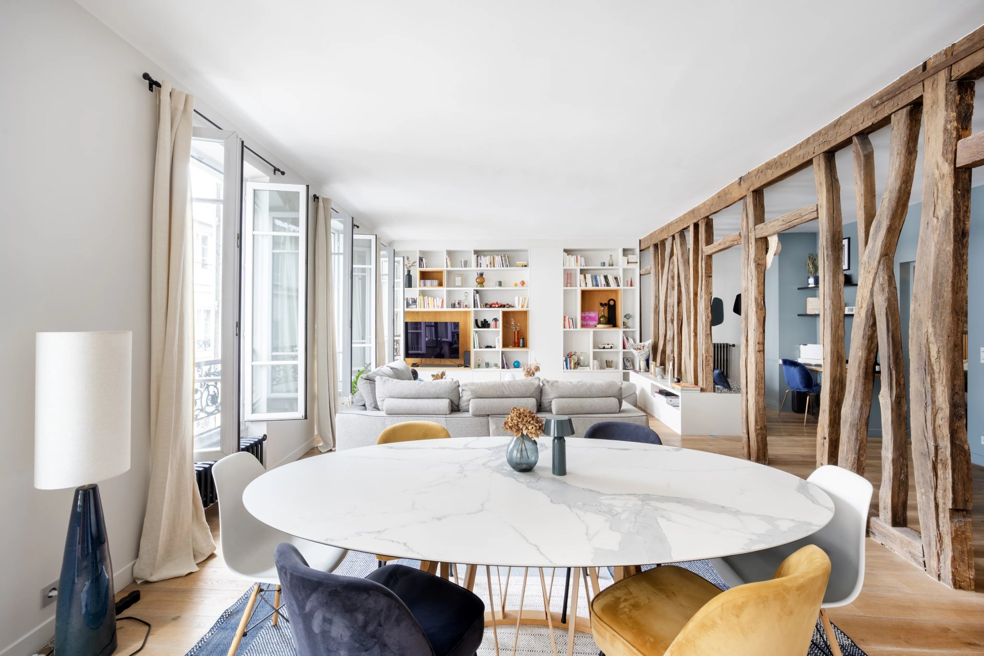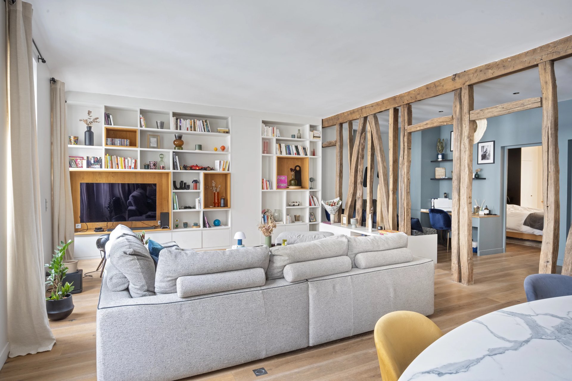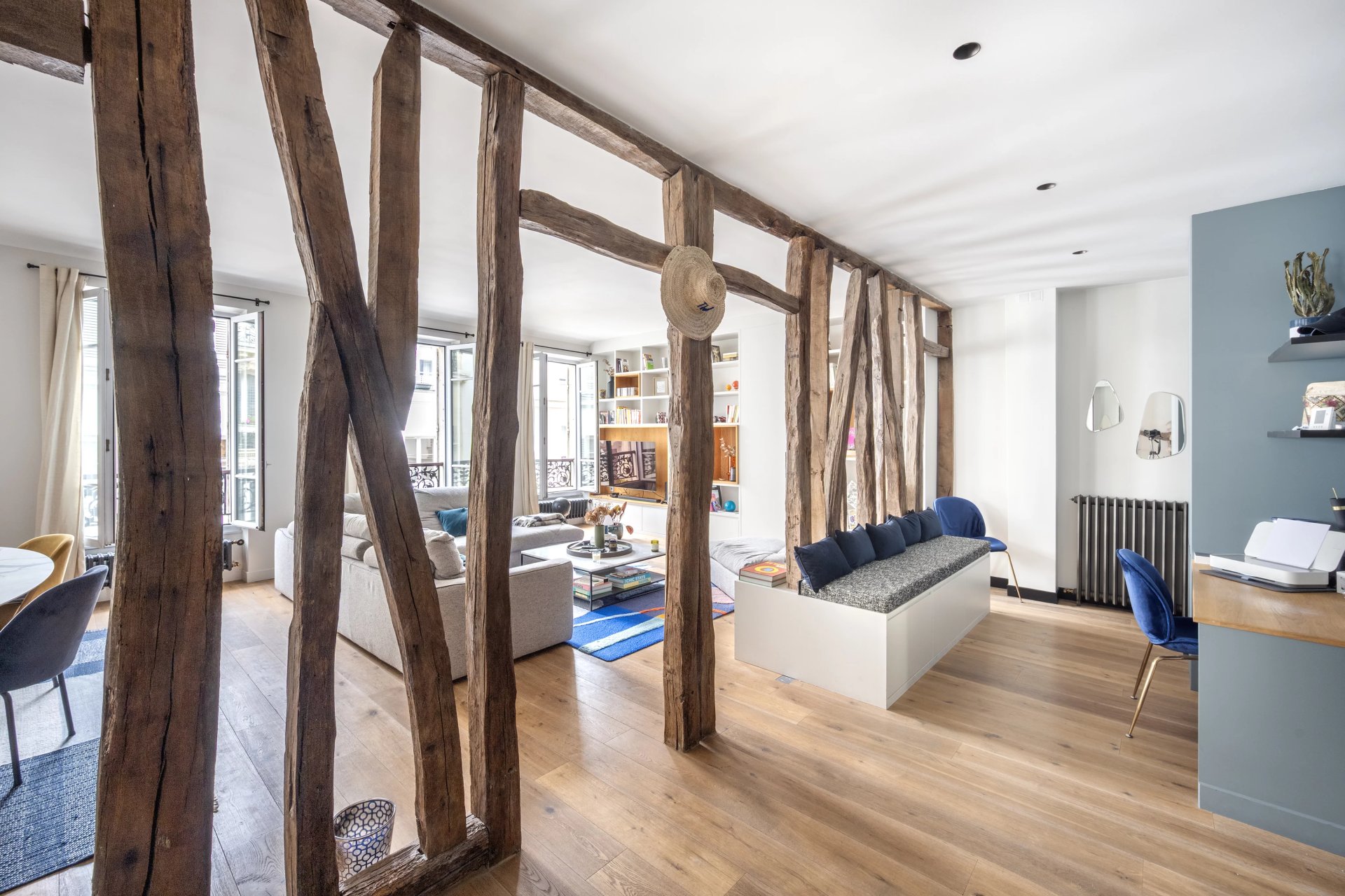 This 127.80 sqm apartment in perfect condition is on the 3rd floor of a fine mid 19th century freestone building located near the shops and the transport networks in the heart of the capital's Batignolles neighbourhood. Featuring high ceilings and bathed in sunshine, it includes a 57 sqm double living/reception room featuring half-timbering, an open-plan kitchen, a master suite with a shower room and dressing room, a second bedroom with a bathroom and wc, a utility room and a separate wc.