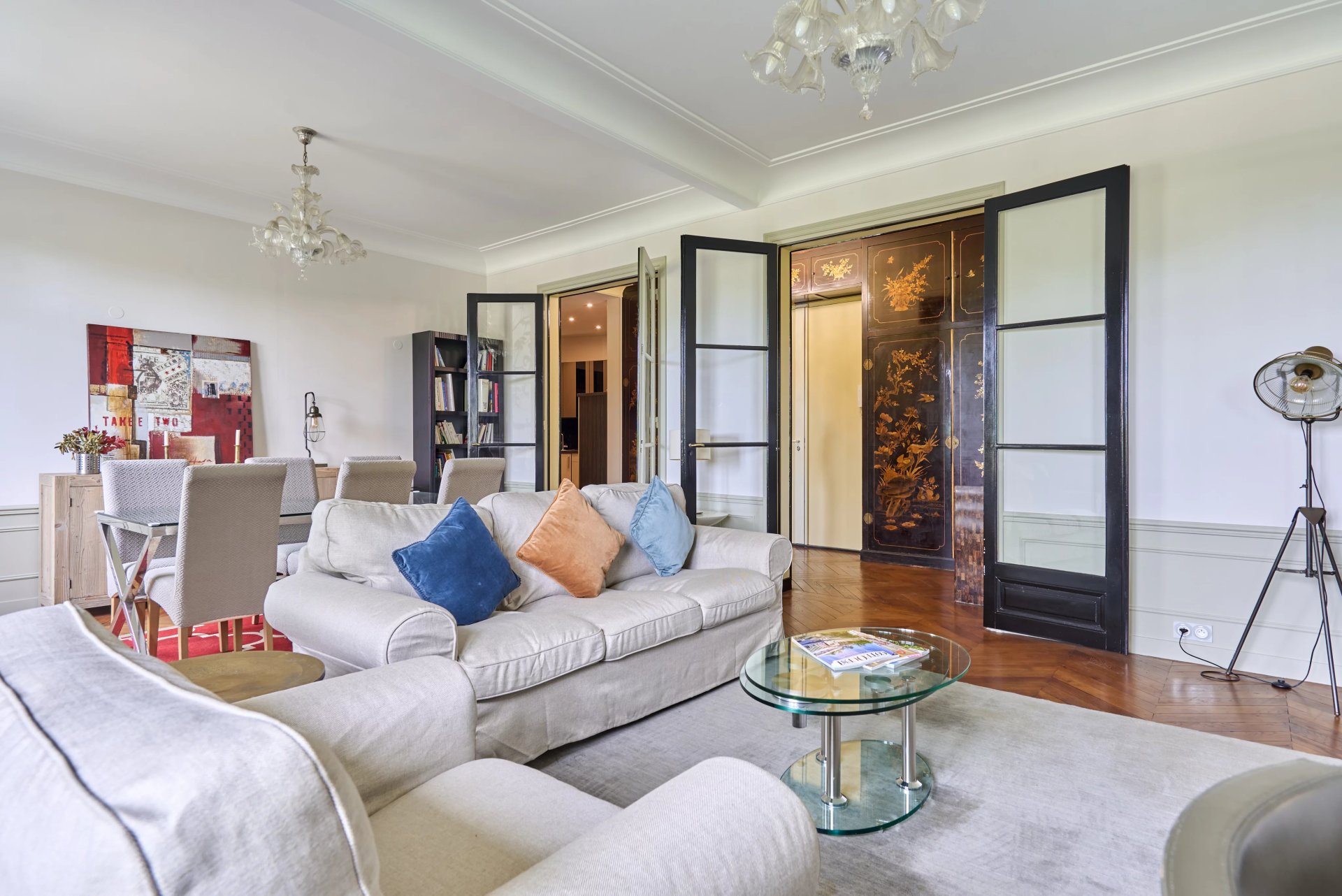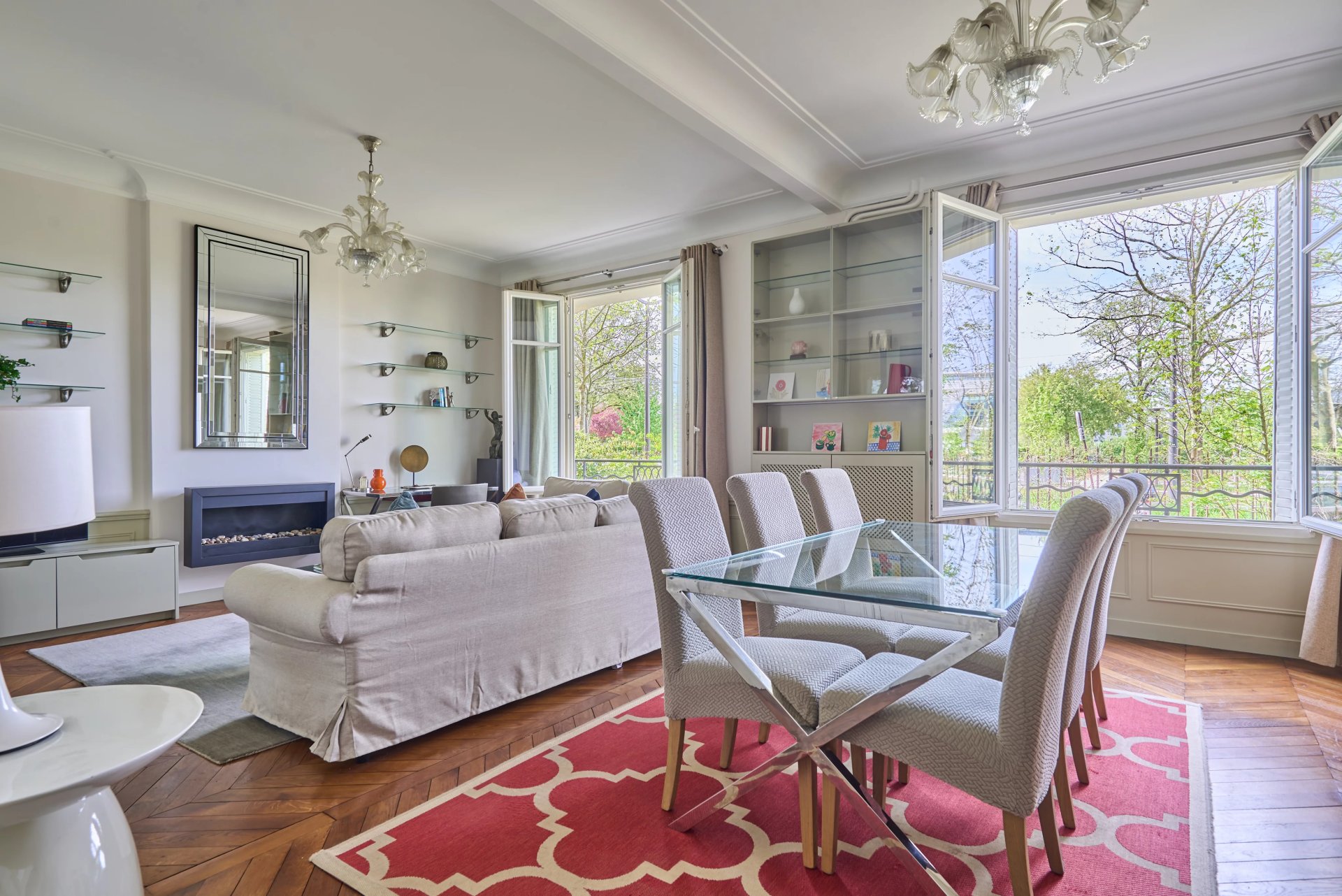 Malakoff neighbourhood, a stone's throw from Porte Maillot. This apartment on the raised ground floor of a luxurious freestone building includes an entrance hall, a double living/reception room featuring high ceilings, bathed in sunshine and enjoying open views, a master suite with a bathroom and dressing room, and a second bedroom with a shower room.