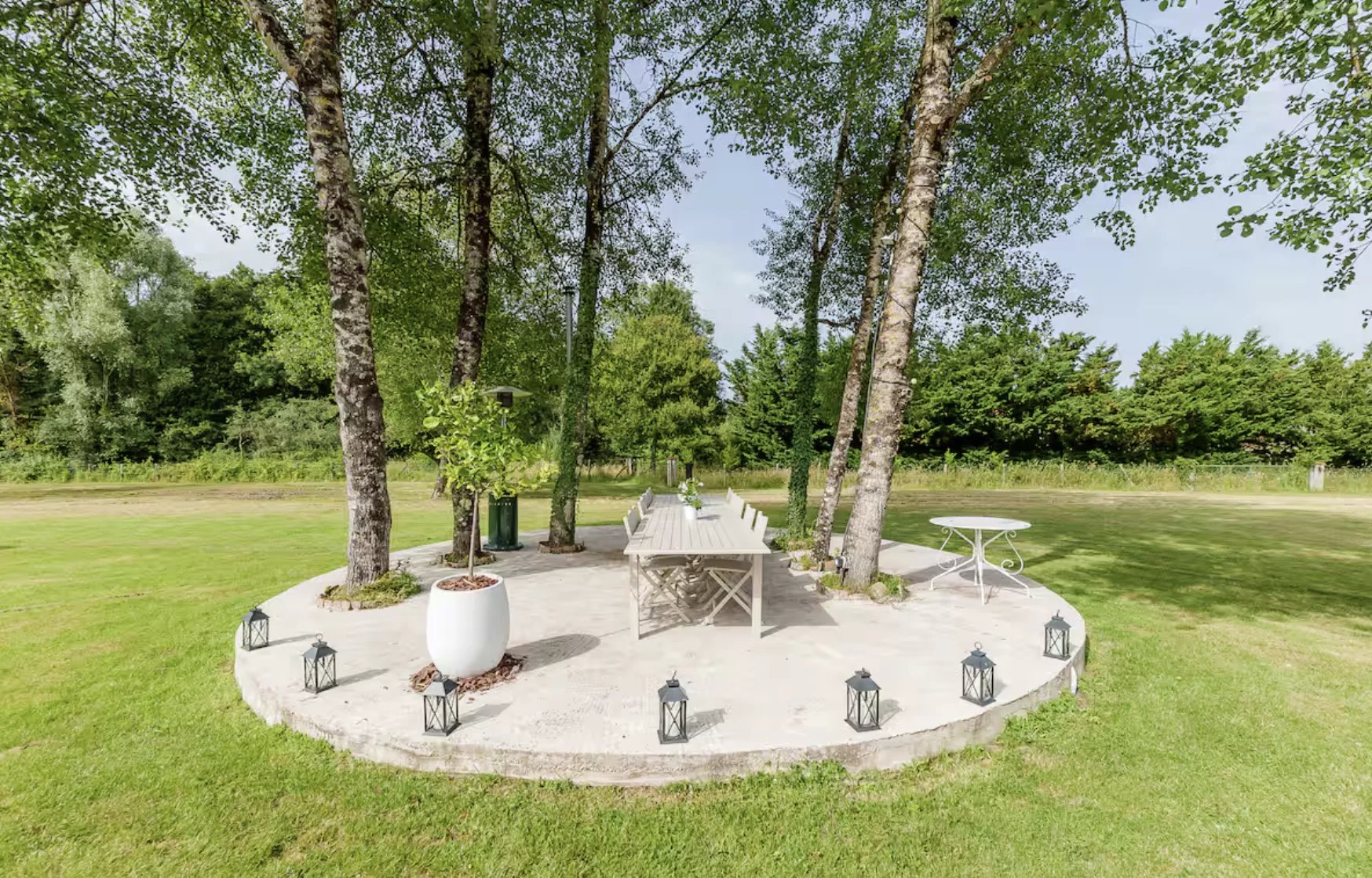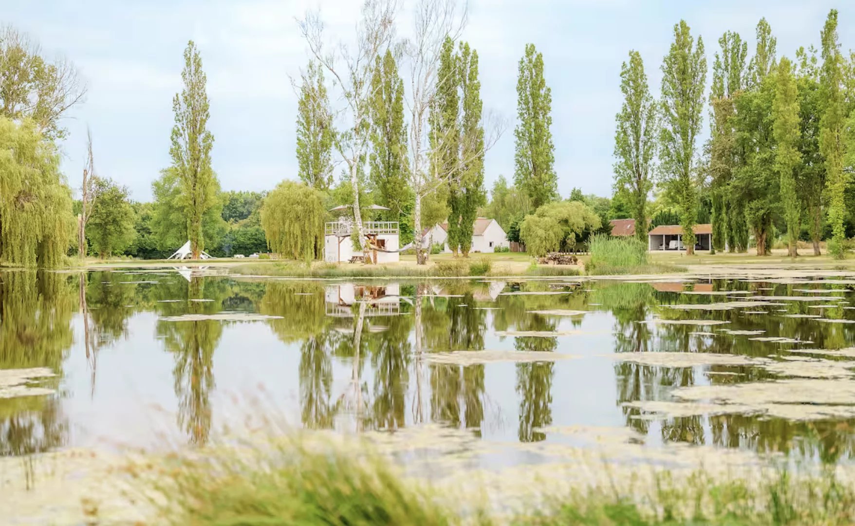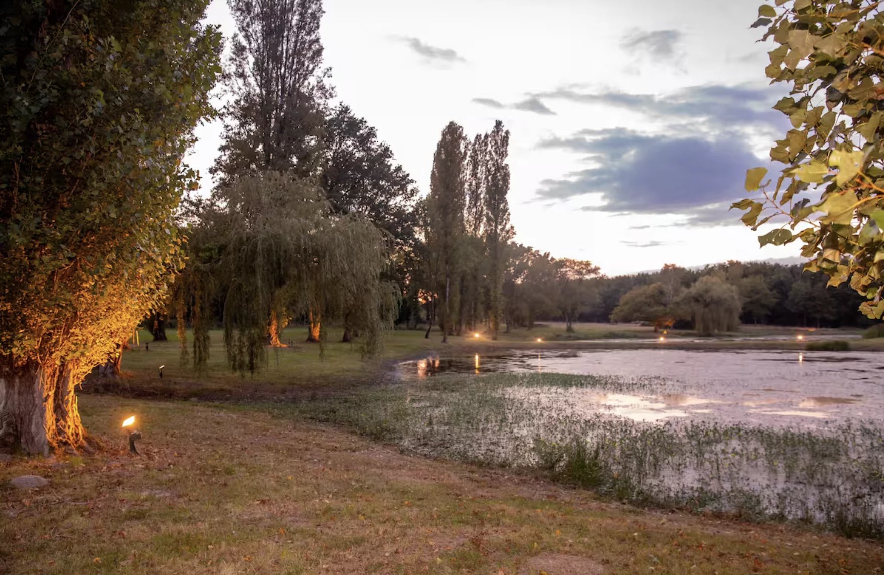 La propriété dispose de deux patios extérieurs et d'installations barbecue. La presqu'île sur l'étang constitue un espace particulièrement apprécié pour profiter du cadre naturel.