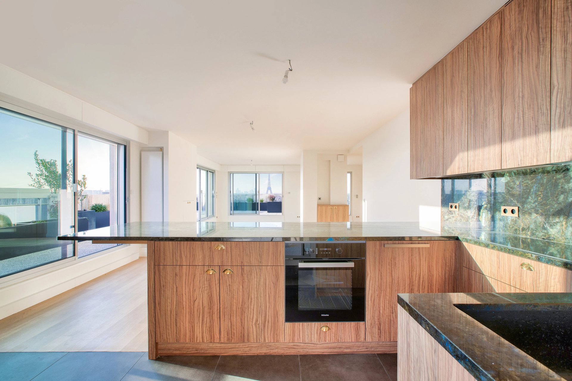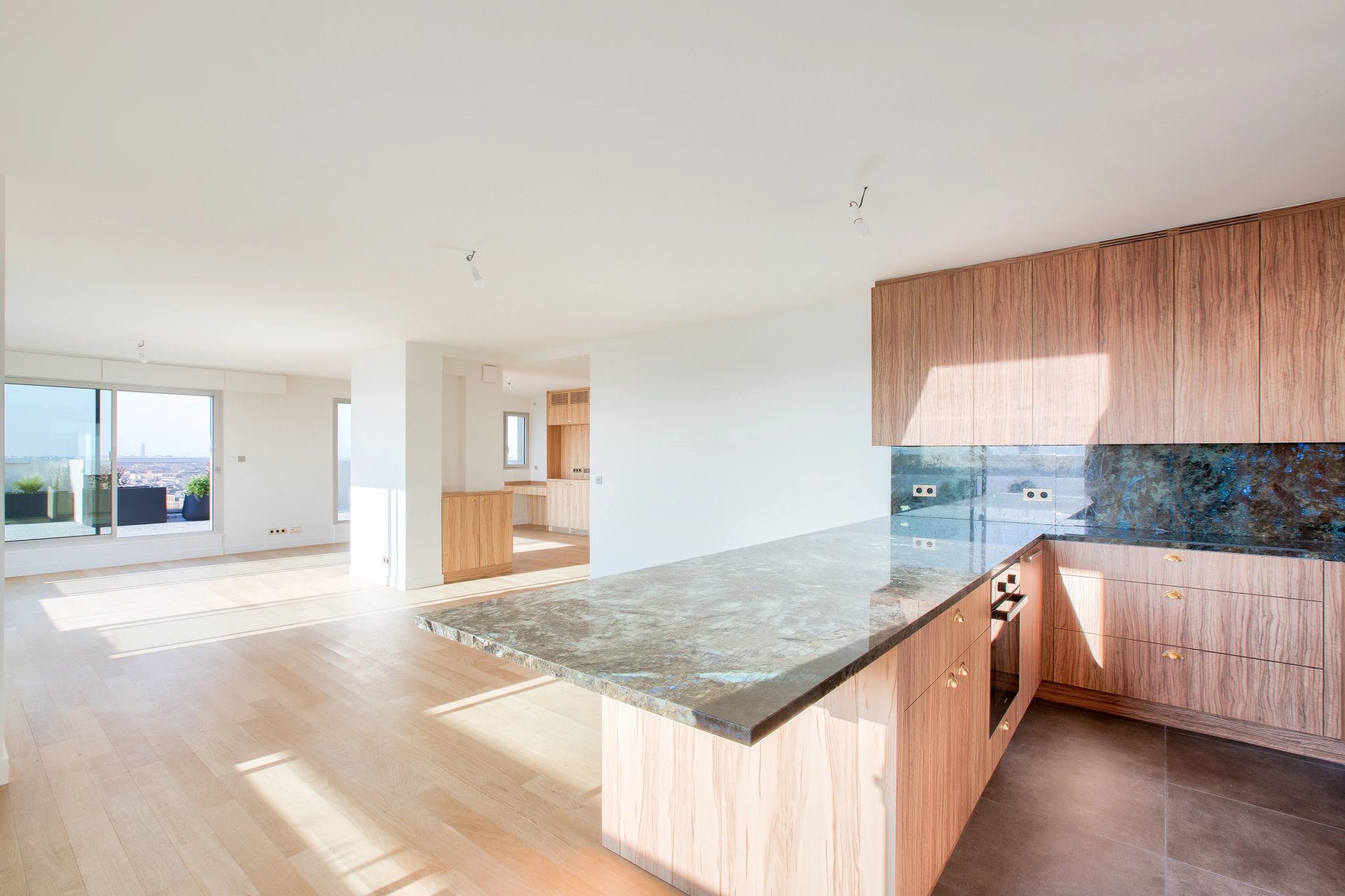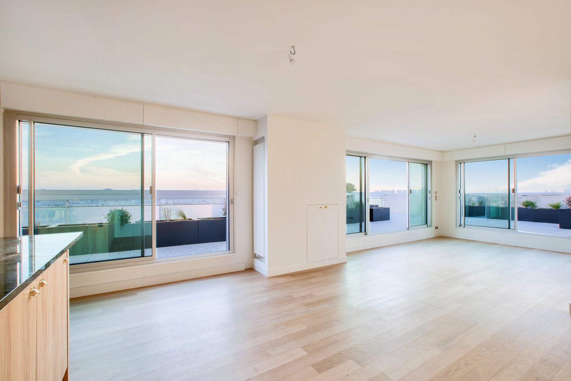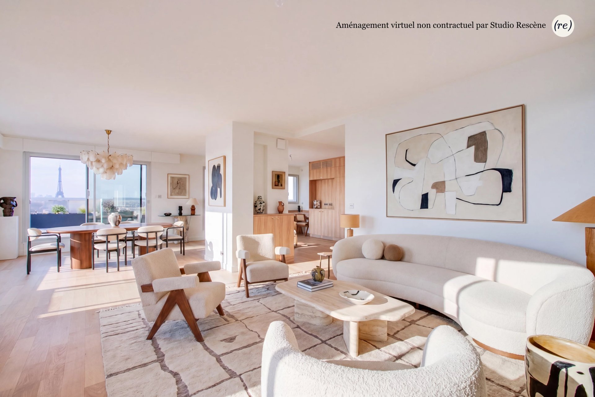 Pasteur – Falguière neighbourhood. This near 117 sqm apartment benefiting from two terraces commanding an exceptional panoramic view of the capital and its landmarks is on the 16th and top floor of a relatively recent residence with a caretaker.
