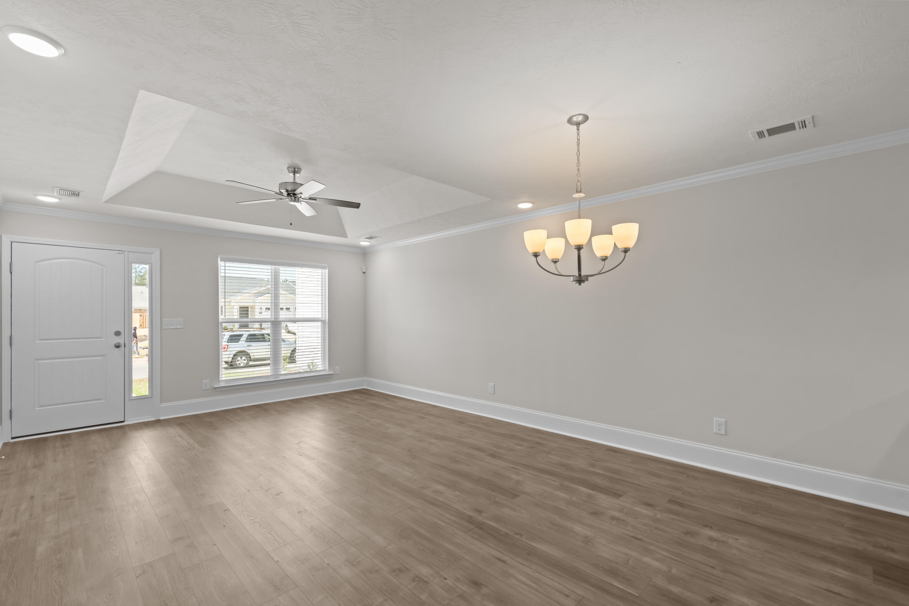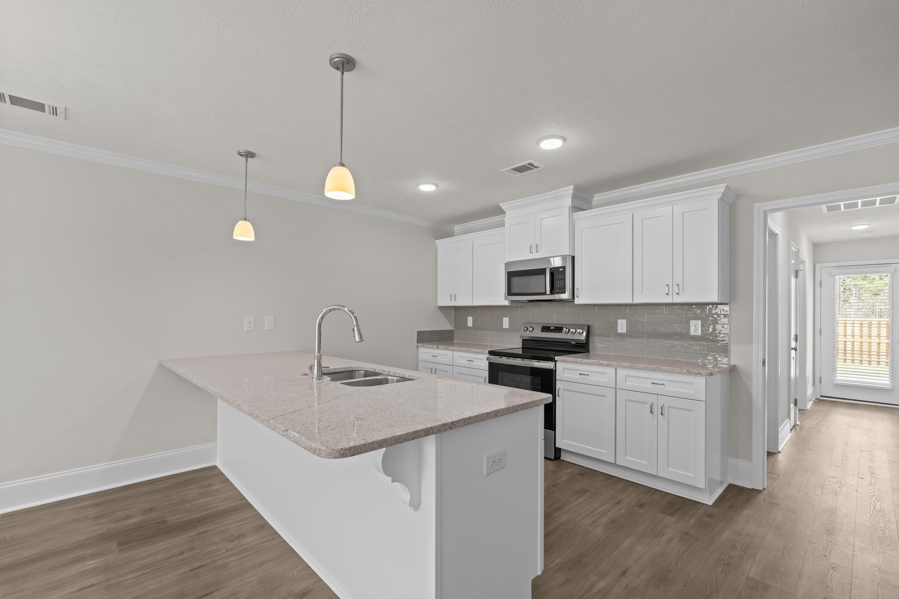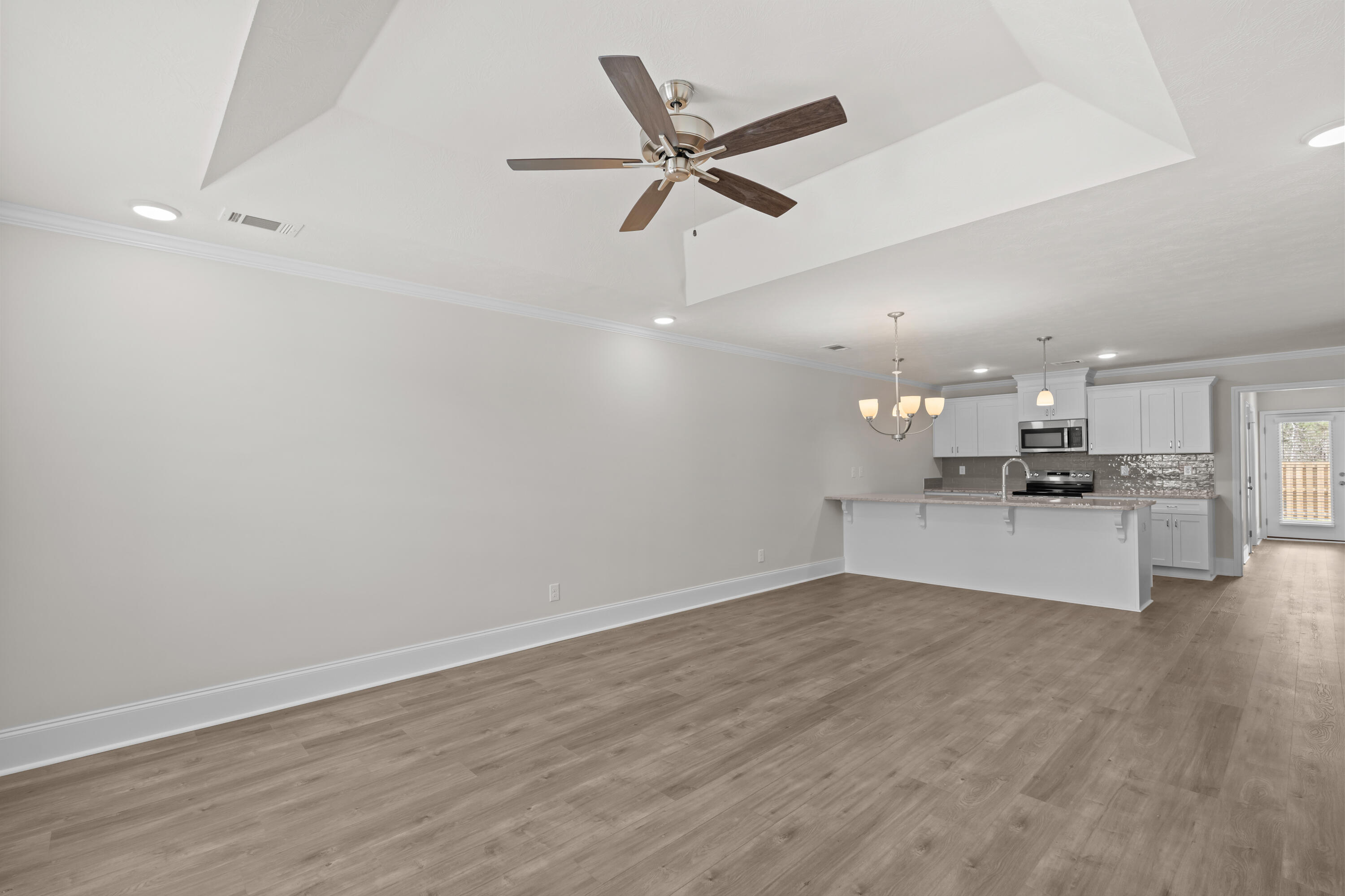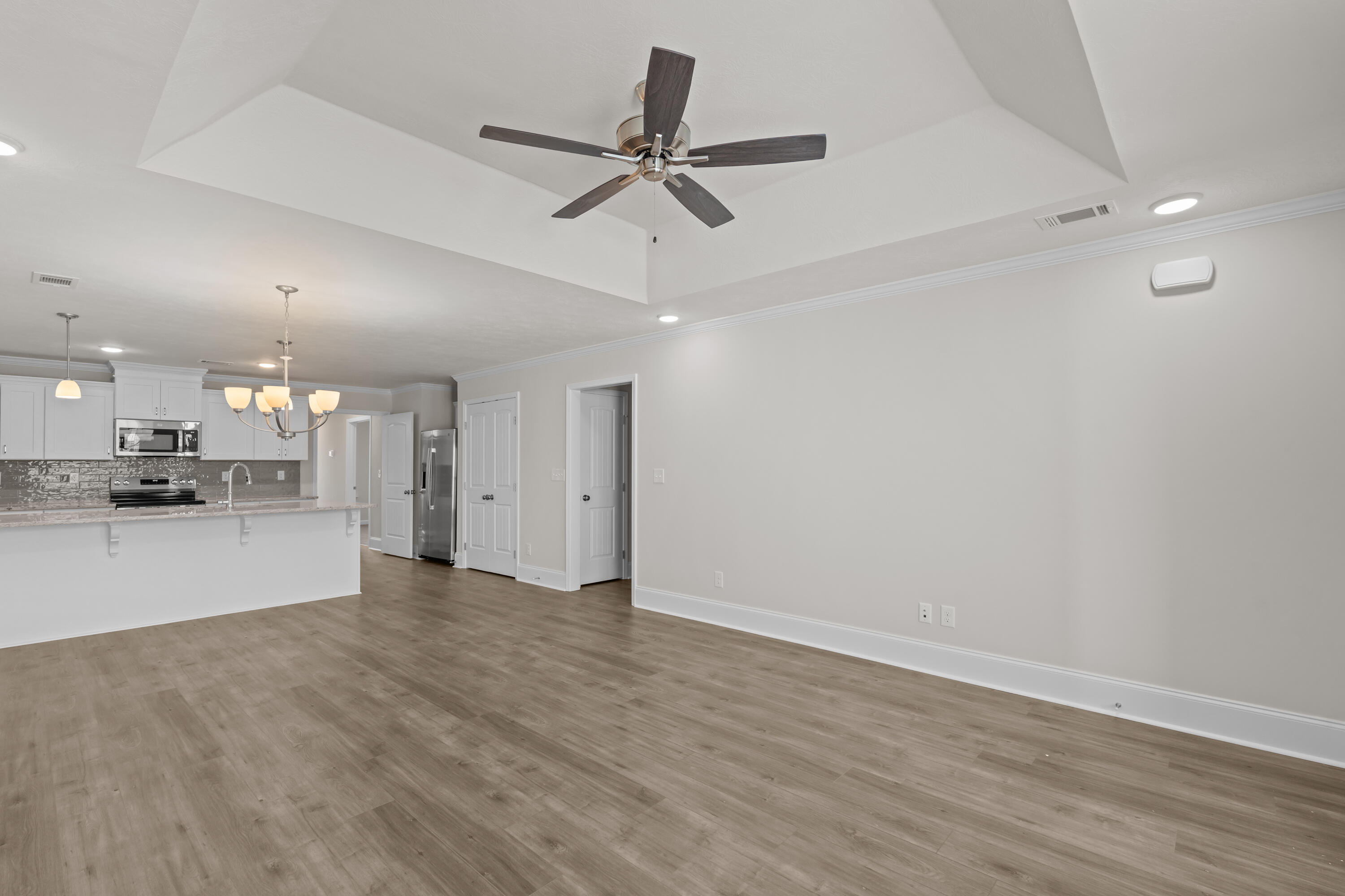 Available for immediate occupancy! New construction 2 bedroom, 2 bath townhome in Clearwater Preserve subdivision. Covered front stoop opens to open-concept floor plan with LVP flooring throughout main living area, kitchen and hallway. Living room has trey ceiling and ceiling fan; adjacent dining area with decorative lighting separates the living room and kitchen area. Kitchen with granite counters, stainless appliances, tile backsplash, breakfast bar and pantry. Hallway off dining area leads to mud area with shoe bench and coat pegs, security system, linen closet and laundry room with cupboard and hanging shelf. Door separates the living kitchen space from the hallway leading to the bedrooms/bathrooms and backyard. Primary bedroom has trey ceiling and fan. En suite bath has double sink vanity with stone counter, large walk in shower, linen closet and large walk-in closet with shoe rack. 2nd bedroom with double door closet. Hall bath with single sink vanity and tub/shower combo. Covered rear porch with extended patio and privacy fenced backyard. #goodtoask