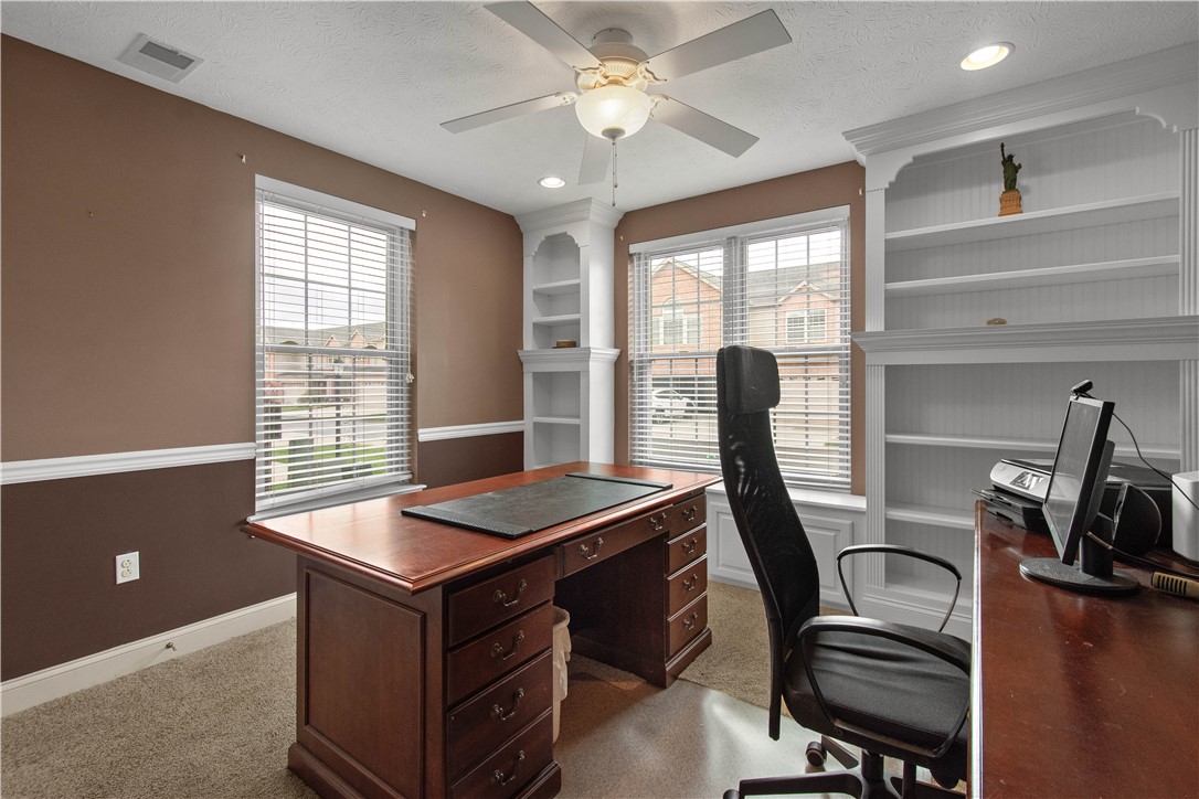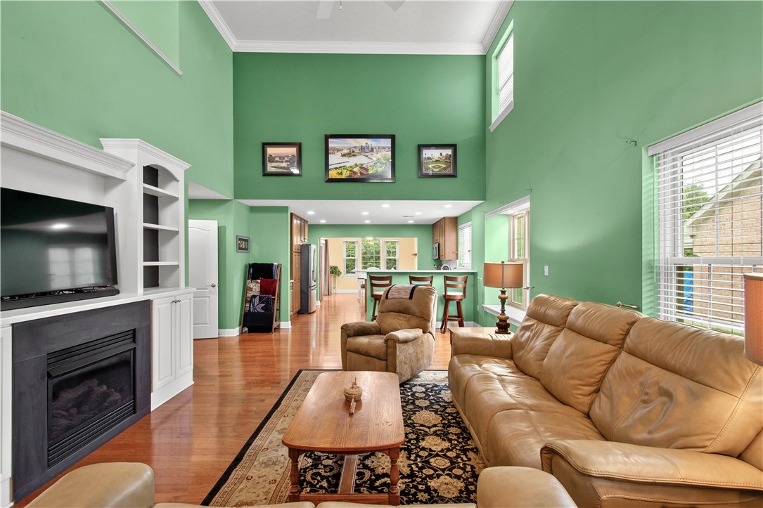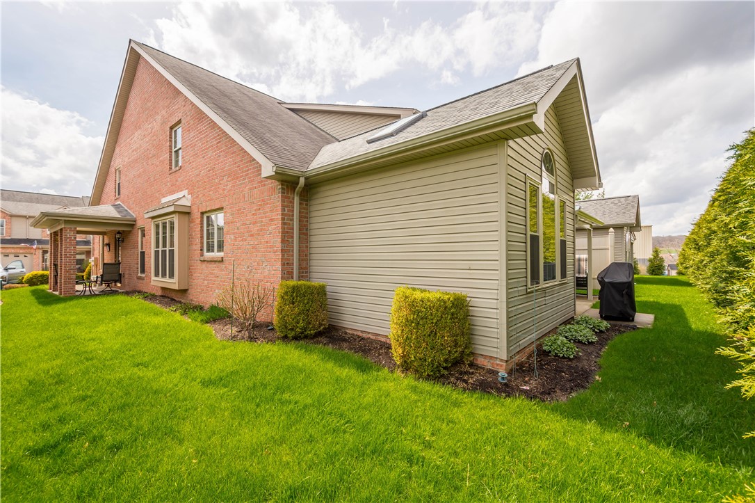 Experience the height of low-maintenance living in the prestigious Hill Station Manor patio home community, perfectly situated in Cecil Township, with quick access to I-79 and PA 576, making your commute effortless. As a desirable END-UNIT, this Laurel Hill floor plan home feels exceptionally private and bright. The heart of the residence is the soaring, front-to-back great room, where gleaming hardwood floors and vaulted ceilings create a grand sense of space. Adding a touch of warmth and charm, the great room features a stylish electric fireplace anchored by custom-built-ins. The main floor features the desirable primary suite, complete with a massive walk-in closet, and a spa-like ensuite featuring dual sinks and a glass-enclosed ceramic tile shower. with a built-in bench. The upgraded kitchen is a chef's delight, boasting new Quartz countertops, stainless steel appliances and a high-top breakfast bar designed for casual meals. A dedicated front den offers a quiet sanctuary for a home office, while the main-level laundry room - outfitted with custom cabinetry - connects directly to the two-car garage for ultimate convenience. Step through the sunlit breakfast area with vaulted ceiling to your private patio, with Bright Covers permanent awning, an ideal spot for morning coffee or evening cocktails in a peaceful, quiet setting. The second floor is perfectly designed for guests or hobbies with two oversized bedrooms, each featuring its own walk-in closet. A large, open loft overlooks the great room below, great for a second home office, gym or a pull-out sofa for additional sleeping arrangements or play space when the grandkids are in town. A full bath and a large walk-in storage room complete the second floor. The newer Pella windows, updated carpet in the primary bedroom and den, new hot water heater (2026), furnace, and air conditioner are additional noteworthy features. 3012 Laura Lane isn't just a house; it's an invitation to enjoy a simplified, stylish lifestyle in one of Cecil's most sought-after neighborhoods.