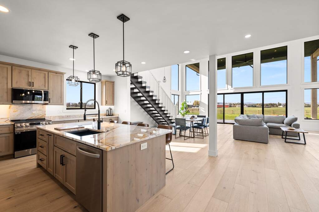 Be the first to own this newly constructed barndominium set on a spacious 2-acre lot! The home features 4 bedrooms, 3 bathrooms, and 3,200 sq ft of living space, plus an impressive 1,200 sq ft heated shop/garage with extra parking. Ideally positioned for future expansion, presenting an excellent opportunity for those looking to build a second shop or barn, add a home occupation, guest house, or short-term rental, plus space for horses! With R-1 zoning and minimal covenants, the possibilities are wide open. Inside, enjoy custom finishes, expansive windows, mountain views, and a huge covered patio. The home is also pre-wired for a hot tub, adding to its comfort and appeal.