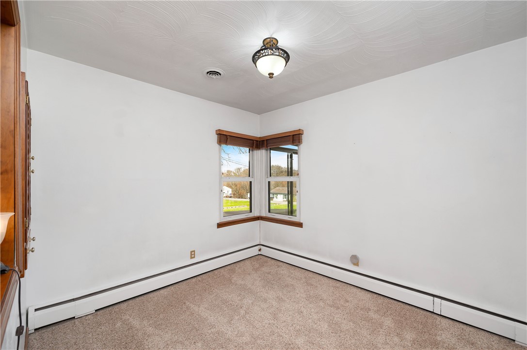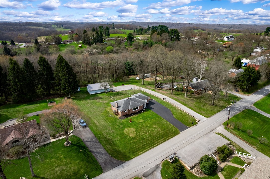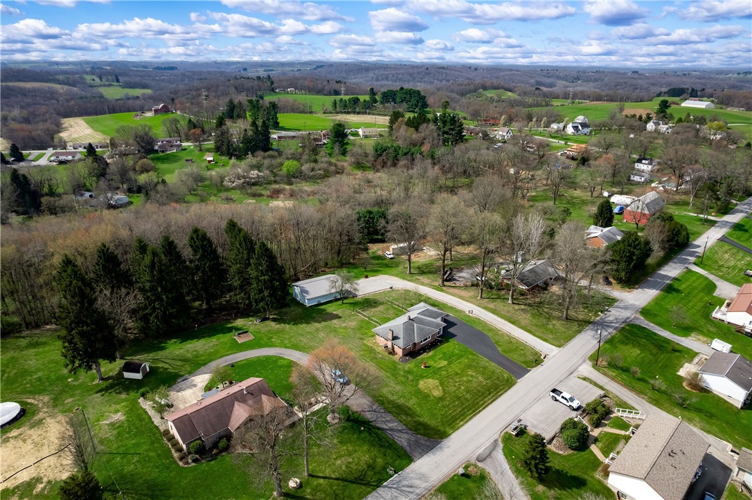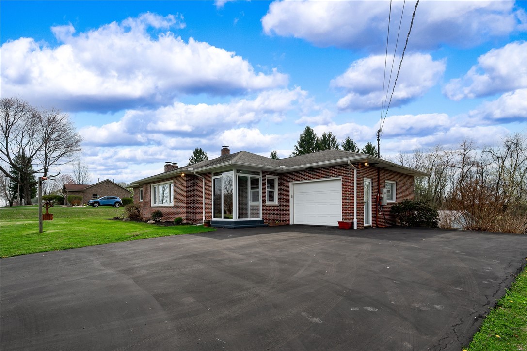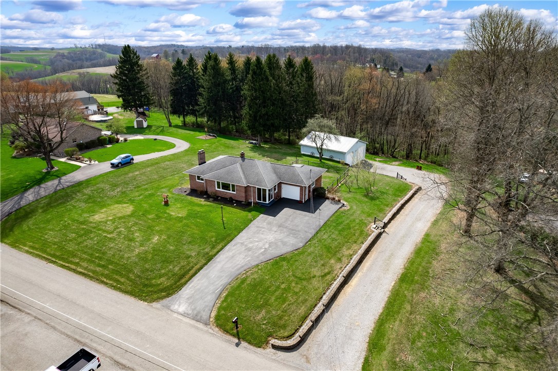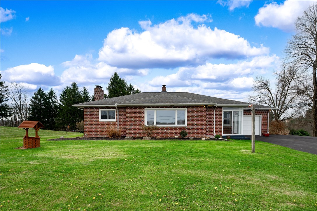 This is your lucky day, homes like these are few and far between, welcome home! This all brick ranch style home has so many valuable updates, incredibly well maintained and wait until you see the 36x40 detached heated garage, all perfectly positioned on nearly an acre with great views! Inside the home showcases plaster walls and ceilings, solid wood doors with matching baseboard trim, triple pane windows, new main bathroom remodel (2026), new carpet (hardwood under carpet in the bedrooms), newer well (2016), new central air (2021), whole house Generac generator (2022), custom kitchen cabinetry, stainless appliances, granite counters in the kitchen, new metal roof on the detached garage and shed (2022), enclosed front porch (2022) which adds a comfortable versatile space for relaxing, new rear patio roof/outdoor railings/new landscaping (2025)! The home also benefits from a private community natural gas service (McDevitt Gas Company) offering an incredibly low average gas bill (approximately $35 per month) which is heating the detached garage year long! The finished walk-out lower level expands the living space with a generous family room featuring a stone fireplace, built-in bar, full bathroom, kitchenette area and the possibility of a 4th bedroom (great potential for an in-law suite). A storage area for canning/possible wine cellar and spacious dedicated workshop with exterior door complete the lower level. This home features the perfect blend of hot water heat and a completely separate central air system providing efficient heating and cooling. A partially fenced rear yard is ready for the family pet, fruit trees, separate detached garage driveway, yard stairs with railing and shed compliment this wonderful property. The showpiece of the property is the detached garage and is truly a garage lovers dream! This garage/shop is equipped with Reznor radiant heat, water and water heater, utility sink, compressor wiring and large RV height overhead door (14' interior ceiling height), new man door, metal roof and dedicated garage driveway! This meticulously maintained property offering quality construction, extensive upgrades, a heated garage/workshop, coupled with the convenient Butler location, low traffic cul-de-sac street and nearly an acre makes this an exceptional home and ready for the next proud owner!