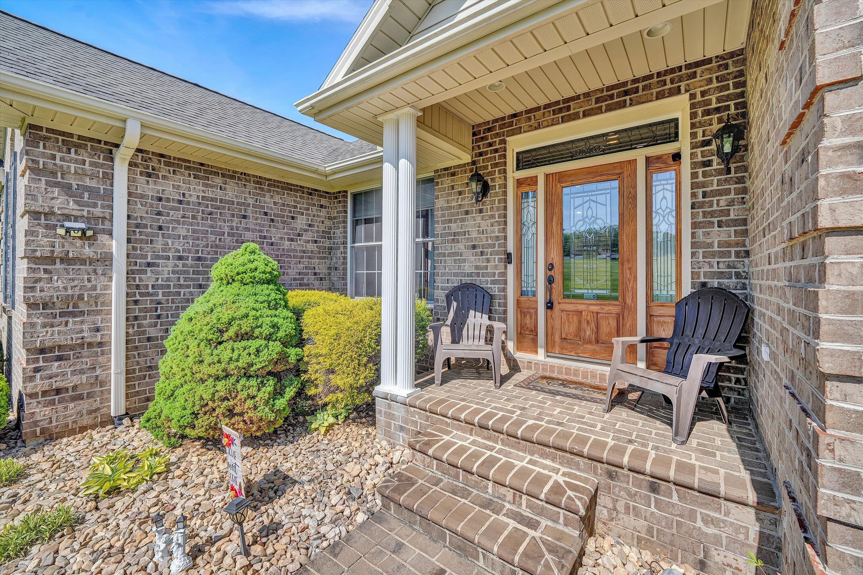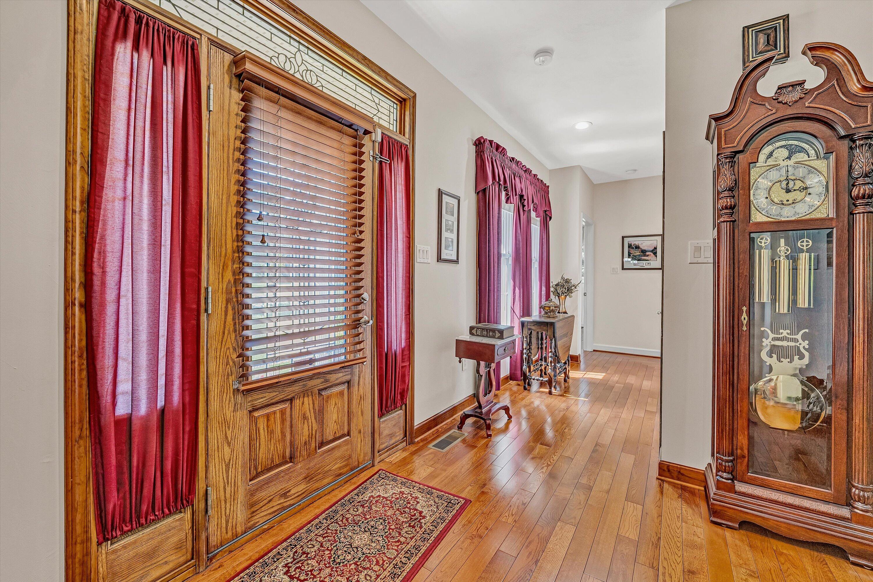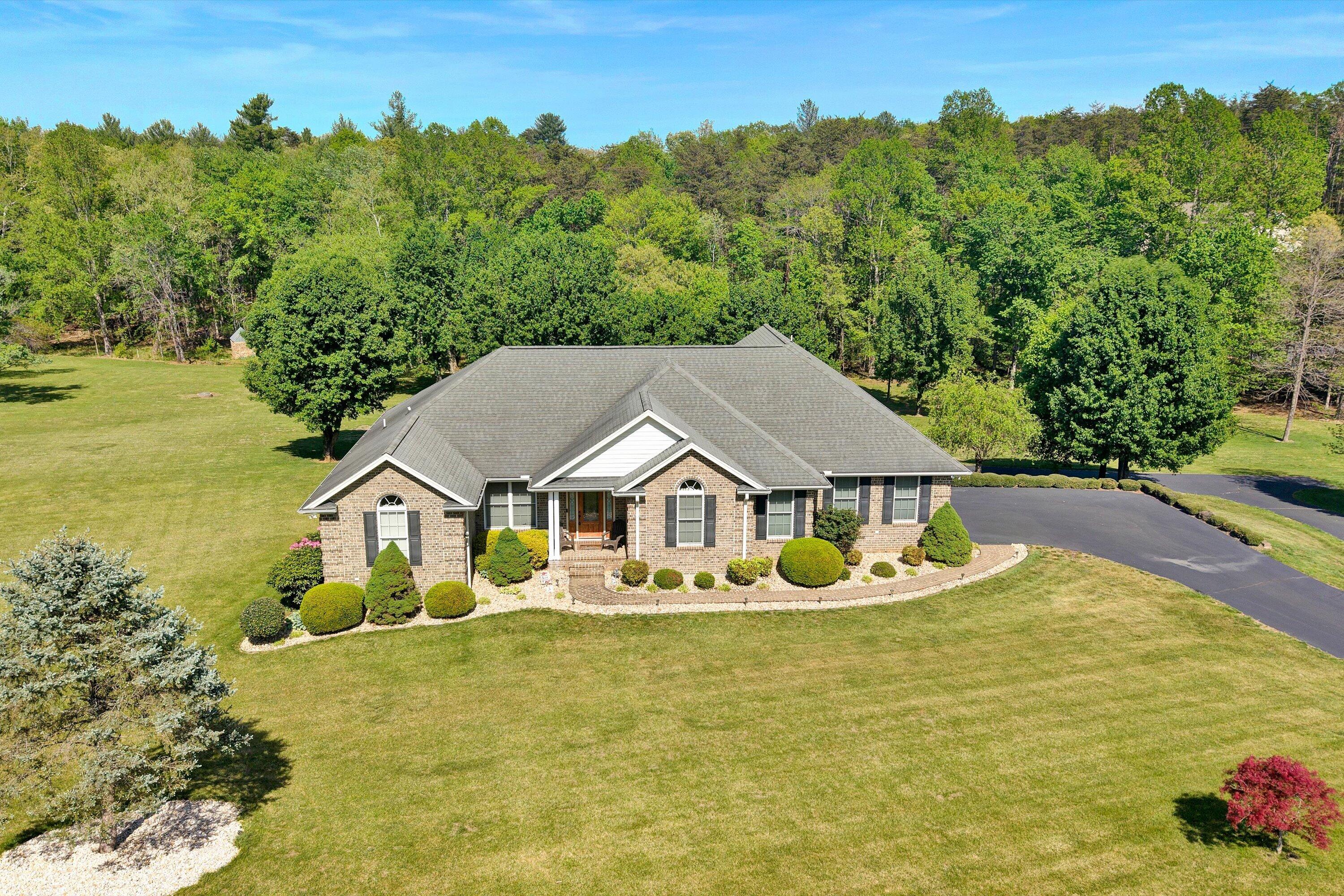 Custom-built brick home in a peaceful setting with easy access to Roanoke and Smith Mountain Lake. Quality craftsmanship throughout with open-concept living, oak hardwood floors, and a masonry fireplace (gas logs). Spacious kitchen features custom hickory cabinets, granite countertops, and large island. Main level offers two primary suites, an additional bedroom, and full bath. Lower level includes private suite, large family/rec room with kitchenette, and added living space--ideal for multi-generational living. Enjoy outdoor spaces with deck and stamped concrete patio. Property allows horses and includes whole-house Generac generator with in-ground propane tank.