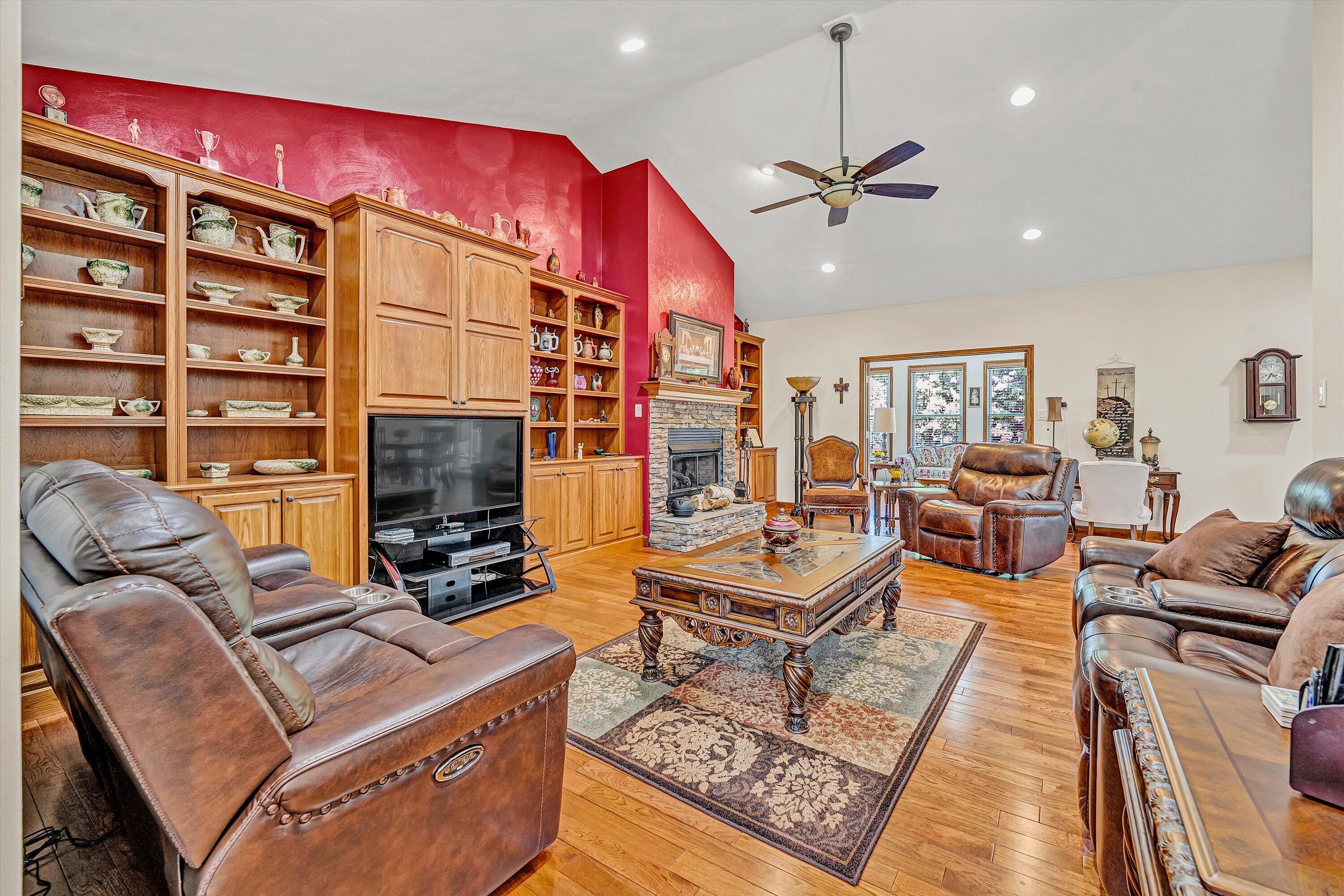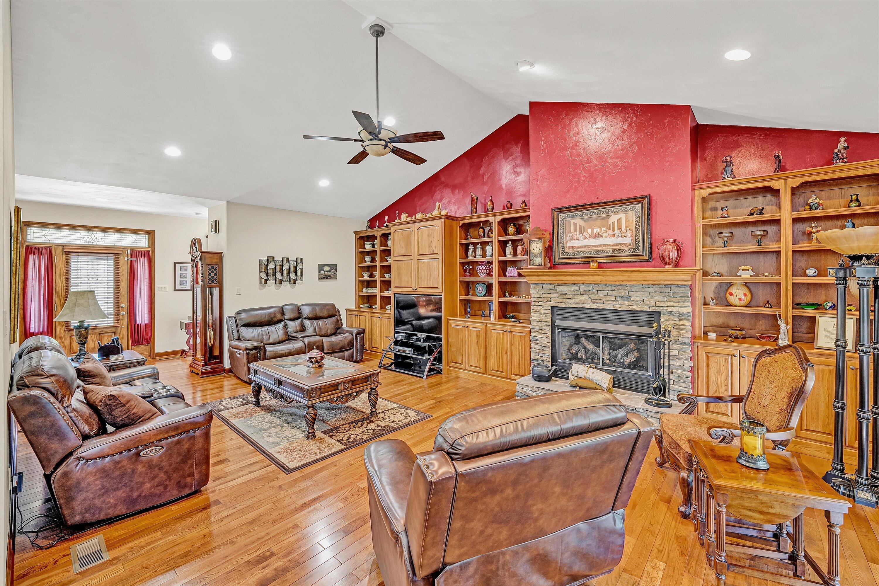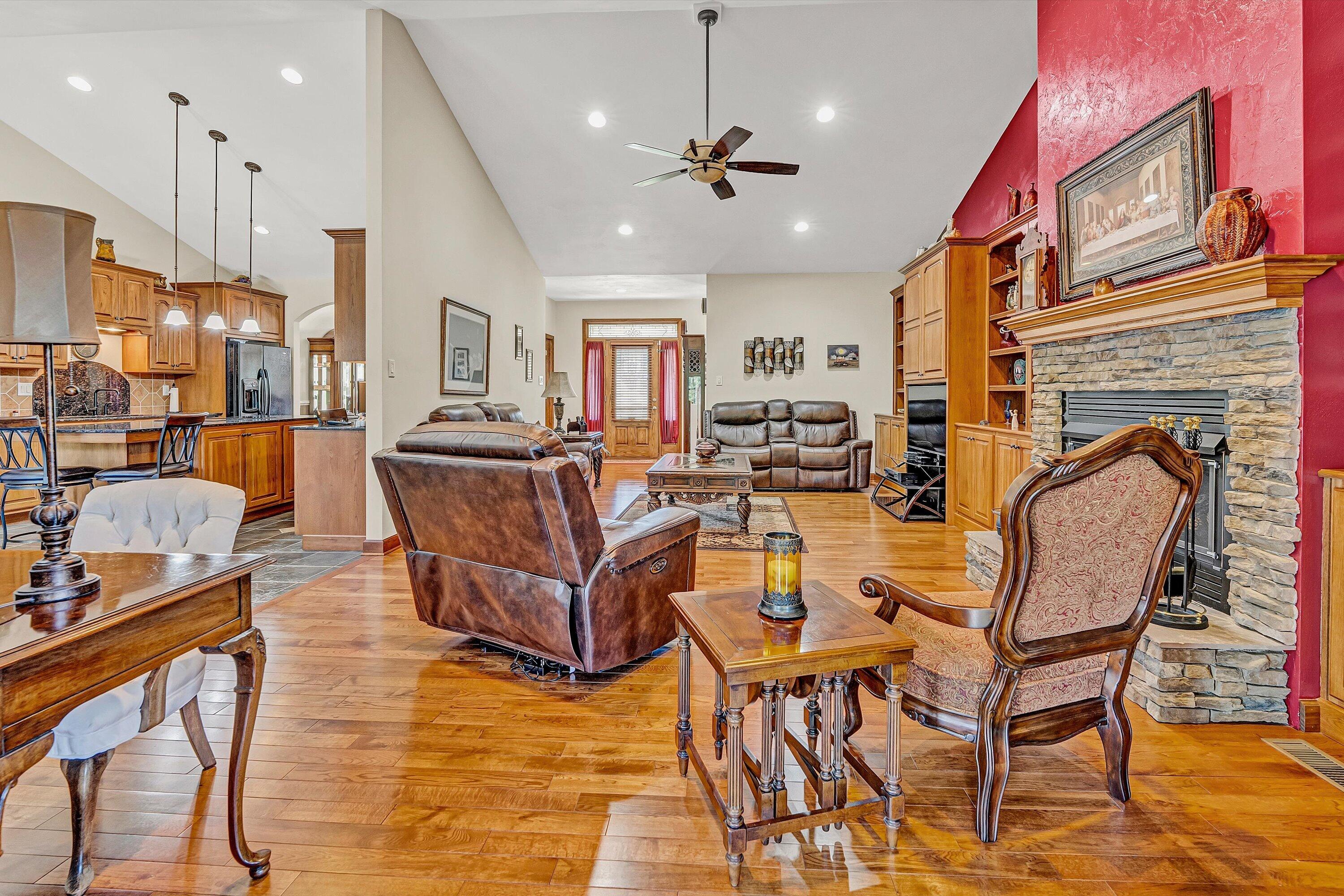 Custom-built brick home in a peaceful setting with easy access to Roanoke and Smith Mountain Lake. Quality craftsmanship throughout with open-concept living, oak hardwood floors, and a masonry fireplace (gas logs). Spacious kitchen features custom hickory cabinets, granite countertops, and large island. Main level offers two primary suites, an additional bedroom, and full bath. Lower level includes private suite, large family/rec room with kitchenette, and added living space--ideal for multi-generational living. Enjoy outdoor spaces with deck and stamped concrete patio. Property allows horses and includes whole-house Generac generator with in-ground propane tank.