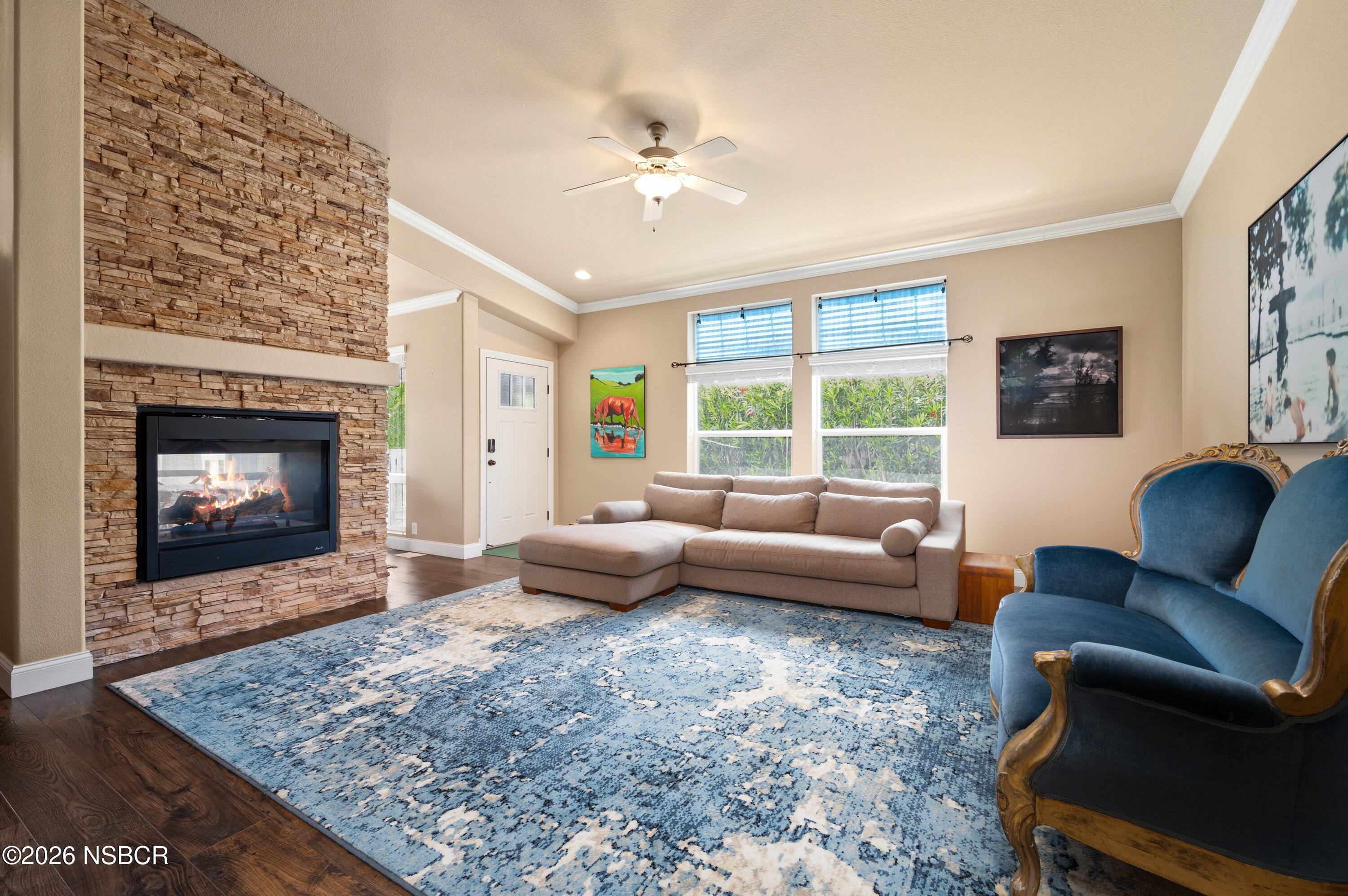 Beautiful 3 bedroom, 2 bath home overlooking the green belt and out to the Santa Ynez River, set within one of Solvang's sought-after 55+ communities, offering a comfortable layout and access to exceptional on-site amenities. The living and dining rooms are anchored by a two-way fireplace, creating a warm and inviting setting for both everyday living and entertaining. The kitchen is well-appointed with a large center island, granite countertops, walk-in pantry, and double dishwashers, designed for both function and ease. The primary suite offers a walk-in closet and a spacious bath with a jacuzzi tub. Additional bedrooms provide flexibility for guests, a home office, or hobbies. Residents enjoy access to a beautifully maintained community featuring a 9-hole golf course, pool, spa, bocce ball court, and landscaped grounds, supporting a relaxed and active lifestyle in the heart of the Santa Ynez Valley.