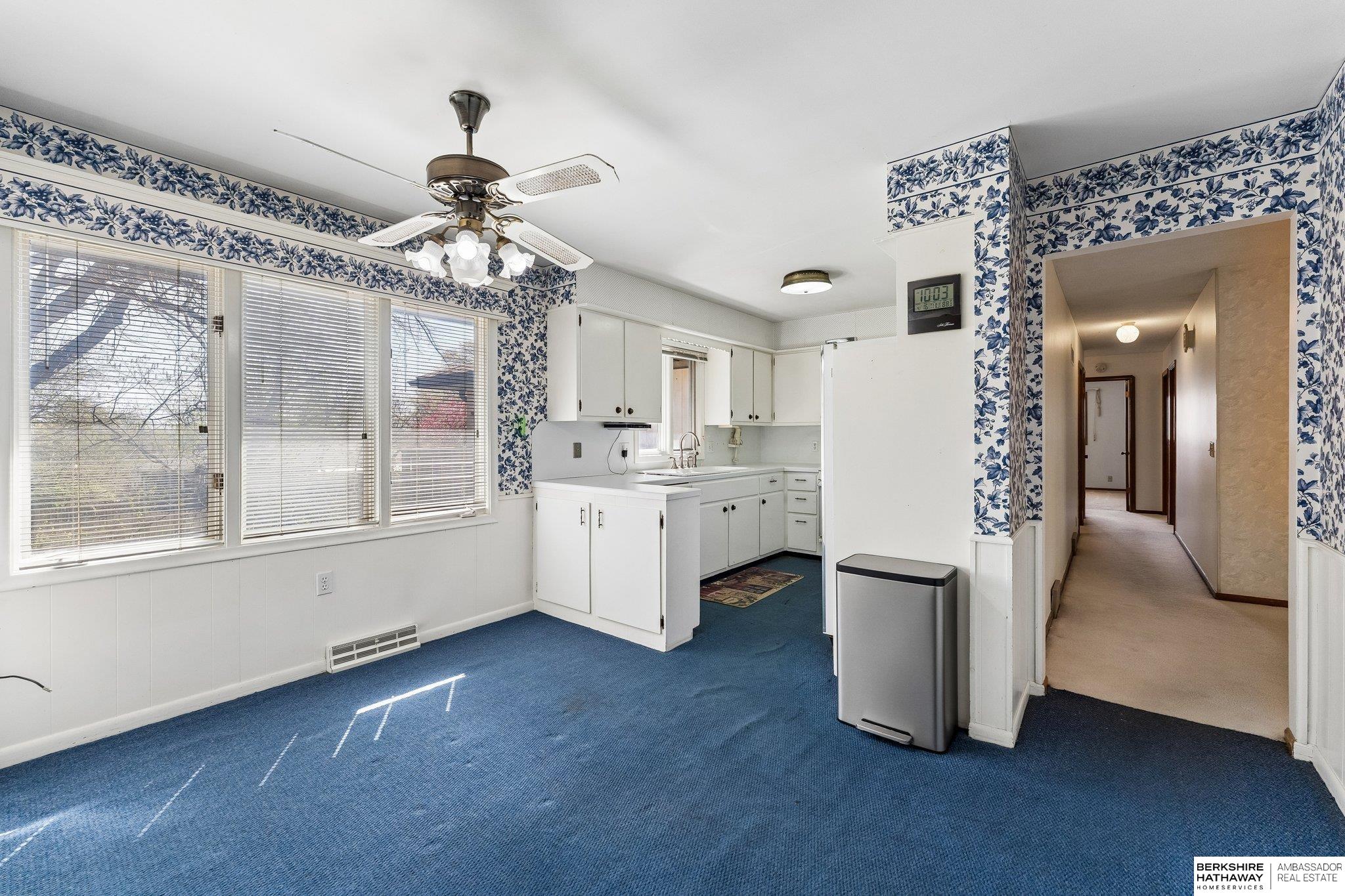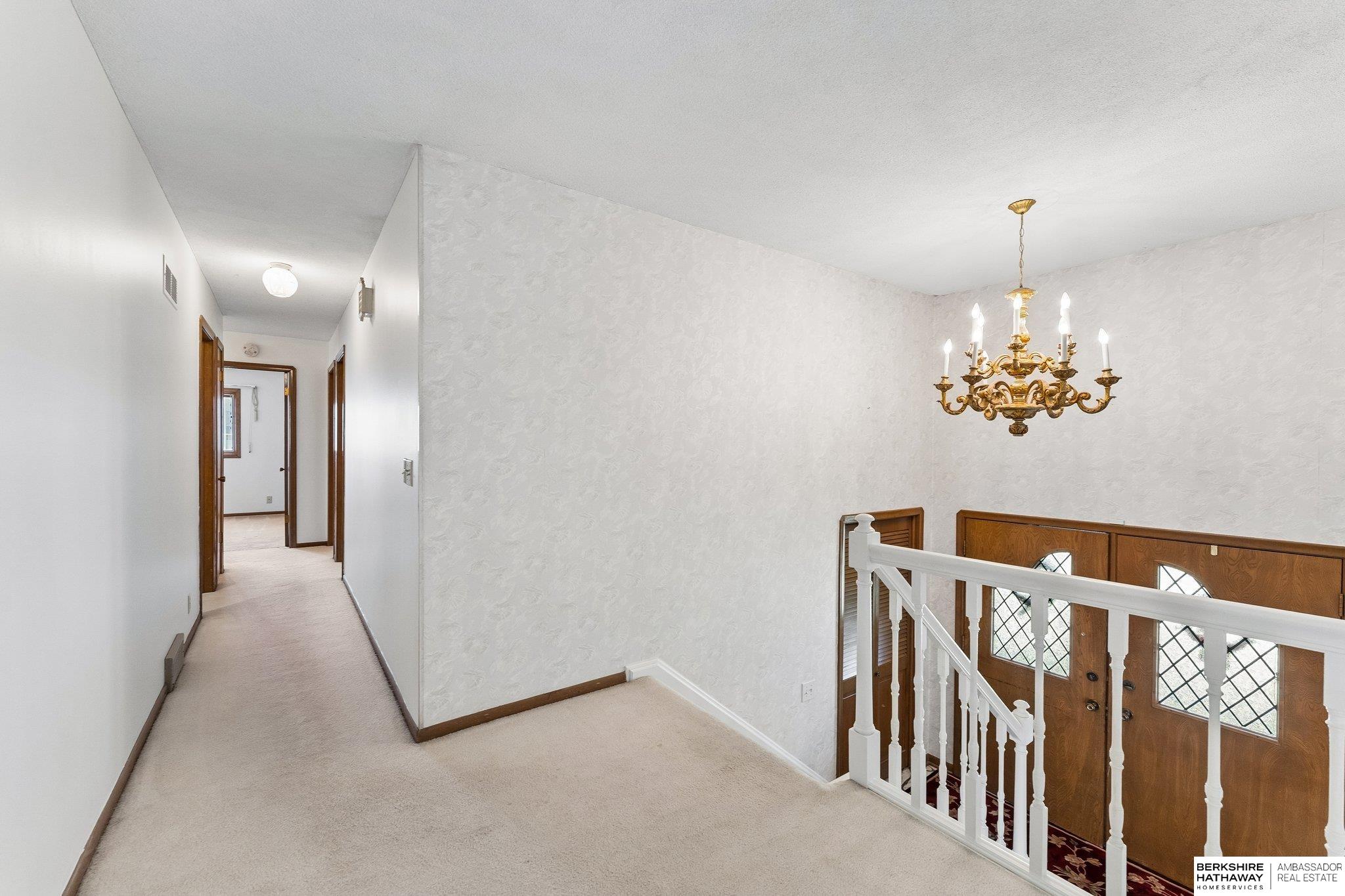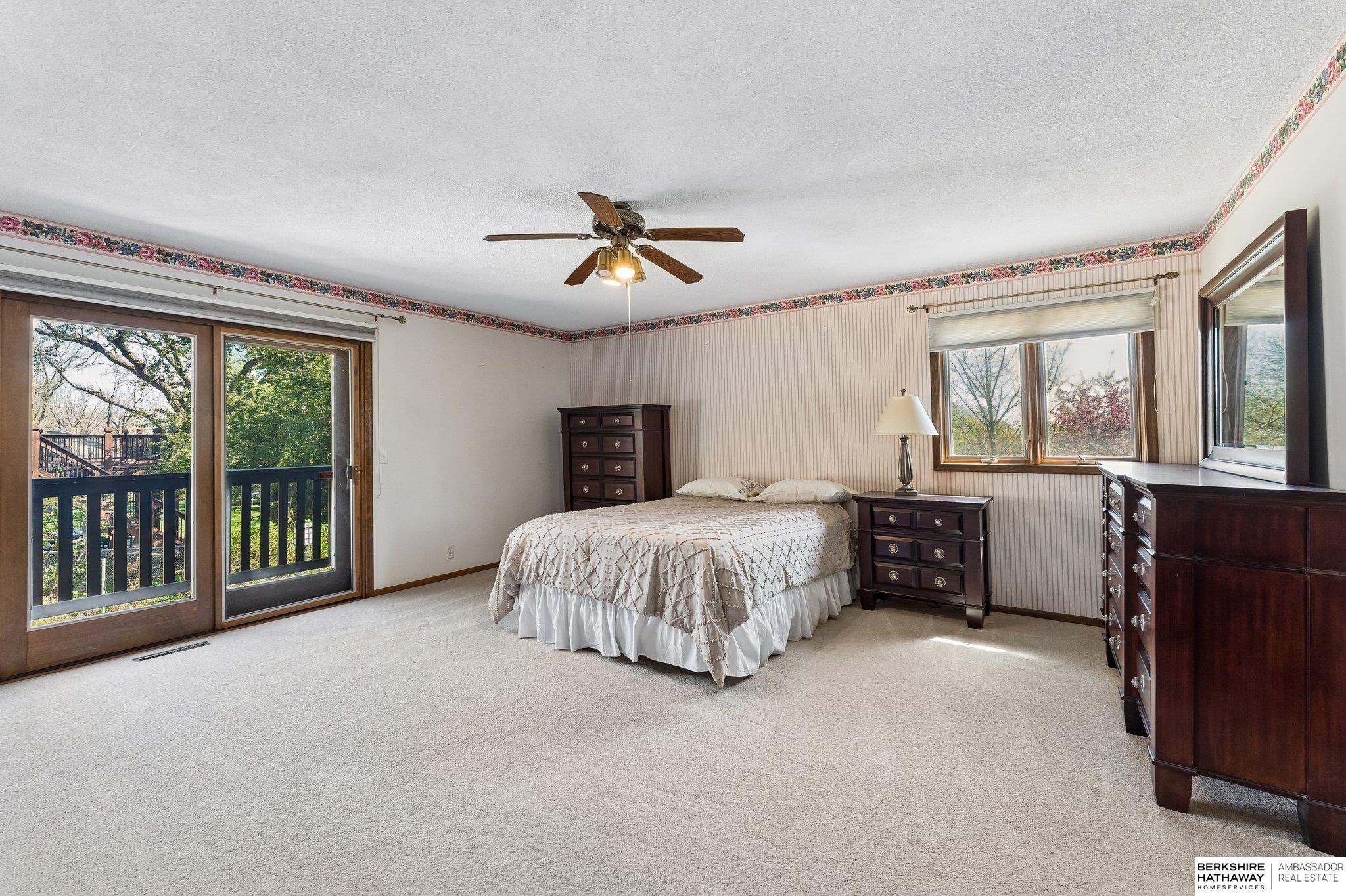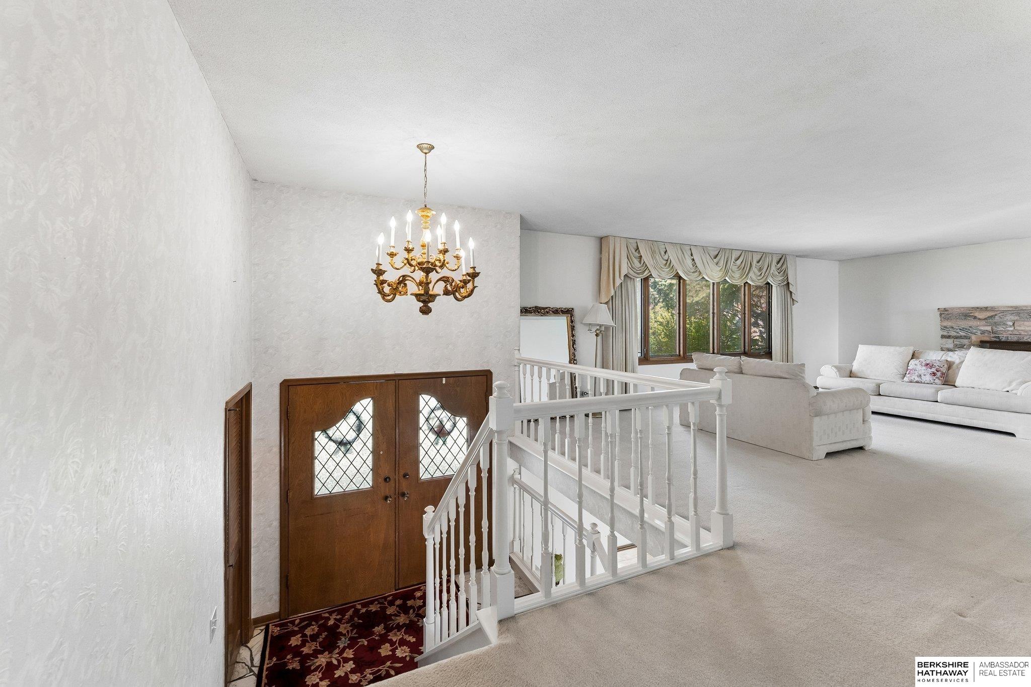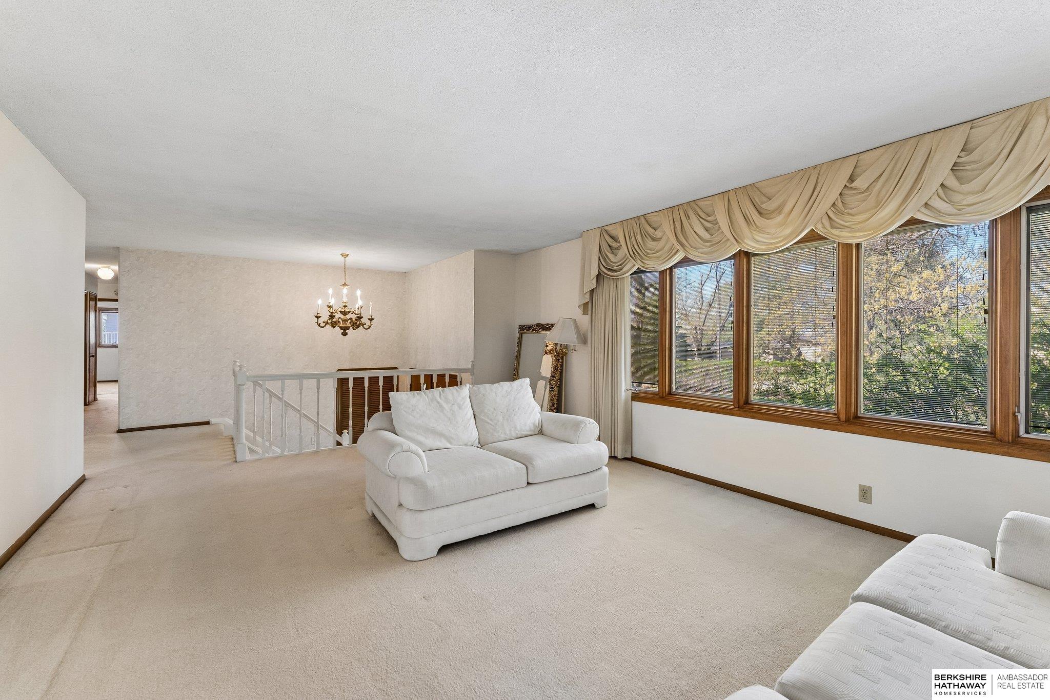 A rare and exceptional opportunity to own a spacious six-bedroom home offering over 3,400 square feet of living space. This property features convenient main-floor laundry and Pella windows with built-in blinds throughout. The large primary suite includes a walk-in closet and private balcony, creating a comfortable retreat. The lower level showcases beautiful parquet wood flooring, adding warmth and character. The home also offers a generous three-car garage with a separate heated workroom, ideal for projects or additional storage. Outside, you'll find a large backyard perfect for entertaining or outdoor activities. Located in a highly convenient Omaha location, this home provides easy access to shopping, dining, and major interstate connections.
