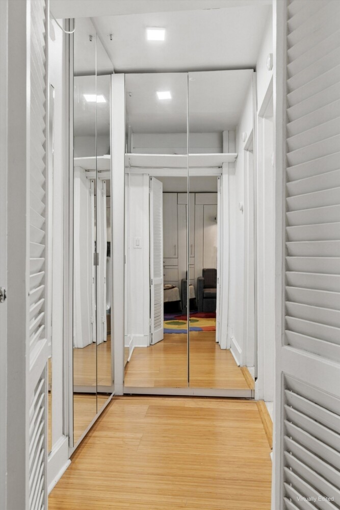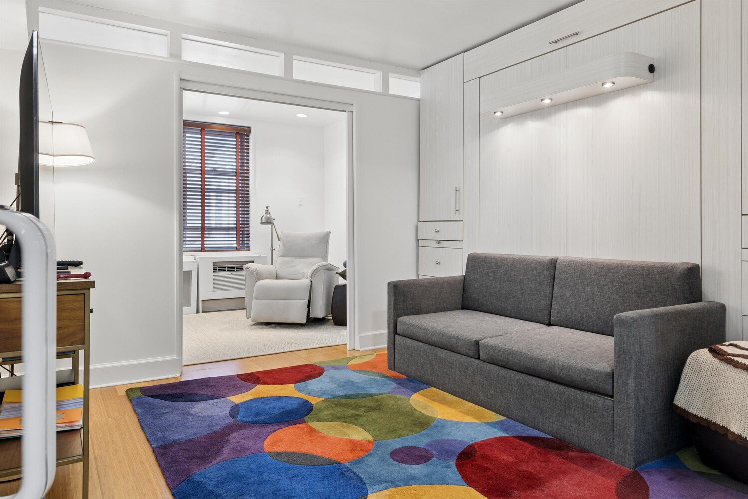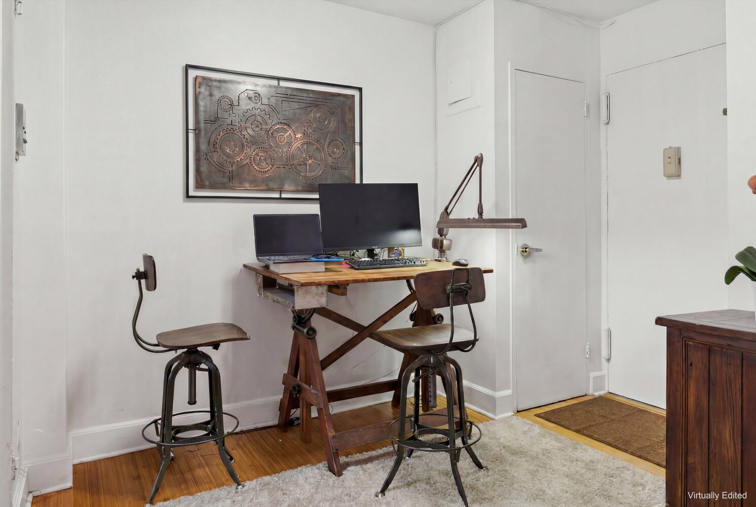 Apartment 4L is an over-sized south facing studio, easily converted to a one-bedroom home. The floor plan is perfect for providing privacy and wonderful sunlight throughout the day. The entry hallway provides room for an at-home office or dining area. And there's an abundance of closet space.