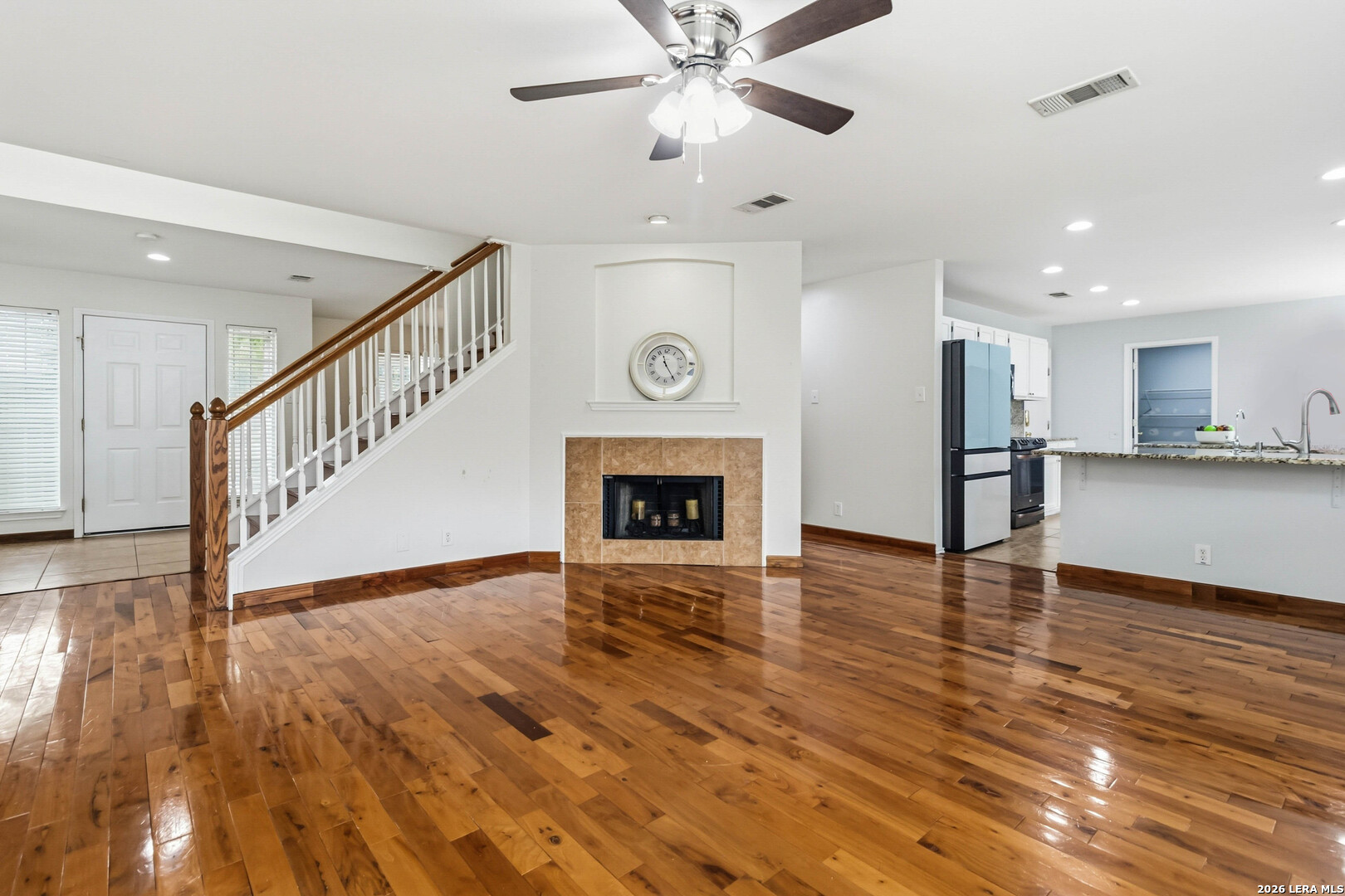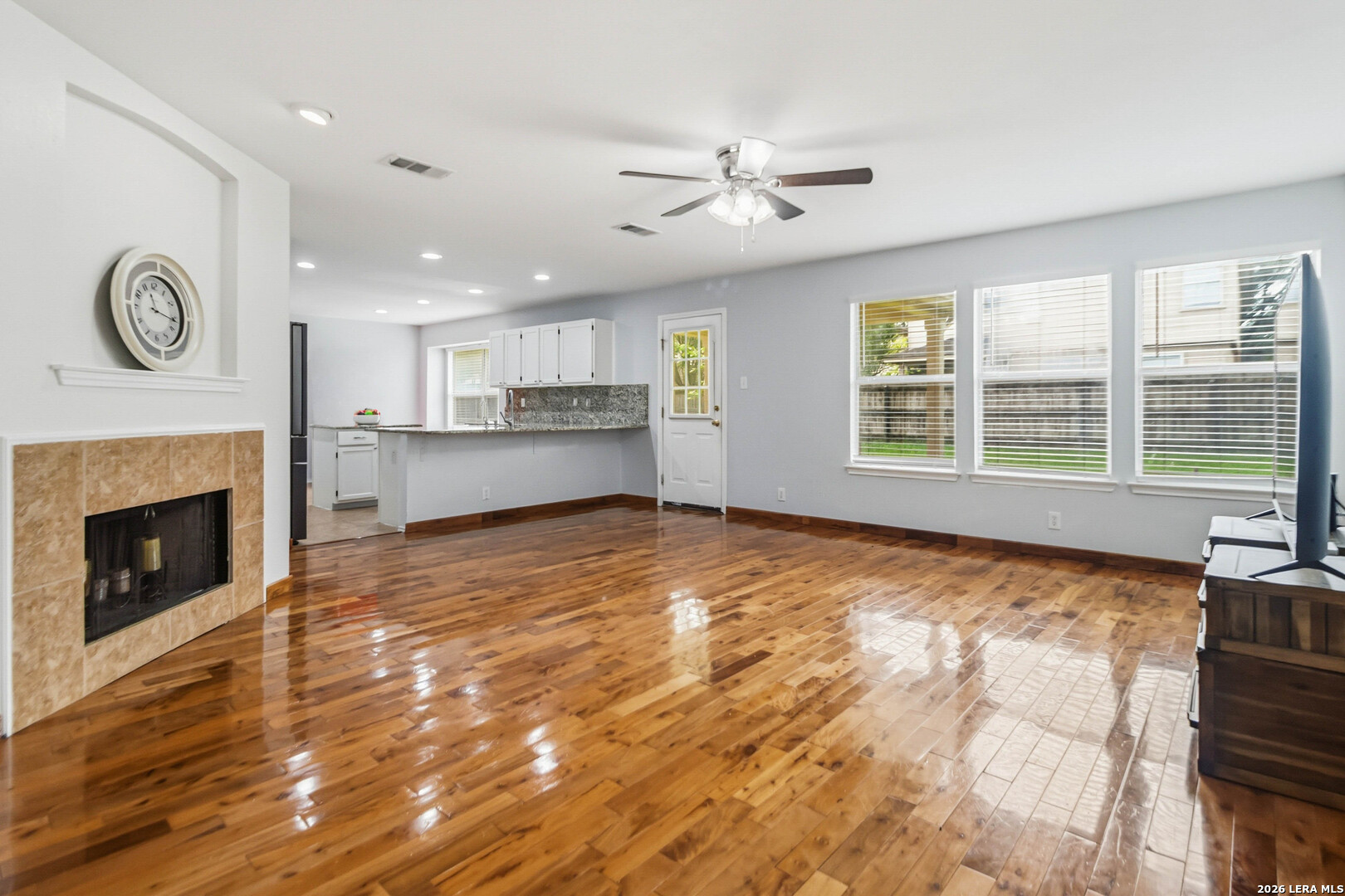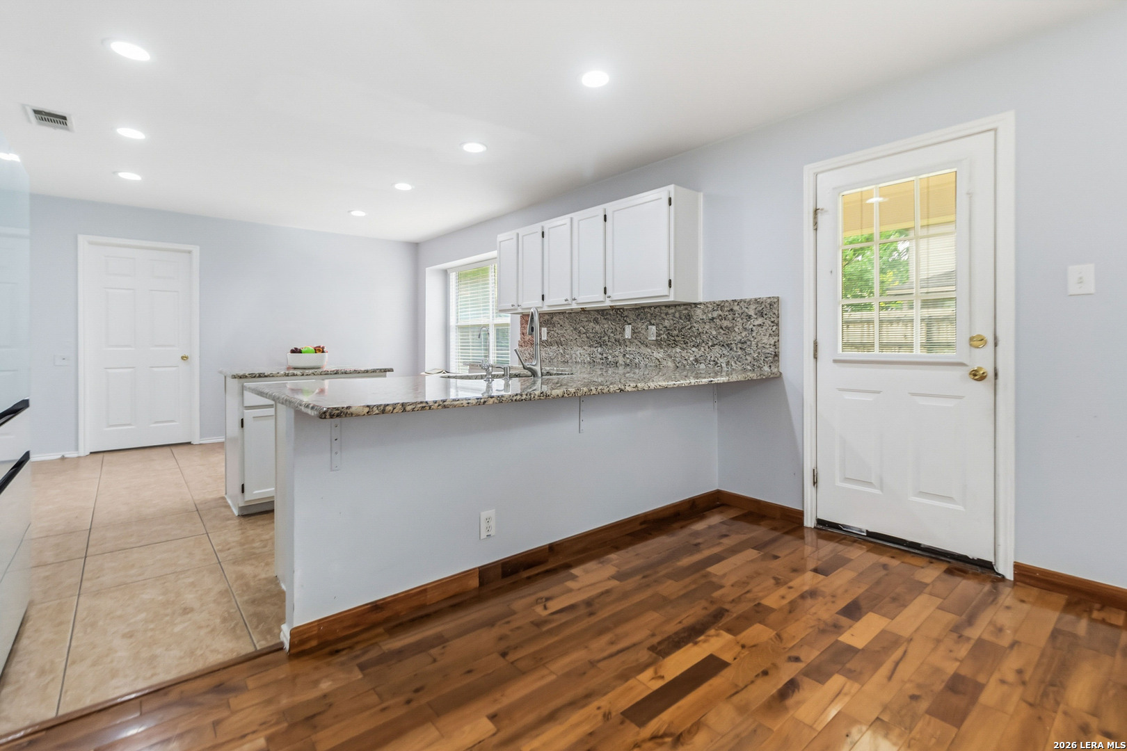 ***Open House Sat 4/25 and Sun 4/26 from 12-3*** Welcome to your future sanctuary, where elegance meets comfort in this exquisite 3-bedroom, 2.5-bathroom home sprawling across 2,231 square feet of refined living space. From the moment you step inside, you'll be captivated by the open floor plan that seamlessly connects each room, allowing for easy flow and a sense of spaciousness that is perfect for both entertaining and everyday living. Adorned with beautiful wood floors throughout, this home exudes warmth and sophistication. The heart of the home is the updated island kitchen, a chef's delight featuring stunning granite countertops and a generously-sized pantry, offering ample storage space for all your culinary needs. Retreat to the expansive primary bedroom suite, a true haven of tranquility that overlooks lush trees, providing a serene backdrop to start and end your day. Enjoy the luxury of double primary closets for all your wardrobe essentials. The primary bathroom is equally impressive, boasting extended counter space with double sinks, under-sink storage, a garden tub, and a separate shower for a spa-like experience. Step outside to discover your own private oasis. The covered backyard patio invites you to unwind and enjoy the outdoors in comfort while overlooking the large backyard, perfect for hosting gatherings or simply soaking up the sun in peace. Near schools, HEB, shopping, and convenient to I-35, 1604, 410, and 281. Don't miss your opportunity to experience this exceptional property; schedule your private tour today!