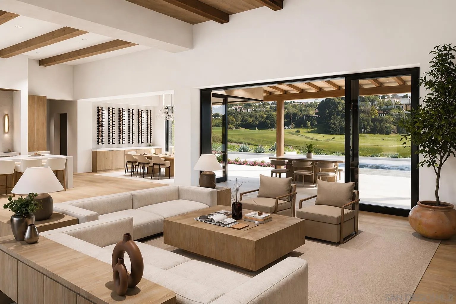 Discover unparalleled luxury in this GROUND UP BRAND NEW CONSTRUCTION, offering breathtaking panoramic golf course views. Nestled within an exclusive, guard-gated golf community, this never-lived-in home is a masterpiece of modern design. The single-level floor plan is open, airy, and flooded with natural light. Almost every room offers stunning golf course vistas, creating a serene, resort-like ambiance. The expansive covered patios seamlessly extend the living space, ideal for year-round entertaining, as they flow effortlessly through disappearing glass doors into the main home. The gourmet kitchen is a chef's dream, featuring high-end appliances, custom cabinetry, and an open flow to the dining and living areas. A grand game room, complete with a wet bar and home theater, provides endless entertainment possibilities. Work from home in one of two private offices, each with sweeping golf views. A detached casita offers a fully equipped kitchen, perfect for guests or multi-generational living. This home is a rare gem in a prime location, combining sophisticated design, resort-style living, and elite golf course access. Don't miss this extraordinary opportunity. Please watch video. . House is currently under construction, will be done by the end of 2026, buyer may customize some options if purchased promptly. Members of Santaluz enjoy world-class amenities, including a Reese Jones-designed championship golf course, a luxurious clubhouse, sparkling pools, and multiple recreational areas, all within a gated community offering 24-hour security. Conveniently located near top-rated schools, this home harmoniously blends refined living, modern comfort, and lifestyle convenience. Every detail reflects timeless design and thoughtful craftsmanship, creating a rare opportunity to experience serene luxury in one of San Diego's most coveted addresses. Schedule a private tour today and immerse yourself in this extraordinary retreat.