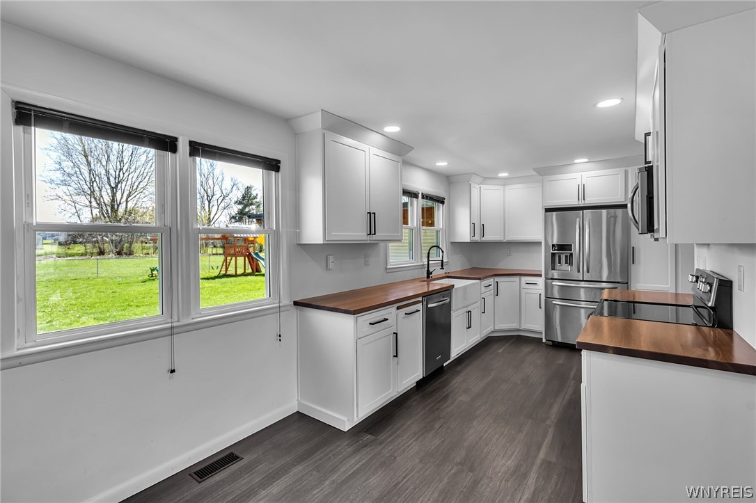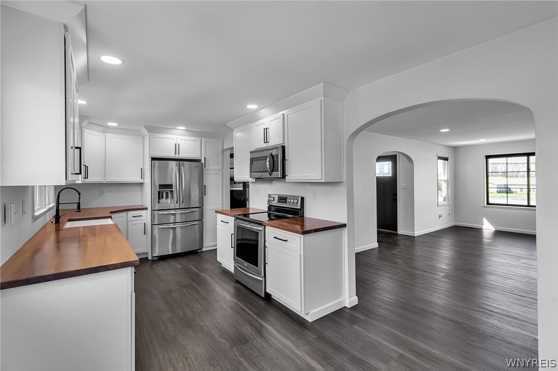 Welcome to this beautifully remodeled ranch, where modern updates meet effortless single-level living. This move-in ready home features modern and stylish finishes throughout. The updated kitchen boasts solid walnut countertops, contemporary cabinetry, soft close drawers and stainless steel appliances, flowing seamlessly into the spacious living and dining areas - perfect for both everyday living and entertaining. Step outside to a fenced in backyard complete with a patio and pergola, ideal for relaxing or hosting gatherings. With all the updates already completed, this home offers peace of mind and low-maintenance living. Some other updates include vinyl siding, seamless gutters, windows, insulation, flooring, garage doors, front and back patio, exterior lighting and doors, custom made Christmas lights and all electric! Conveniently located near shopping, dining, and major routes, this remodeled ranch is the perfect blend of style, comfort, and convenience. Don't miss your opportunity to make it yours! Delayed negotiations until Tuesday, April 28th at 1:00 p.m.