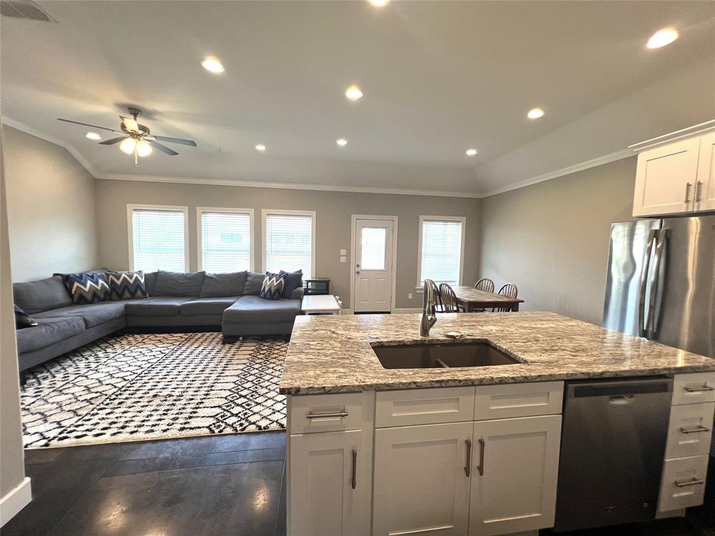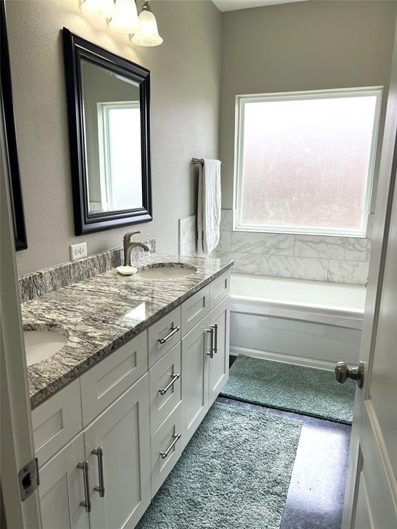 Welcome to this beautifully maintained four-bedroom, two-bathroom home offering the perfect blend of comfort and style. Featuring an open-concept layout, this home showcases stunning stained concrete flooring paired with plush carpeting throughout, creating a warm and inviting atmosphere. The kitchen is a true centerpiece, complete with stainless steel appliances, granite countertops, and ample space for entertaining or everyday living. The spacious primary suite provides a relaxing retreat with a luxurious en-suite bathroom that includes a separate garden tub and walk-in shower. Step outside to enjoy a beautifully landscaped yard, highlighted by an added wooden back deck-perfect for gatherings or quiet evenings outdoors. Intricate brickwork adds charm and character to the exterior, making this home as attractive outside as it is inside. This home is truly move-in ready and designed for both comfort and functionality.