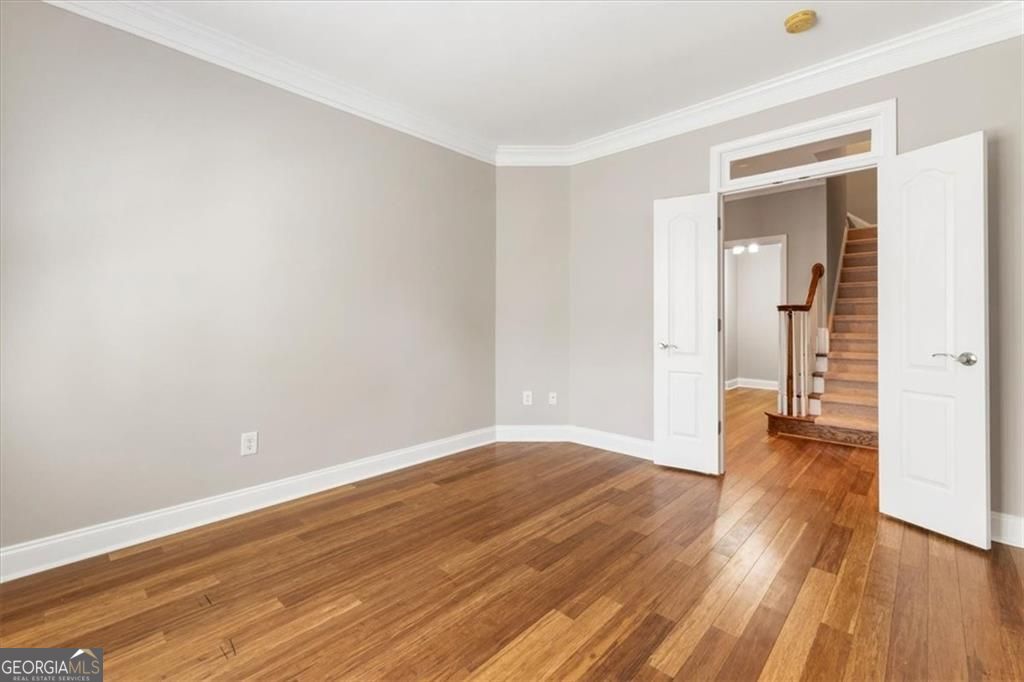 Seasons at Creekside is a charming swim and clubhouse community in an unbeatable location-just minutes from downtown Alpharetta and Crabapple, with an easy walk to Wills Park. This well-maintained end-unit is positioned in the back of the community and offers convenient one-level living. Upon entry, you'll find two secondary bedrooms and a full bath, thoughtfully positioned for privacy. The spacious dining room flows seamlessly into the kitchen, which features granite countertops, a stylish backsplash, and warm wood cabinetry. The fireside family room provides an ideal setting for both everyday living and entertaining. Tucked away at the rear of the home, the private owner's suite includes a cozy sitting area overlooking the courtyard, full bathroom with shower enclosure and walk-in closet. Enjoy year-round relaxation in the "All Season" room, with direct access to a private outdoor patio. Upstairs offers finished space perfect for home office, bedroom or craft room with half bathroom and closet area. Meticulously maintained, this home also includes updated light fixtures, new carpet and fresh interior paint. Don't miss this rare opportunity to own in a quaint, sought-after community of just 27 homes in the heart of Alpharetta.