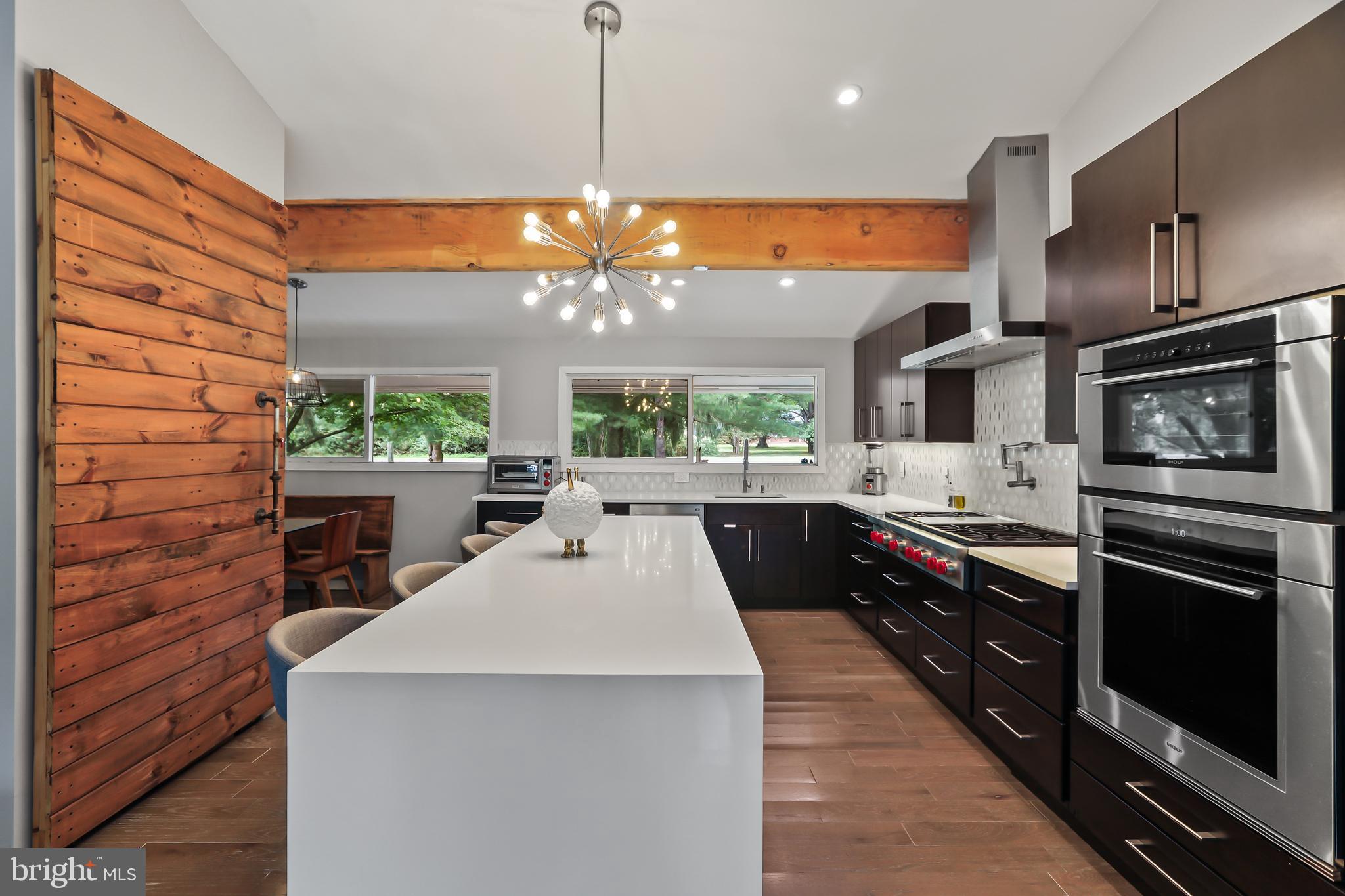 An ode to mid-century modern design! Enjoy one-level living at its finest, just minutes to the University and downtown Princeton. Four bedrooms and two full baths provide ample accommodation in this quiet retreat nestled in a lovely natural surrounding. Chefs and entertainers alike will appreciate the beautifully updated kitchen with stainless steel appliances including a Wolf cooktop, double ovens including a steam oven, and a quartz waterfall center island with seating and more. A wall of windows provides a scenic overlook of the spacious backyard. Located in Princeton Public Schools district. Welcome home!