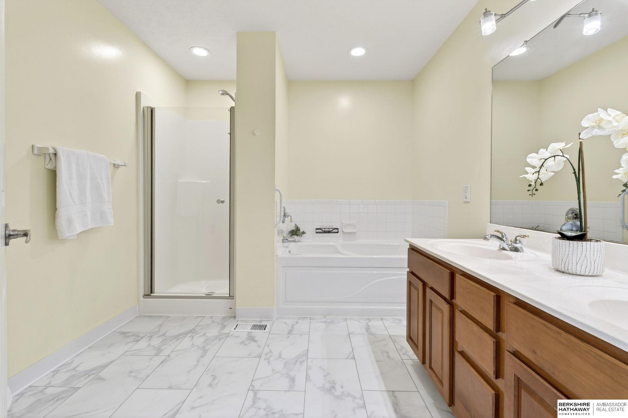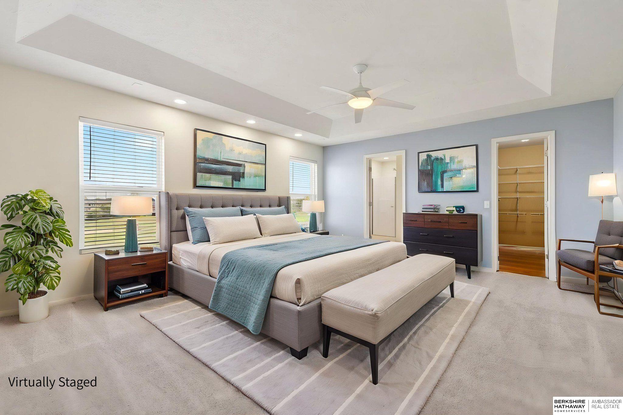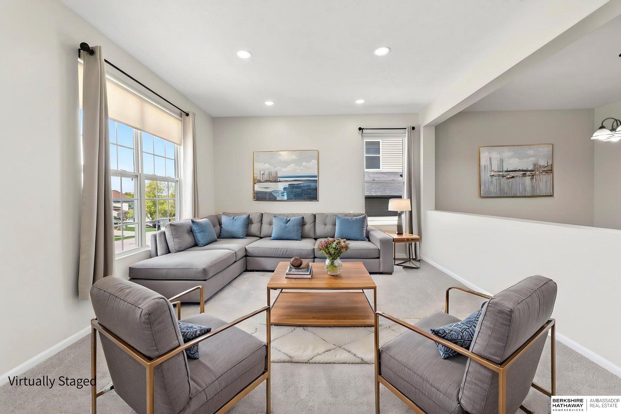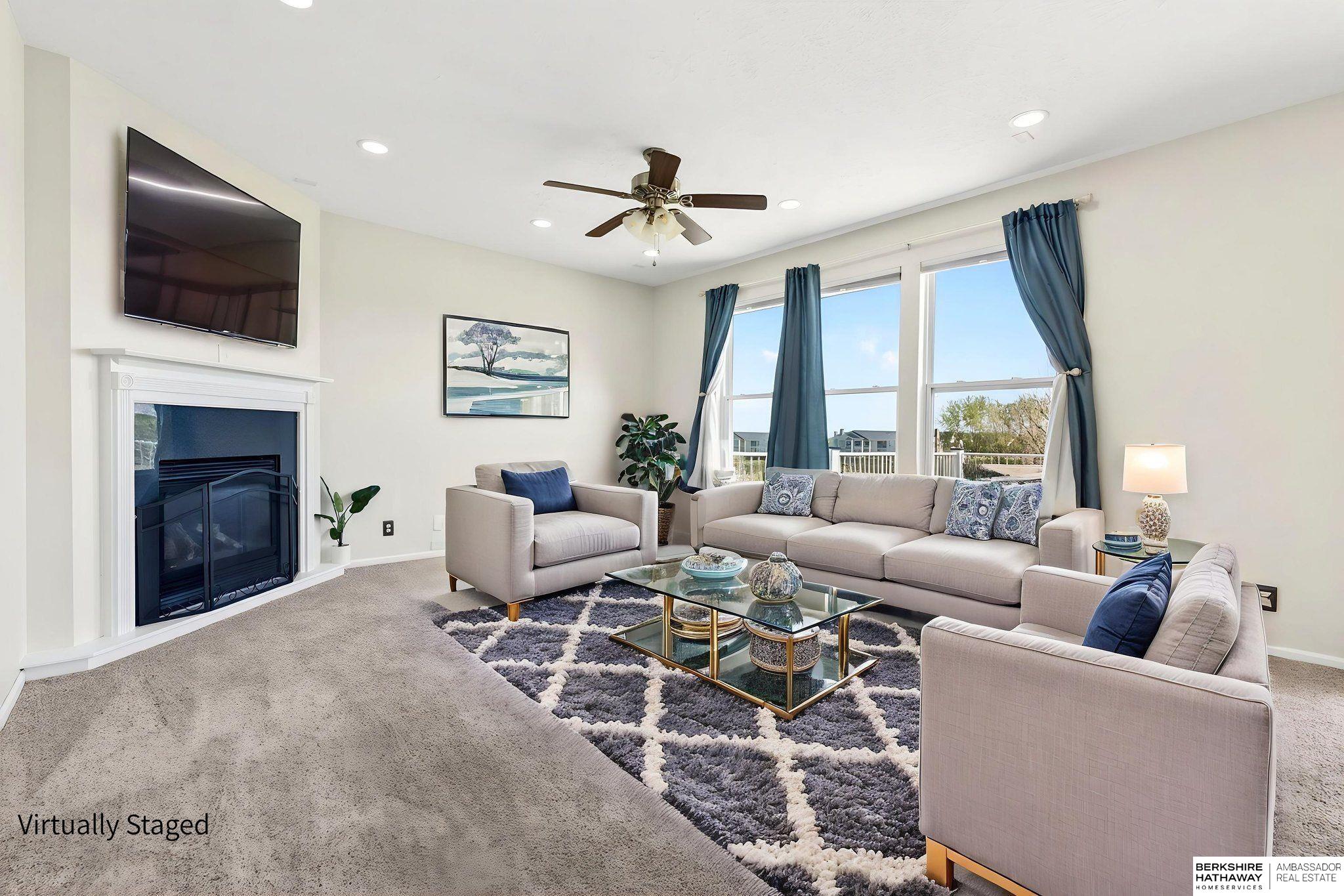 Live on the fairway in sought-after Tregaron Golf Course! This pre-inspected 2-story offers 4 bedrooms, 3.5 bathrooms, and 3,370 finished sq ft with beautiful golf course views. Spacious layout features a large primary suite with expansive closet and en suite bath with dual sinks, soaking tub, and separate shower. The second level includes a versatile loft with built-in desk. Updated kitchen appliances (2021-2022), fresh interior paint (2025), new carpet (2025), and LED lighting enhance the main living areas. Finished basement includes a bar area - perfect for entertaining. Updates: HVAC (2023), windows (2017), window treatments (2023), disposal (2024). Minutes from Offutt AFB, shopping, and dining. Move-in ready with space, updates, and lifestyle!