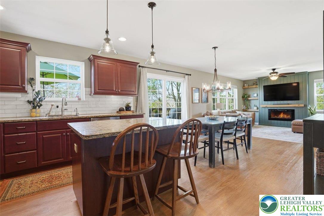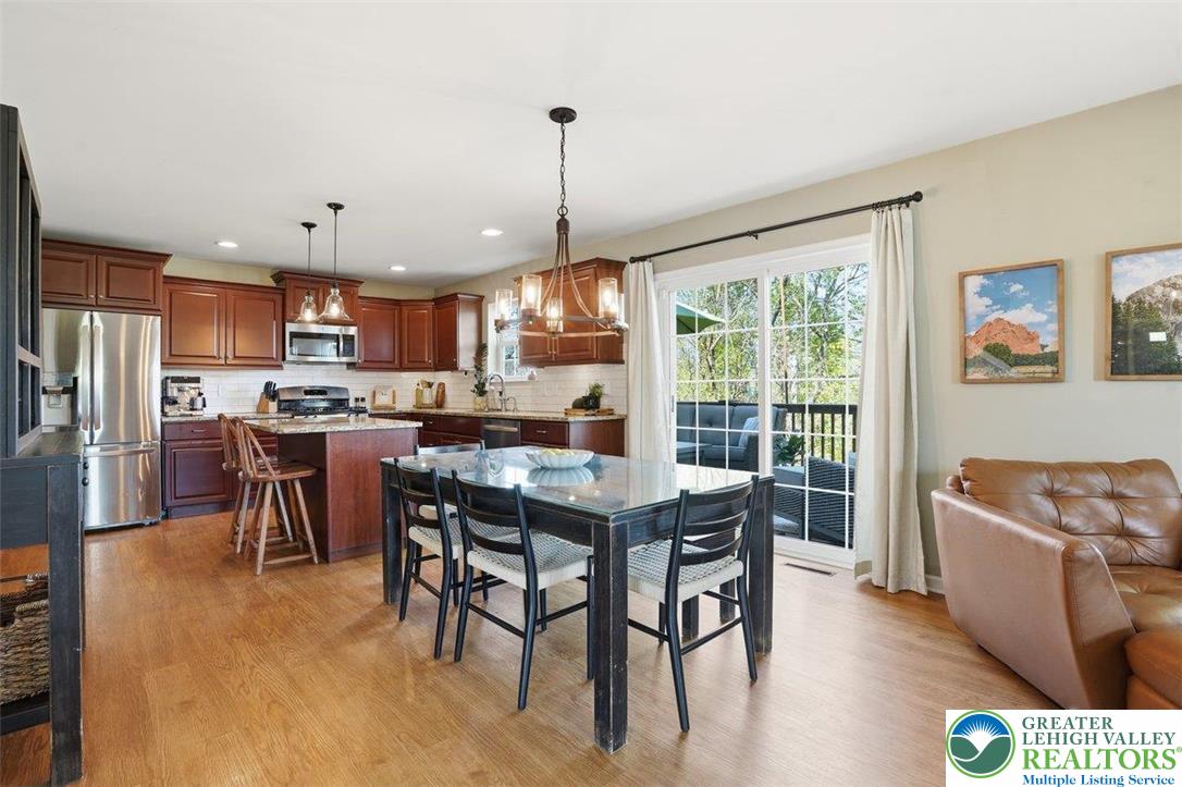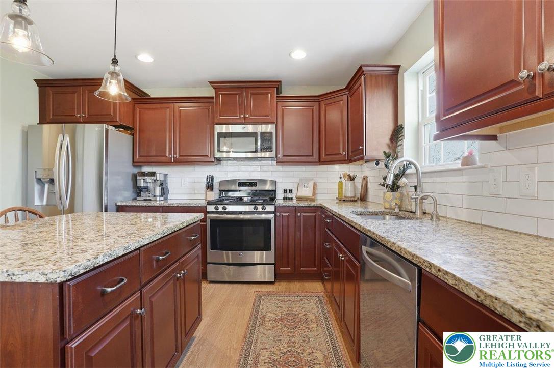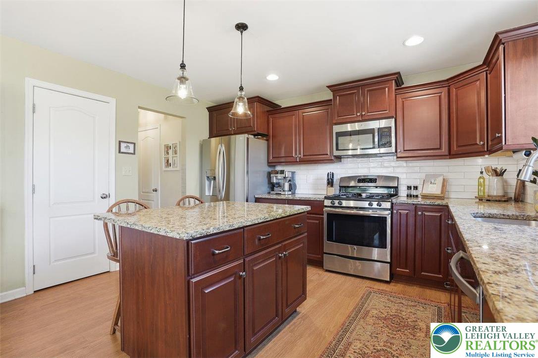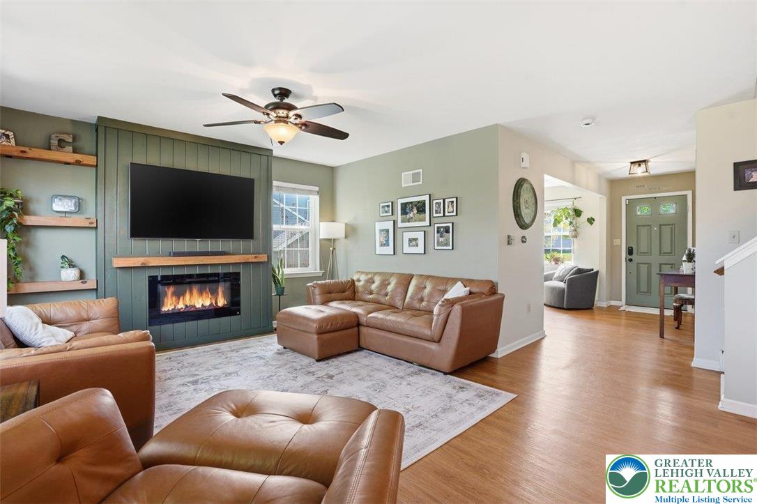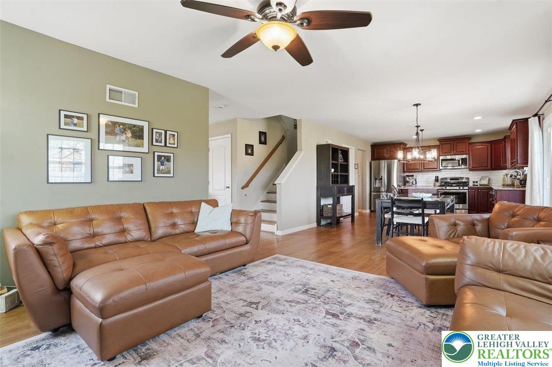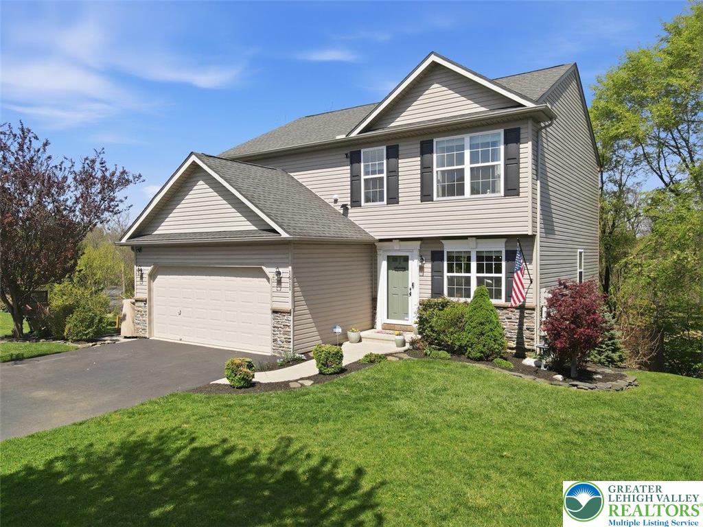 Welcome to this beautifully maintained 4-bedroom, 2.5 bath home offering space, style, and versatility in a highly desirable location. The First floor features a flex room with custom built-ins, currently used as a home office/children's homework/arts/craft room, and can easily adapt to your needs. The kitchen/family room is the heart of the home and is accented with a contemporary electric fireplace with a striking custom wood plank surround, creating a warm, modern, focal point. This sociable area opens to an expansive deck with sunset views. The finished walkout basement adds additional living space and opens to a thoughtfully designed private backyard oasis. A large side yard provides additional outdoor space for play. Second floor features, upgraded flooring, a laundry room, spacious primary suite, hall bath and 3 additional bedrooms with plenty of space for sleep, study and storage. Major improvements include, Finished Basement 2019, TV/Fireplace/Bookshelf display in family room 2024, Kitchen backsplash 2022, flex room bookshelf remodel 2023, Outdoor, Amish built shed with foundation 2024, Premium Polyaspartic garage floor with lifetime warranty, and attic remodel with pull down ladder 2025, backyard privacy fence and retaining wall 2025. Natural gas heat and natural gas hot water heater add to the efficiency of this outstanding home. Conveniently located within walking distance to a park with wide open green space for baseball, soccer and picnics. Situated in sought after Parkland School District and just minutes to major shopping, highways, and both LVHN and St. Luke's health networks. This home offers the perfect blend of comfort, convenience, and lifestyle-don't miss the opportunity to make it yours!
