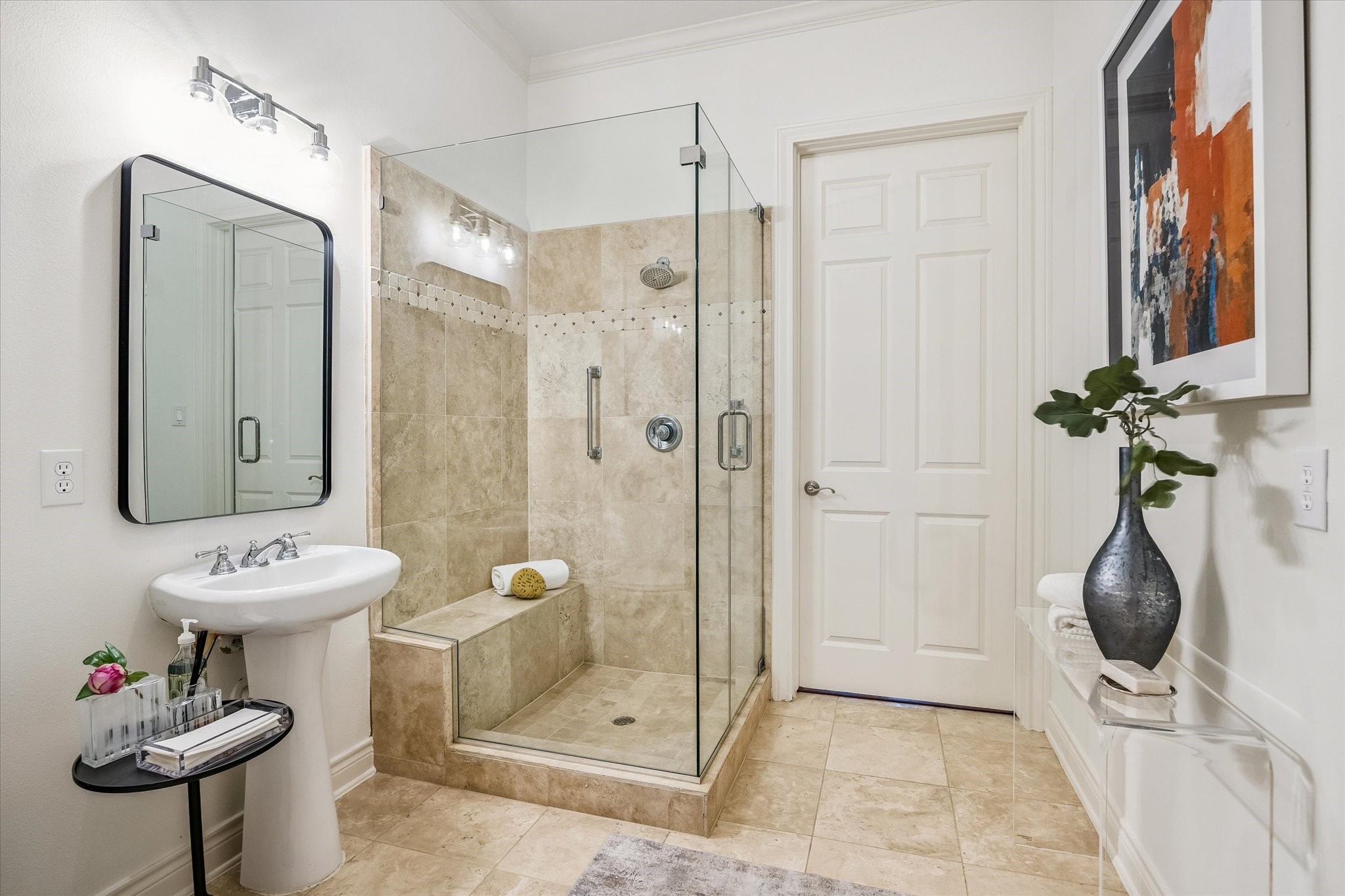 Tucked away on a quiet, cul-de-sac street in the City of Bellaire sits this custom-built residence with a welcoming front porch. Open-concept floor plan is highlighted by lofty ceilings and expansive windows that flood the space with warm natural light. WIDE sprawling 14,578 SF lot offers 4 ensuite bedrooms, including a FIRST-FLOOR ENSUITE BEDROOM, game room, home office, and an outdoor sanctuary. Backyard designed for entertaining: HEATED POOL/SPA, enclosed porch for al fresco dining. Light and airy gathering kitchen showcases stainless appliances, quartz countertops, central island, and a sun-drenched breakfast room. Primary retreat features two walk-in closets, and spa-like bathroom outfitted with a soaking tub, frameless shower, and double vanity. Additional amenities include WORKSHOP with STORAGE behind the OVERSIZED garage. Roof replaced 2018. No flooding. Zoned to top-rated schools, minutes from Bellaire area cafes, recreation center, parks, shops, and restaurants. Beautiful!