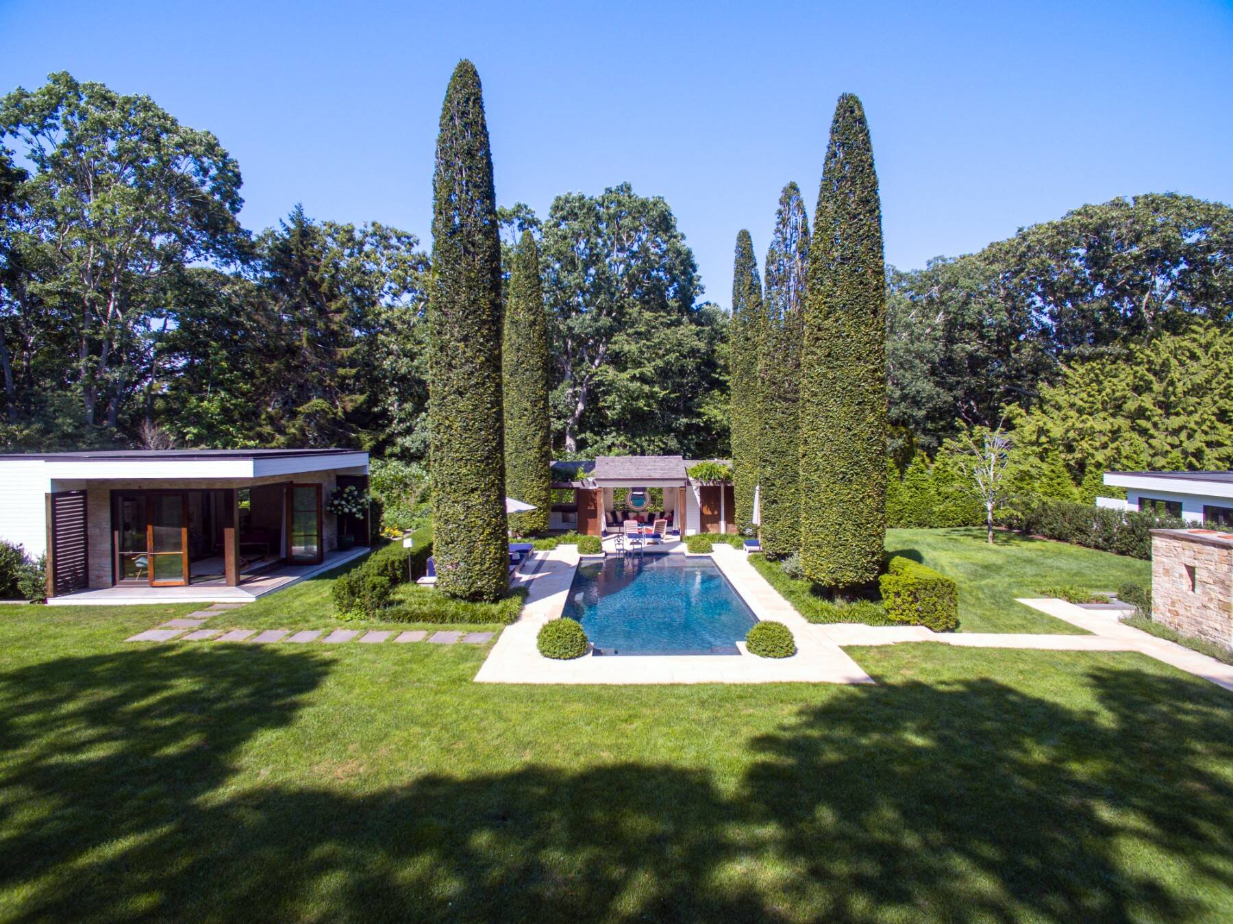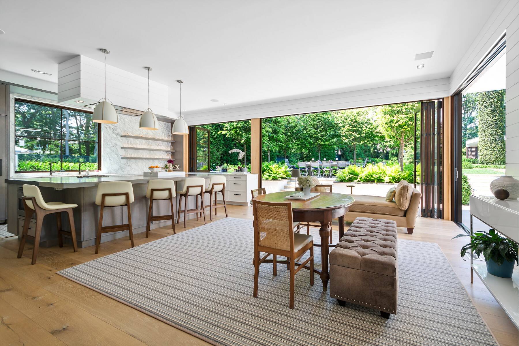 Amagansett There's little reason to leave this Amagansett Oasis that is newly built with such exquisite detail and style - it is beach and country living at a higher level. Thoughtful design and meticulous attention to detail are evident throughout, from the beautifully landscaped grounds to the array of outdoor amenities, including a wood-burning fireplace, multiple patios for relaxing and entertaining, an exercise pavilion, pool cabana, and fully equipped outdoor kitchen. Mature evergreens provide exceptional privacy, creating a true resort-like retreat. Floor-to-ceiling sliding doors blur the line between indoor and outdoor living, perfect for effortless summer days. Inside, the spacious yet inviting living room, dining area, and family room-complete with a wet bar and beverage center-flow seamlessly into a well-appointed kitchen and butler's pantry designed for entertaining. The first-floor primary suite offers a private sanctuary, featuring a coffee bar and direct access to a serene outdoor shower deck. Upstairs, a floating staircase leads to beautifully styled guest bedrooms, including an additional primary suite. The finished lower level adds even more living space with guest rooms and a generous lounge area. Offered for the first time in 2024, this exceptional home blends sophistication, comfort, and a sense of fun. Available weekly for $80,000. This rental has everything one could ever dream of and offers a rare opportunity to live at such a high level. You won't want to leave but if you do the ocean beach is moments away as is the charming town of Amagansett with great shops, cafes and restaurants. [[Rental Registration # RR-26-96]] EH RR #: RR-26-96