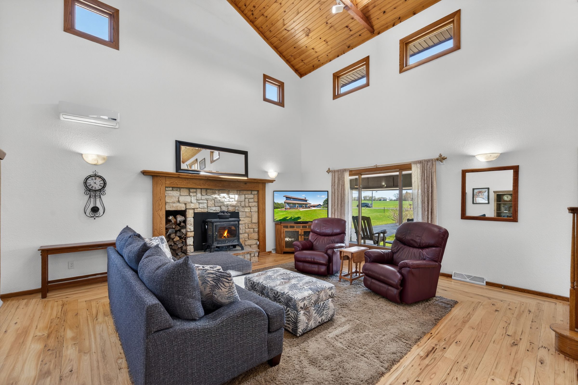 Embrace the ultimate country escape on two sprawling acres in Union Grove, bring your horses and hobbies to this rare find! This enchanting three-bedroom, two-bath colonial features a dramatic great room with vaulted ceilings and a large kitchen with beautiful cabinetry that opens to a dining area overlooking the grounds. The smart floor plan offers two main-floor bedrooms, while the upper level is an exclusive primary retreat with a loft, ensuite with dual vanities, and walk-in closet. Step outside to a backyard paradise! Relax on the deck, soak in the hot tub, or splash in the pool, all within a fenced yard offering ''privacy for days.'' Car enthusiasts and craftsman will marvel at the huge garage. Your peaceful country lifestyle starts here!