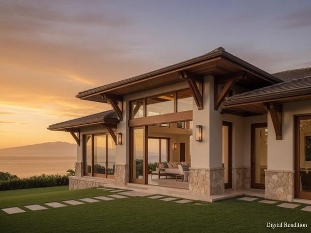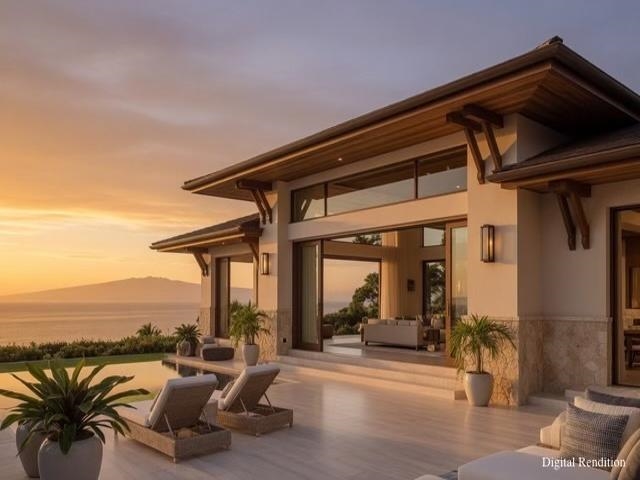 Discover an exceptional opportunity in the highly sought-after Launiupoko community with this elevated 1.083-acre estate property at 859 Kai Hele Ku. Positioned approximately 280 feet above sea level, this rare offering captures sweeping panoramic ocean views spanning Lana?i, Moloka?i, and Kaho?olawe, with year-round sunsets and seasonal whale watching as your daily backdrop. This offering represents a future build opportunity, with thoughtfully designed plans for a custom luxury estate. The proposed residence features a beautifully appointed 4-bedroom, 4-bathroom home with approximately 2,900 sq. ft. of interior living space, complemented by 700 sq. ft. of covered lanai and a spacious garage. The layout includes two primary suites with private outdoor showers, designed to embrace Maui's signature indoor-outdoor lifestyle. The envisioned design highlights a chef's kitchen with Sub-Zero panelized refrigeration, Wolf range, custom cabinetry, and a dramatic 10x6 waterfall island crafted from Taj Mahal quartzite. Additional planned features include natural stone walls and tile throughout, Kapalua blue rock accents, imported limestone flooring, smart home integration, central AC, and automated indoor/outdoor systems for modern comfort and convenience. Outdoor living is central to the concept, with plans for an expansive entertaining area complete with a BBQ island and kitchen, surrounded by mature landscaping, natural gas tiki torches, and ambient lighting. Additional proposed features include solar with Powerwall backup, full pocket doors in the great room to maximize views, HEPA air filtration, Grohe smart shower systems, thermostatic water controls, and private water systems supporting irrigation and plumbing. Offering the perfect balance of privacy and proximity, this property is just minutes from Lahaina town and Ka?anapali's world-class beaches, dining, and golf. This is a rare opportunity to build a legacy estate in one of West Maui's most desirable neighborhoods, with plans already in place to bring your vision to life.