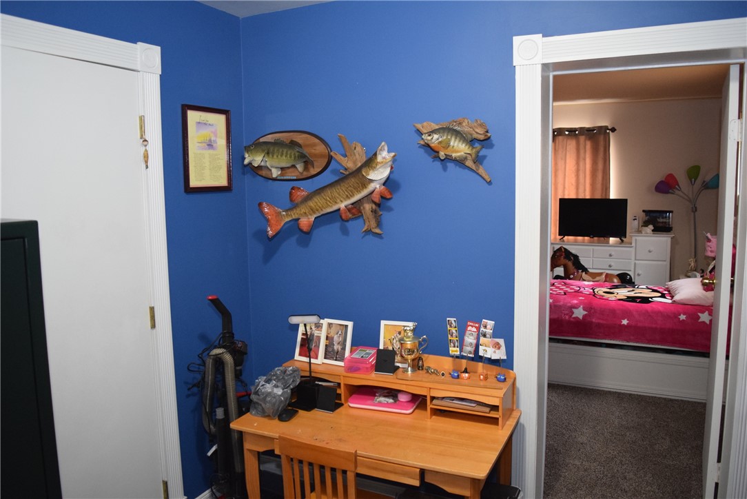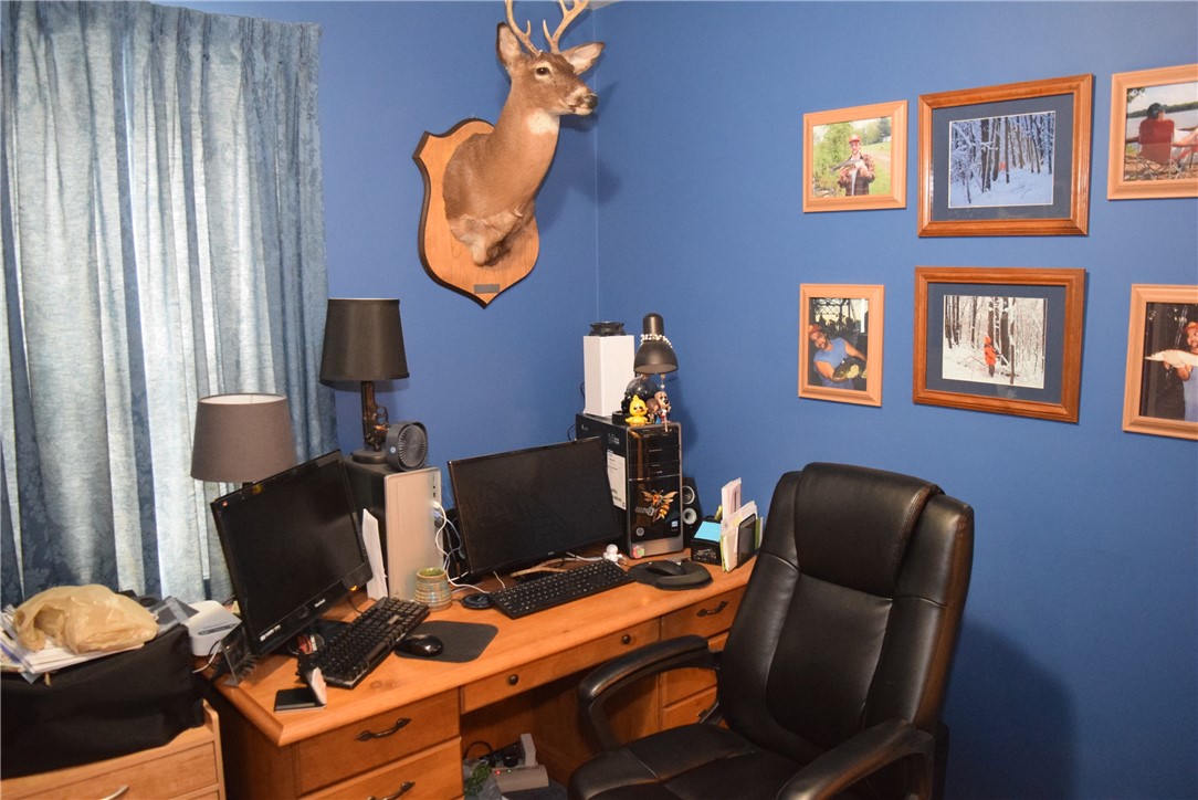 This inviting cozy residence immediately makes you feel at home with its warm, welcoming atmosphere. As you enter through the front door, the living room greets you with a sense of relaxation and comfort, providing a perfect retreat for unwinding after a long day. The kitchen is designed to balance functionality and charm, making meal preparation a pleasure. Adjacent to the kitchen, the dining room sets the stage for entertaining friends and family, whether for intimate dinners or festive celebrations. This home offers two generously sized bedrooms. One-bedroom features convenient access to a small deck, creating a peaceful spot for relaxation and enjoying the outdoors. The bathroom is designed to meet your everyday needs, providing comfort and practicality. An office area is also included, offering a flexible space for work or study. The property includes a basement and a fruit cellar area, along with a garage that provides ample room for equipment and storage. Some of the rooms have been freshly repainted, Some new carpeting and a brand-new metal roof has been installed, ensuring lasting durability and peace of mind. A generous backyard with a covered porch offers an ideal setting for outdoor gatherings and entertainment, making this home a perfect place for both relaxation and hosting events.