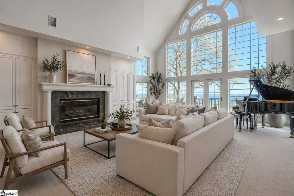 This European-inspired mountain estate is defined by a rare combination of architectural drama and uninterrupted, long-range views, stretching across miles of the Carolina foothills. From the moment the front door opens, the experience is immediate: a two-story foyer, a hand-carved staircase with sculptural presence, and a living room where ceilings rise over 30 feet, framing the horizon like a work of art. The home was designed for those who value both scale and intimacy. The main living area flows naturally from grand entertaining to quiet retreat, with expansive windows pulling light deep into the interior and keeping the mountains in constant view. Just beyond, a sunroom becomes a daily ritual space, morning coffee suspended above the landscape, evening light settling across the ridge-line. At the center of the home, the kitchen is built for both serious cooking and effortless hosting. A Sub-Zero refrigeration system, gas cooktop, double ovens, and a well-appointed butler's pantry with wine chiller allow the space to function seamlessly whether for two or twenty. The layout keeps everything connected, never removed from the energy of the home. The primary suite, positioned on the main level, offers a true sense of retreat. A private fireplace, bay windows capturing miles of view, and a scale rarely found in mountain homes create a space that feels both elevated and deeply personal. The ensuite bath extends the experience with dual vanities, a jetted soaking tub, separate shower, bringing a spa-like element into daily life. The lower level expands the home's versatility in a way few properties achieve. With a full walkout design, this level includes a recreation room, second office, workshop space, wine cellar, and full bath, easily adapting into a guest suite, private quarters, or multi-generational living environment without compromise. Outdoor living is layered and intentional. A series of decks, patios, and balconies are positioned to capture shifting light and panoramic views throughout the day, while professionally designed landscaping, a water feature, and mature trees create both beauty and privacy. The sloped homesite enhances the sense of elevation, one of the most sought-after features in homes for sale in The Cliffs at Glassy. Located within one of the premier gated golf communities in Landrum SC, residents have access through optional membership to seven championship golf courses, clubhouses, wellness centers, tennis, hiking trails, and a full suite of lifestyle amenities across The Cliffs communities. This flexibility continues to drive demand among buyers searching luxury homes in Landrum SC, golf community homes in Upstate South Carolina, and mountain view homes near Greenville SC. This is not simply a home defined by square footage, it is defined by perspective, elevation, and the way it lives from one space to the next. A true standout within Landrum SC real estate and The Cliffs at Glassy homes for sale.