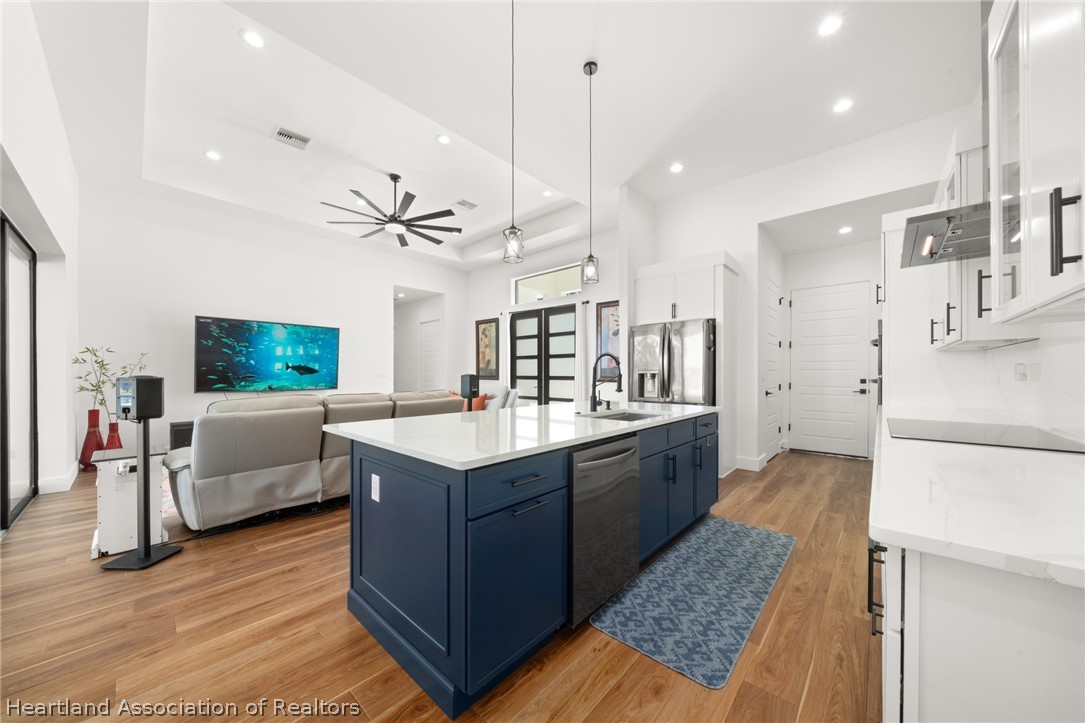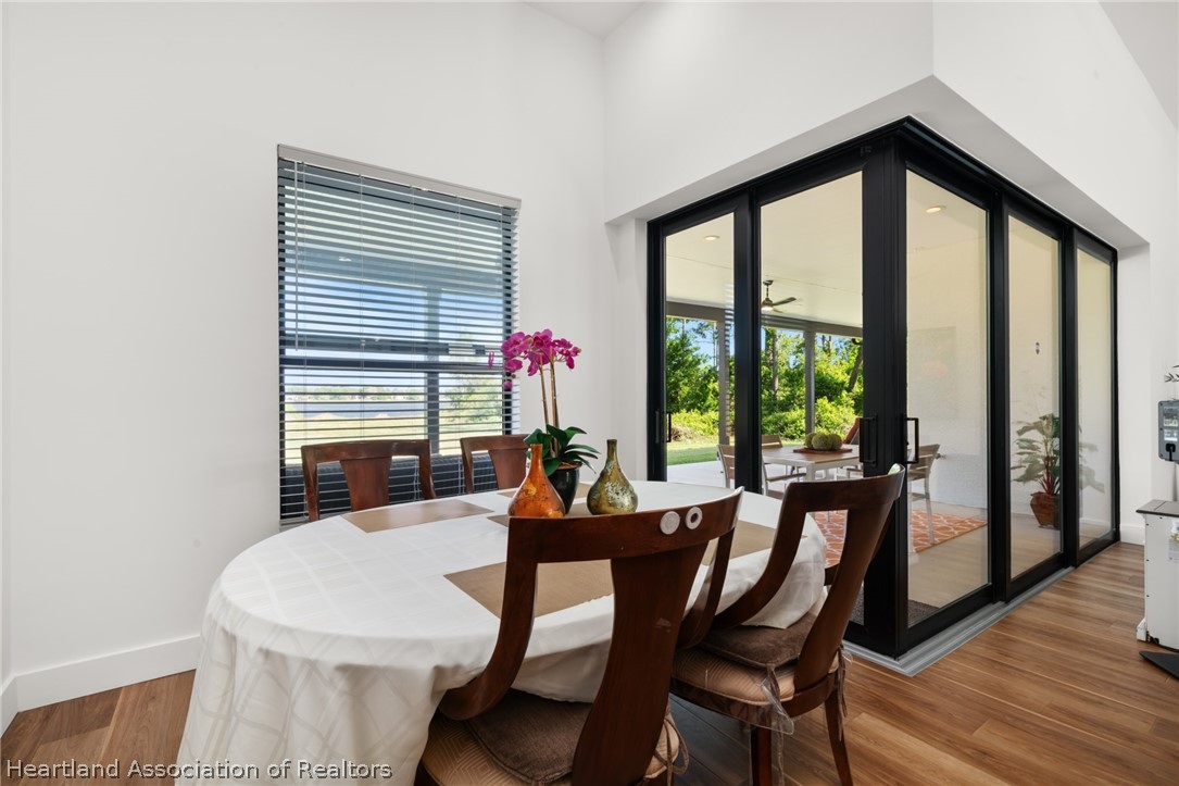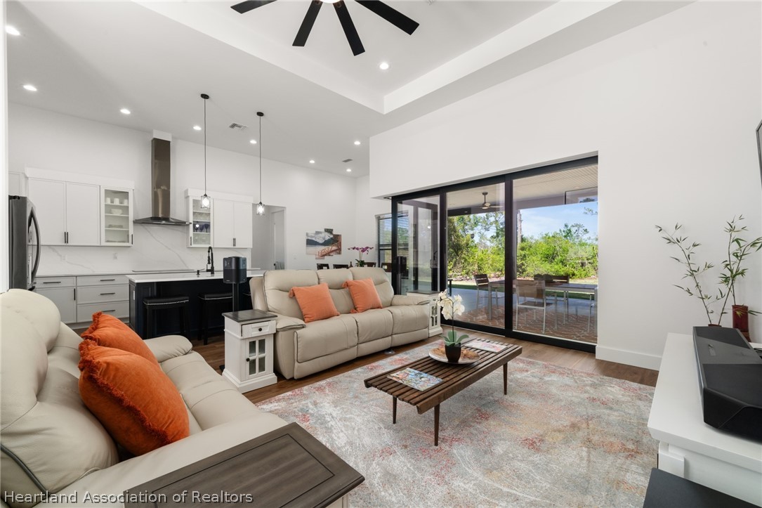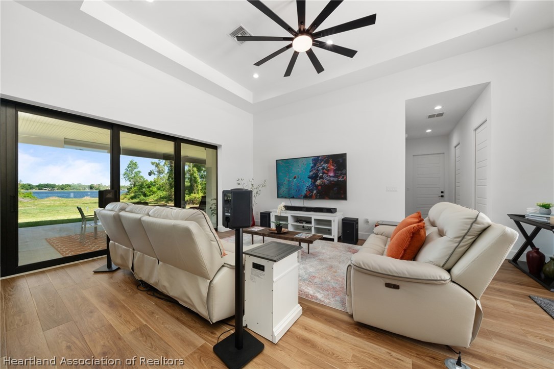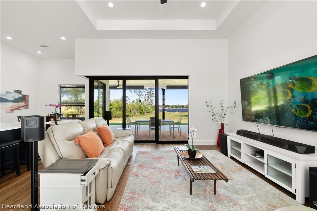 Stunning 2024 lakefront home on Lake Hill in Lake Placid with breathtaking sunset views! Built by Bevis Construction, this beautifully designed 3-bedroom, 2.5-bath home with a dedicated office offers the perfect blend of quality craftsmanship, luxury, and modern technology. From the moment you walk in, you'll notice the soaring 11-13 ft ceilings, luxury vinyl plank flooring, and an open layout designed to capture the incredible lake views. The spacious back porch (lanai) features a corner sliding door, creating a seamless indoor-outdoor living experience and maximizing those gorgeous sunset views over the water. One side of the property borders state-owned land, offering added privacy with no future building. The kitchen is thoughtfully designed with a hidden coffee station, soft-close drawers, and modern finishes throughout. The home also includes an indoor laundry room for added convenience. This fully integrated smart home allows you to control lighting, USB outlets, washer/dryer, microwave, security cameras (auto pan/zoom/tilt), garage doors, and more - all from your smartphone or wall controls. Additional features include: Hurricane impact windows, underground electrical (seller invested over $10,000), epoxy garage floors with split A/C units in both garages, utility sink in the laundry room plus a utility sink in each garage (two garages total), all bathrooms are bidet-ready with outlets conveniently located along the baseboards, and the second bathroom features a 6-foot soaking tub, built-in surround sound in all rooms, LED lighting inside and out, security lighting around the entire perimeter (smart controlled), lanai TV hookup ready, full security camera system. Located in beautiful Lake Placid - less than 2 hours from both Florida coasts - this home offers peaceful lakefront living with convenient access to everything Central Florida has to offer.