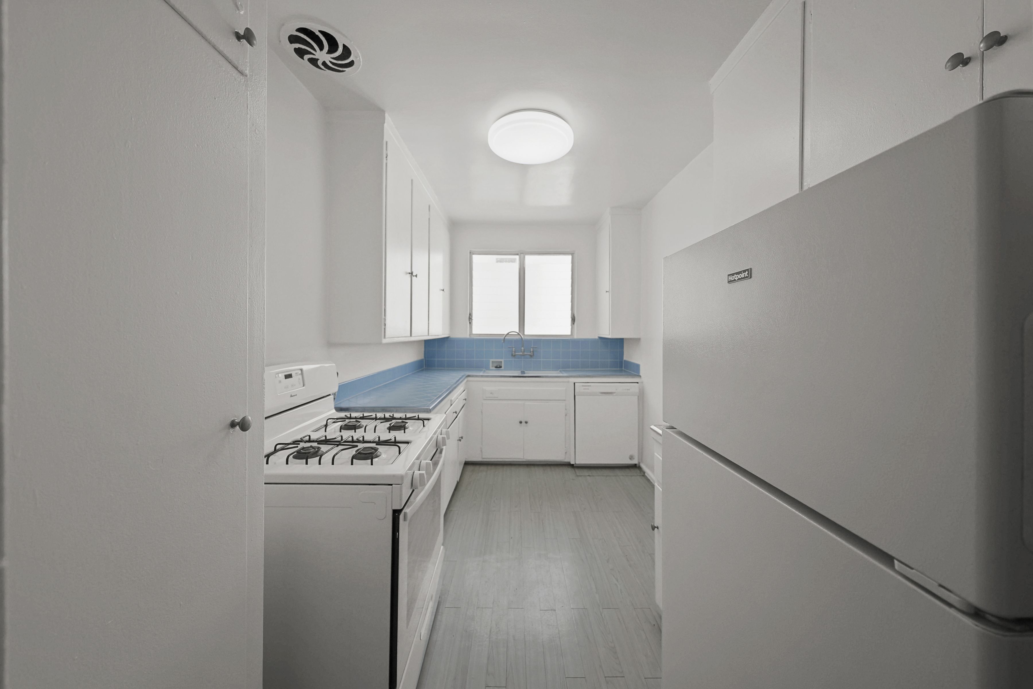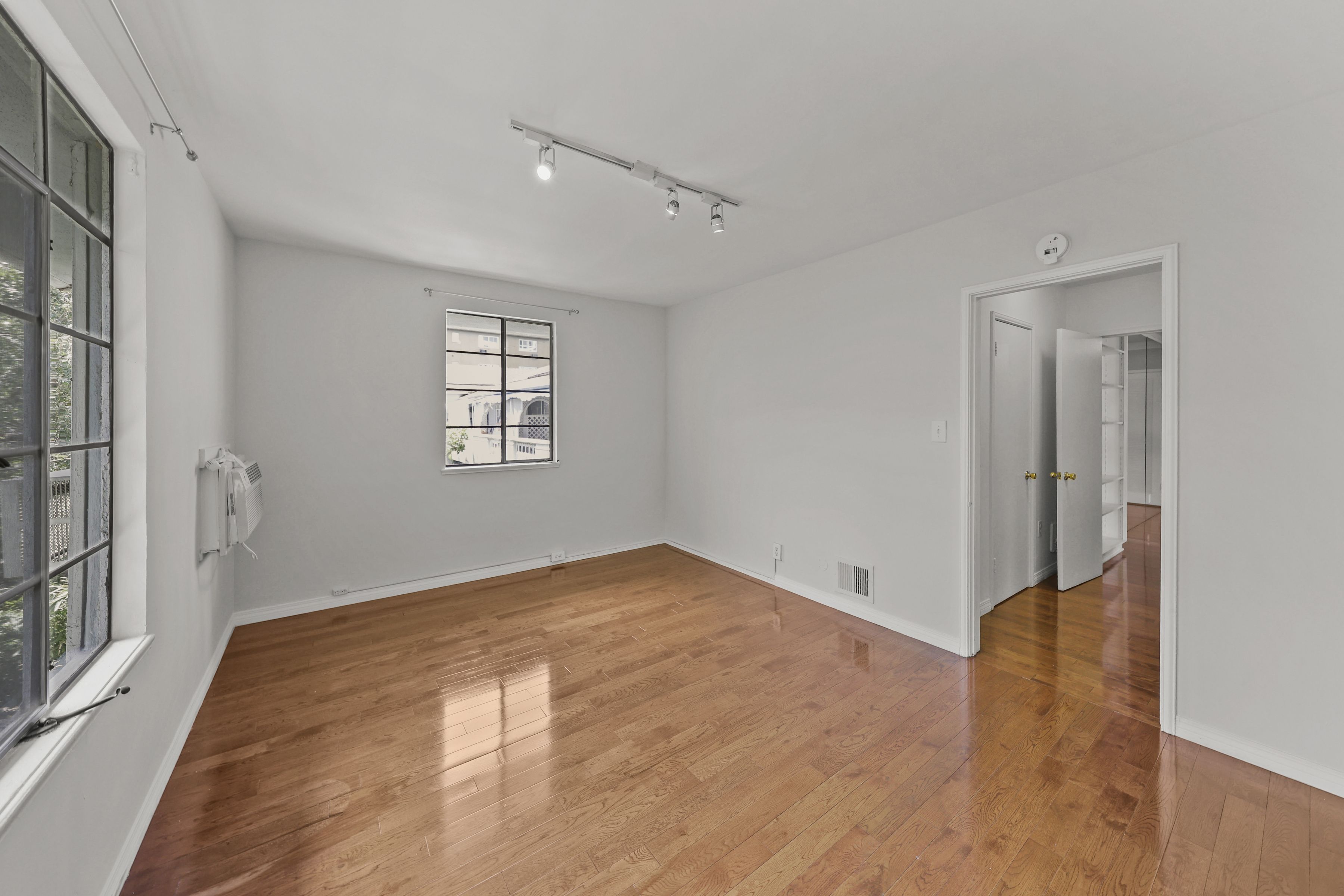 Beautiful Penthouse 1940's California garden bungalow located in the prime area of West Hollywood just steps to the Mondrian Hotel on Sunset. Oversized living room with formal dining area overlook gardens and open to an expansive large terrace and also a private balcony with city and tree top views. Kitchen has restored vintage tiles w/refrigerator, stove and dishwasher. Bedroom is very private and quiet overlooking beautiful gardens and tree tops and wall A/C. Bathroom with tub, a separate shower with vintage tiles. Community pool and beautiful garden courtyard with mature shade trees also has fountain and Koi pond. Personal Parking space in underground gated parking garage. Skip the commute and live where all the action is or retreat to your perfect urban oasis. This top floor only has one adjacent unit on same floor and if rented together you can create a private gated complex with huge balconies with city views.