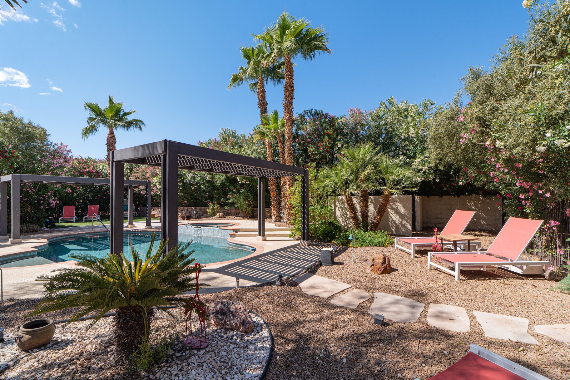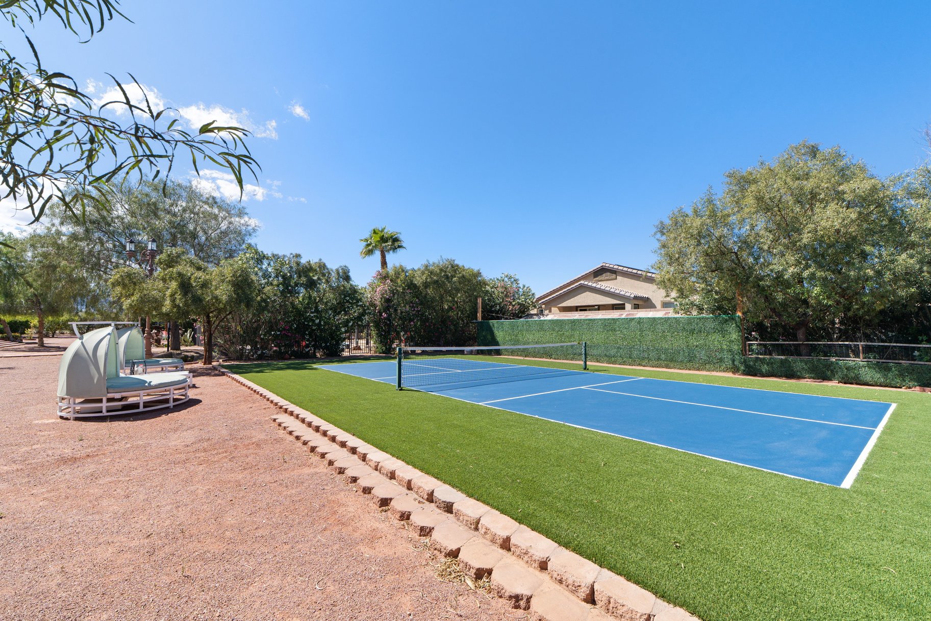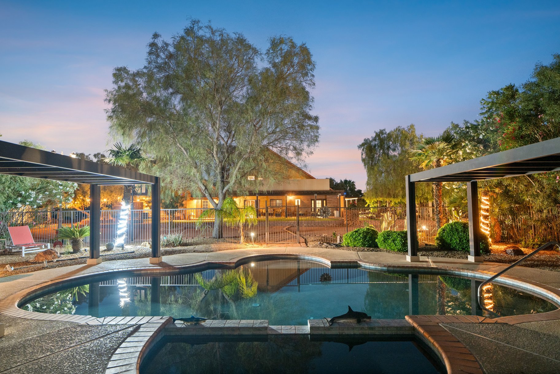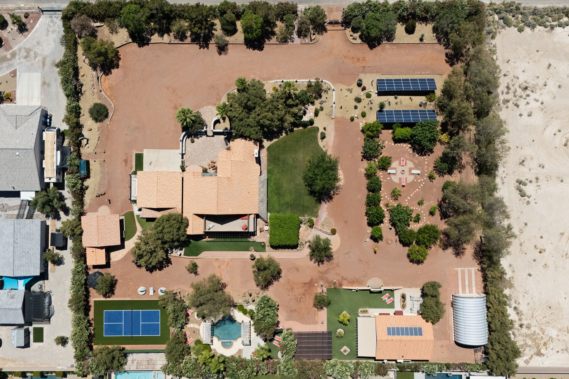 Tucked behind a private gated entrance on 2.09 acres, this one-of-a-kind compound is the rare kind of place people drive away from and can't stop talking about. A private oasis in every sense - and the kind of self-sustaining retreat that's nearly impossible to find inside the city. The estate feat. a 2555 sq ft main residence with a fully appointed 1,200 sq ft cottage - 5 bedrooms, 3 baths, and 2 full kitchens between them. No shared walls. No HOA. Just space, privacy, and freedom to live on your own terms. The grounds are where this property sets itself apart. Owned solar. A 250-foot private well with a 5,000-gallon reserve tank. A resort-style pool and spa, pickleball court, outdoor kitchen, and fire pits. Two grape arbors and raised garden beds with a drip system. And a working orchard of fruit-bearing trees. Whether you're envisioning a multigenerational family oasis or an income-producing retreat, 6500 Bullring Lane delivers something the market rarely offers: true autonomy.