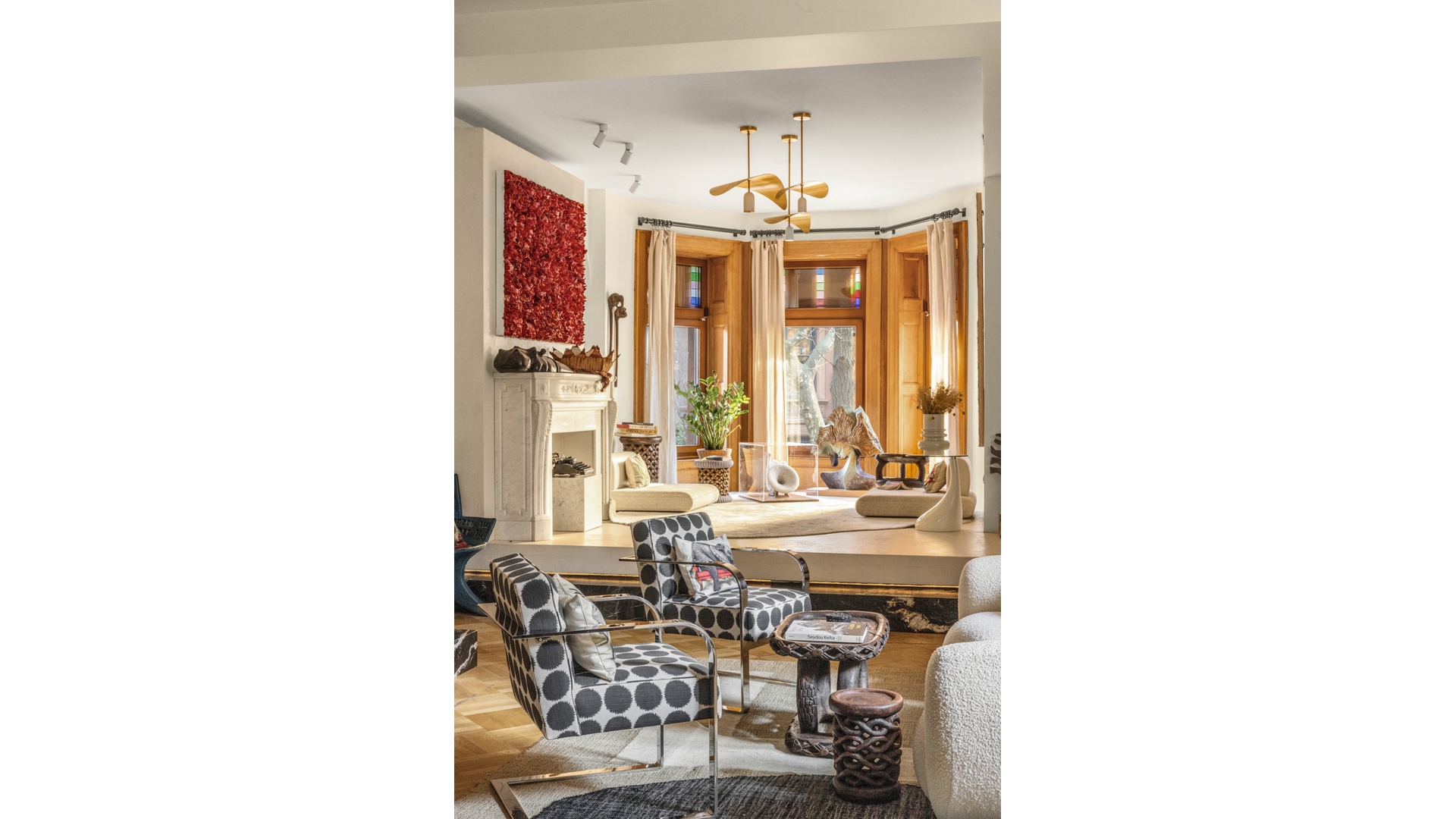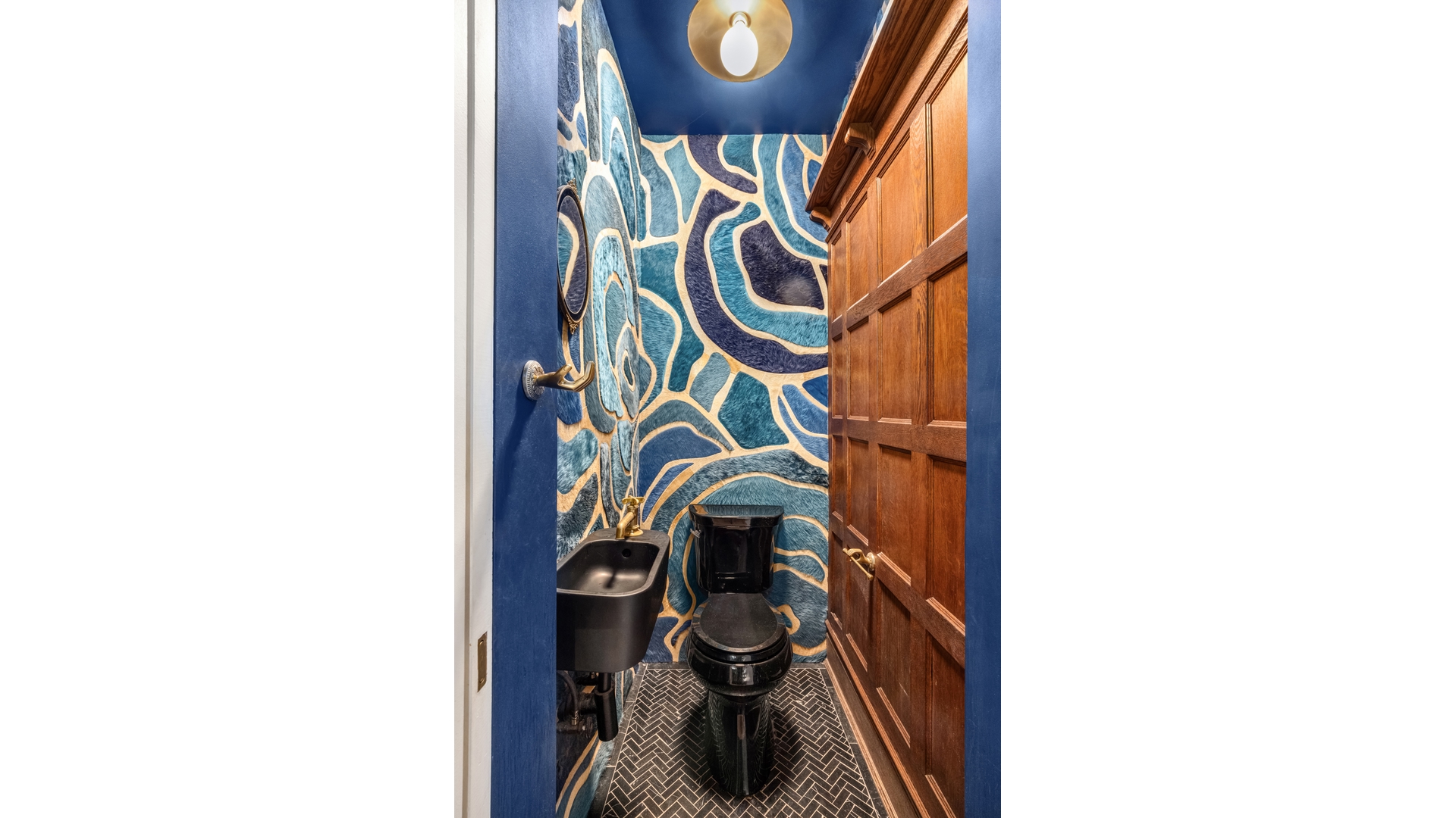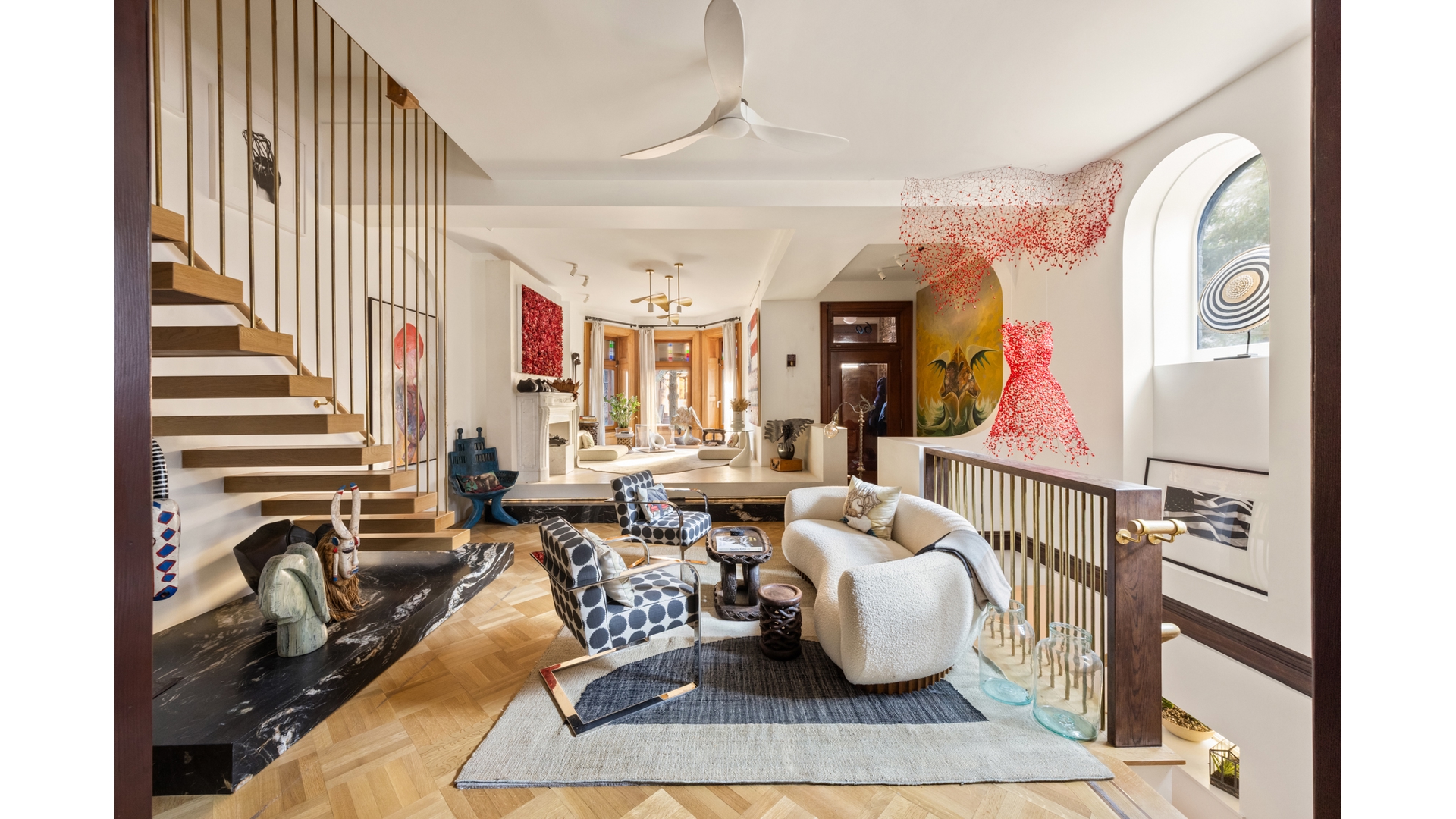 Ascending to the parlor floor, a floating staircase leads to an elegant platform-a truly unique architectural feature. The expansive parlor level preserves much of the opulent original dining room paneling while introducing contemporary design elements.