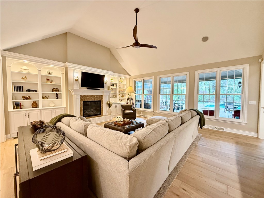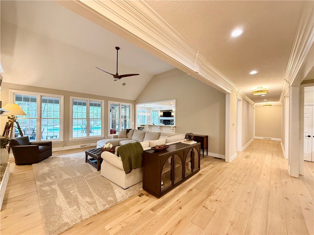A rare opportunity to own a truly one-of-a-kind sprawling ranch in Adams Township, custom built by Kaclik Builders and thoughtfully renovated in 2024. Offering desirable single-level living, this home features three bedrooms, three full baths, and four partial baths, with all bedrooms located on the main floor - including a luxurious primary suite and two additional ensuite bedrooms. From the moment you enter, the home's architectural character stands out. A stunning barreled ceiling on the front porch continues into the foyer and is echoed in the beautifully renovated kitchen, creating a cohesive and elevated design. Throughout the home, exceptional custom woodworking showcases a level of craftsmanship rarely found in today's newer construction. The newly updated kitchen is equipped with professional-grade appliances and opens to a bright breakfast area overlooking the private backyard oasis. All bedrooms feature elevated ceilings, enhancing the sense of space and light, with one bedroom offering a striking bay window with dramatic extended-height windows. The main level also includes a sophisticated office with coffered ceilings, a spacious hearth room, and an additional flex room off the primary suite - ideal for a private office, sitting room, or dressing space. Updates throughout include new hardwood flooring, new carpeting, refreshed bathrooms, and fresh paint. The expansive lower level is designed for entertaining, featuring a newly added custom bar with beverage refrigerator and ice maker, a theater room, a playroom with built-in playhouse, and a large gathering area with a corner fireplace. Step outside to your own resort-style retreat. The professionally landscaped yard showcases an in-ground pool, covered patio with fireplace, a porch with built-in grill, and a dedicated pool bath - perfect for relaxing or hosting. With a newer roof and high-end updates throughout, this home offers the perfect blend of timeless craftsmanship, modern amenities, and rare single-level living in a truly standout property.
