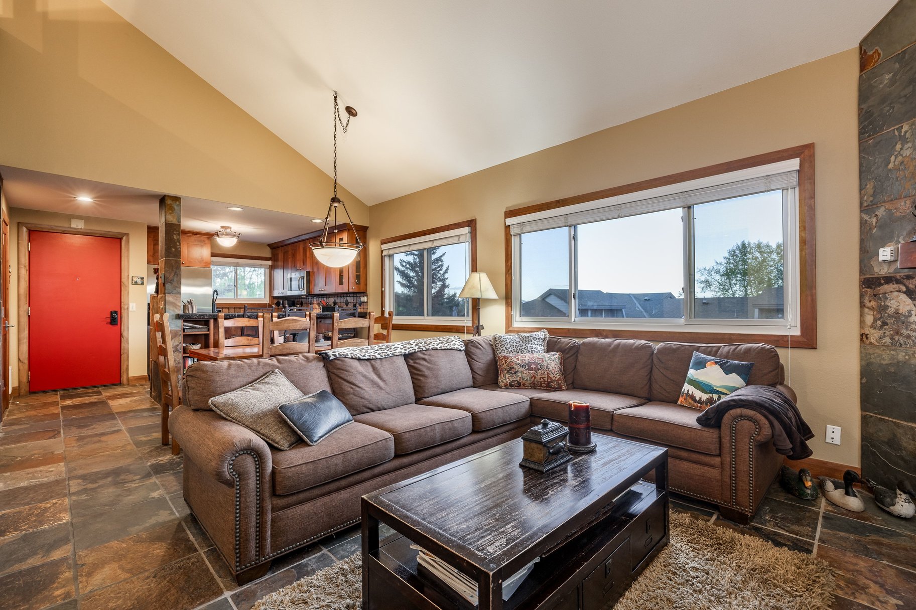 Offering two-bedrooms, two-baths and a large sleeping loft, this sought after layout is a rare find at Snowflower boasting a vaulted great room, fireplace, new carpet and interior paint and views of the ski runs from the living room, spacious deck and the primary bedroom. The kitchen has been opened since its original design and with windows on 3 sides, the residence is flooded with light and a welcoming breeze. The bonus loft sleeps 4+ with two large bunk beds allowing this slopeside retreat to sleep up to 10 with ease. Nightly rentals allowed and offered turnkey.