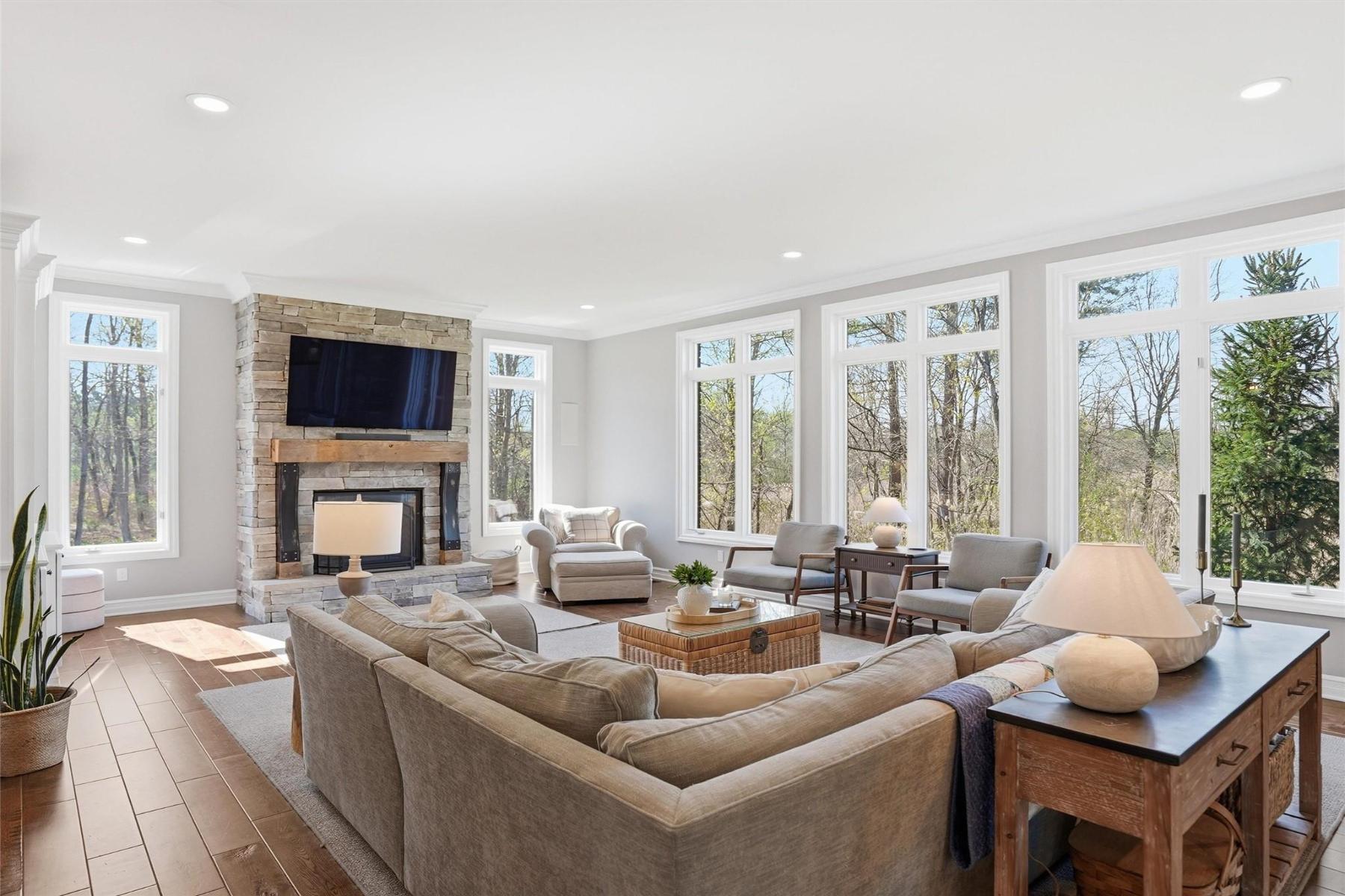 Tucked at the end of a private cul-de-sac in Rochester, this exceptional custom-built estate offers a level of privacy rarely found. Set on two secluded acres and backing to protected wetlands that stretch into Stony Creek Metropark and Bloomer Park, the setting feels like a private nature preserve—complete with a tranquil pond, roaming wildlife, and panoramic views framed by expansive windows. Designed for elevated living and effortless entertaining, the home features 4 bedrooms plus a versatile bonus room (ideal as a fifth bedroom), 3.5 baths, and a chef’s kitchen equipped with Wolf appliances. A magazine-worthy three-season porch showcases Phantom screens, heated floors, ceiling heat, and a fireplace. The curated lower level offers a golf simulator and private in-law suite, while a custom bunk room, rock wall, dual laundry rooms, and a 1,000 sq ft heated garage with 16’ ceilings complete this rare blend of luxury, design, and retreat.