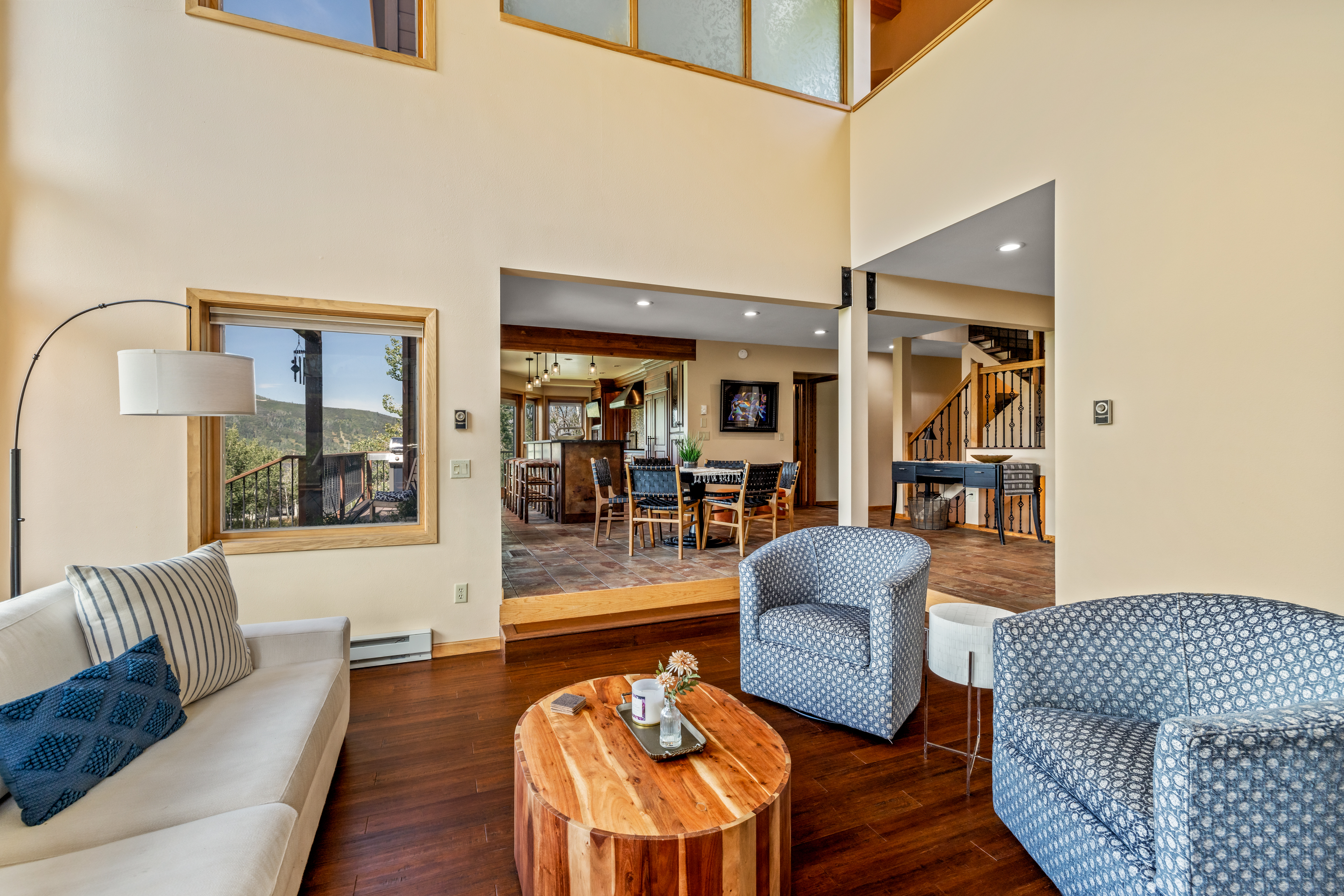 Fairway Lodge- 5BR Mountain Retreat on Rollingstone Golf Course. Fairway Lodge is a private mountain sanctuary set at the end of a quiet drive and perfectly positioned along the 7th fairway of Rollingstone Ranch Golf Course. This 5-bedroom, 4-bathroom home offers the ideal blend of lodge-style charm, spacious living and an unbeatable location just 1.4 miles to the Steamboat Ski Area and under 3 miles to downtown Steamboat Springs. Designed for gathering and entertaining, the home spans three levels with three distinct living areas, highlighted by two stunning stone fireplaces, warm wood finishes, and expansive windows framing mountain and golf course views. The main level features a well-equipped kitchen, dining area, cozy living space and lovely deck. The primary suite offers a relaxing retreat with a soaking tub, walk-in shower and deck, while multiple guest bedrooms and a spacious bunk room provide flexible accommodations for all your relatives and guests. The walk-out lower level includes a second great room, entertainment space, and kitchenette—perfect for movie nights, game days, or hosting. Step outside to the fairway-facing private patio—ideal for taking in sunsets, coffee, and the peaceful alpine setting. In winter, access the trails of the Nordic Center right out your back door. 2 car garage and two large storage areas are perfect for all your gear. Embrace the Steamboat lifestyle with year-round recreation just minutes away—world-class skiing, championship golf, hiking and biking trails, tennis and pickleball, and endless days fishing or kayaking on the Yampa River. Whether it’s powder mornings, summer rounds of golf, or evenings on the river, this location puts the very best of mountain living right at your doorstep. Golf Membership included with buyer paid transfer fee.Whether you're seeking a full-time residence or vacation getaway, Fairway Lodge delivers space, character, and a true Colorado lifestyle in a premier location.